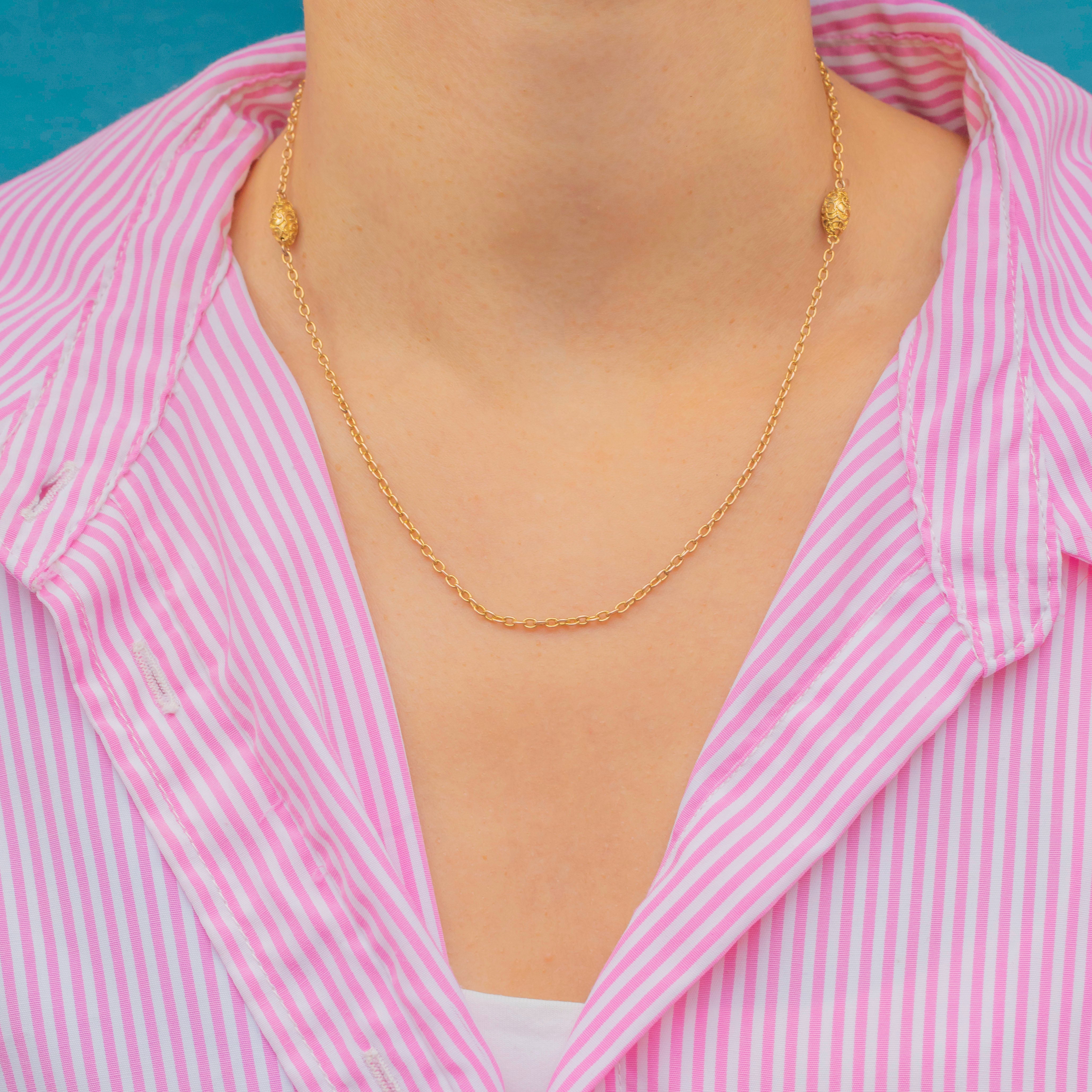 15.5" Antique 15ct Gold Chain with Cannetille Lozenge Terminals Large Bolt-Ring Clasp