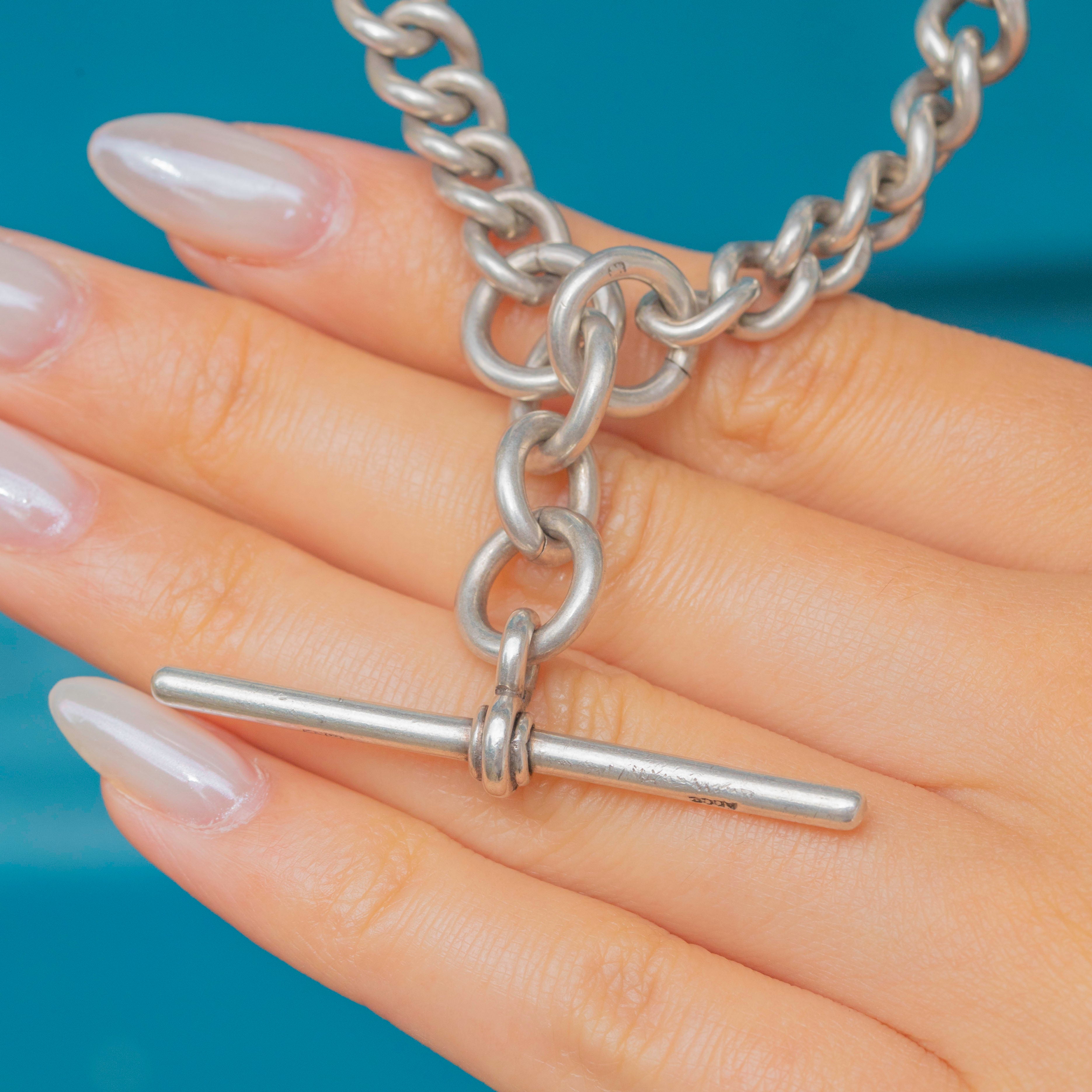 A chunky piece, this 15.5" Victorian chain weighs 60.5 grams and is complete with a highly sought-after antique dog-clip and t-bar, meaning you can customise her to your heart's delight!