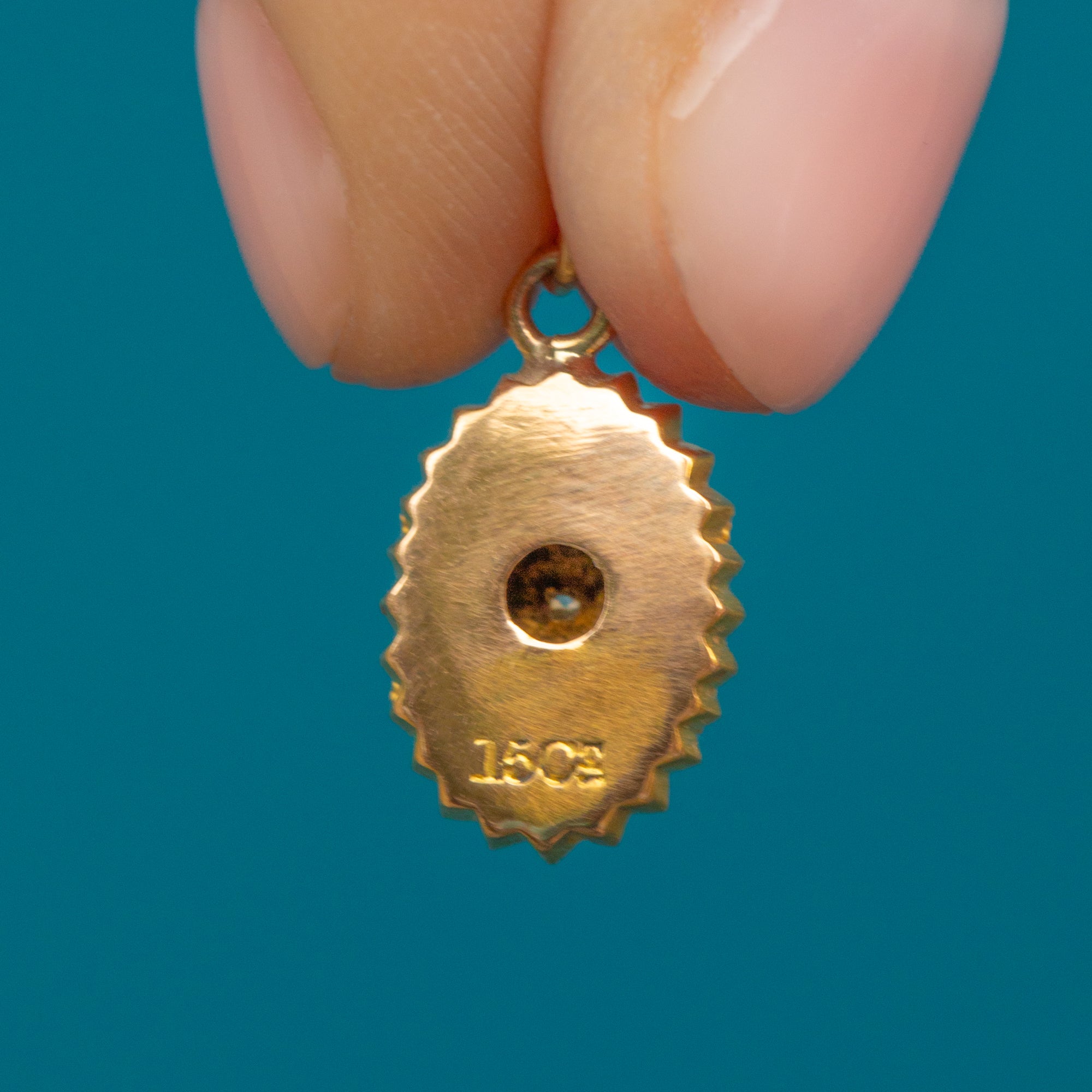 STAMP: "15CT" on the back of the pendant.