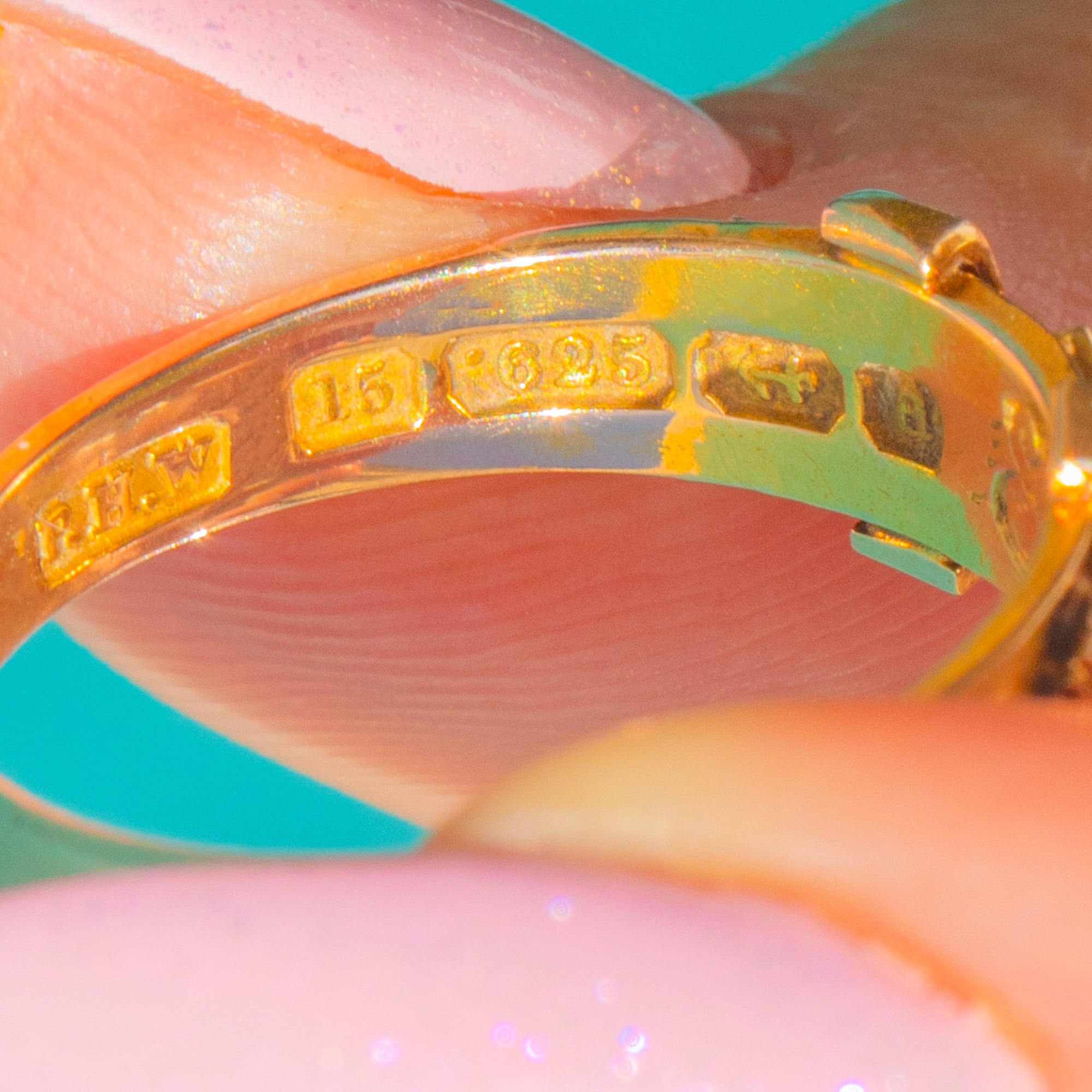 Stamped with Birmingham hallmarks for 1900, this is a beautiful piece to wear solo or stack for a refined antique touch. Inside the band you’ll find the sweet inscription “EJ”, a romantic whisper from the past.