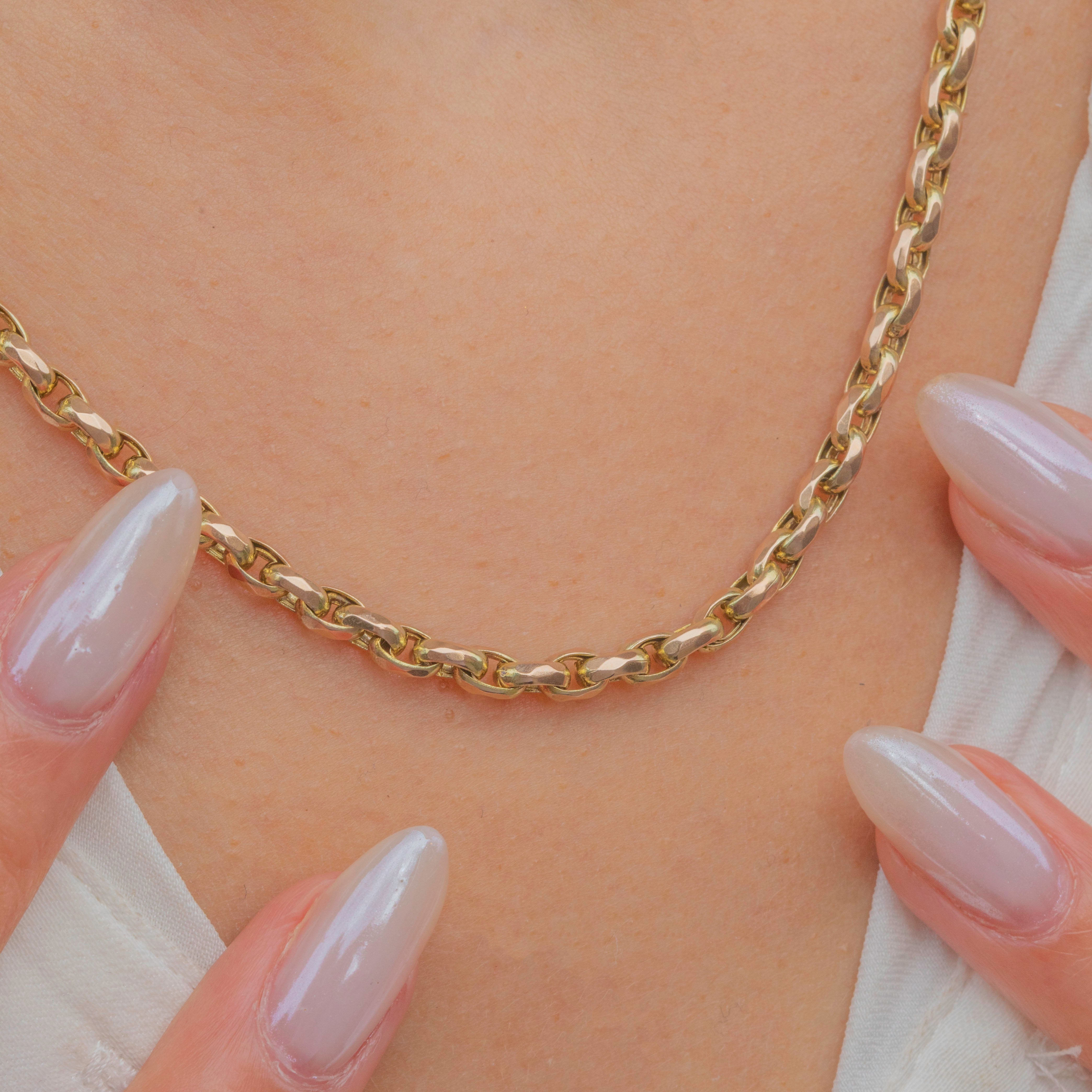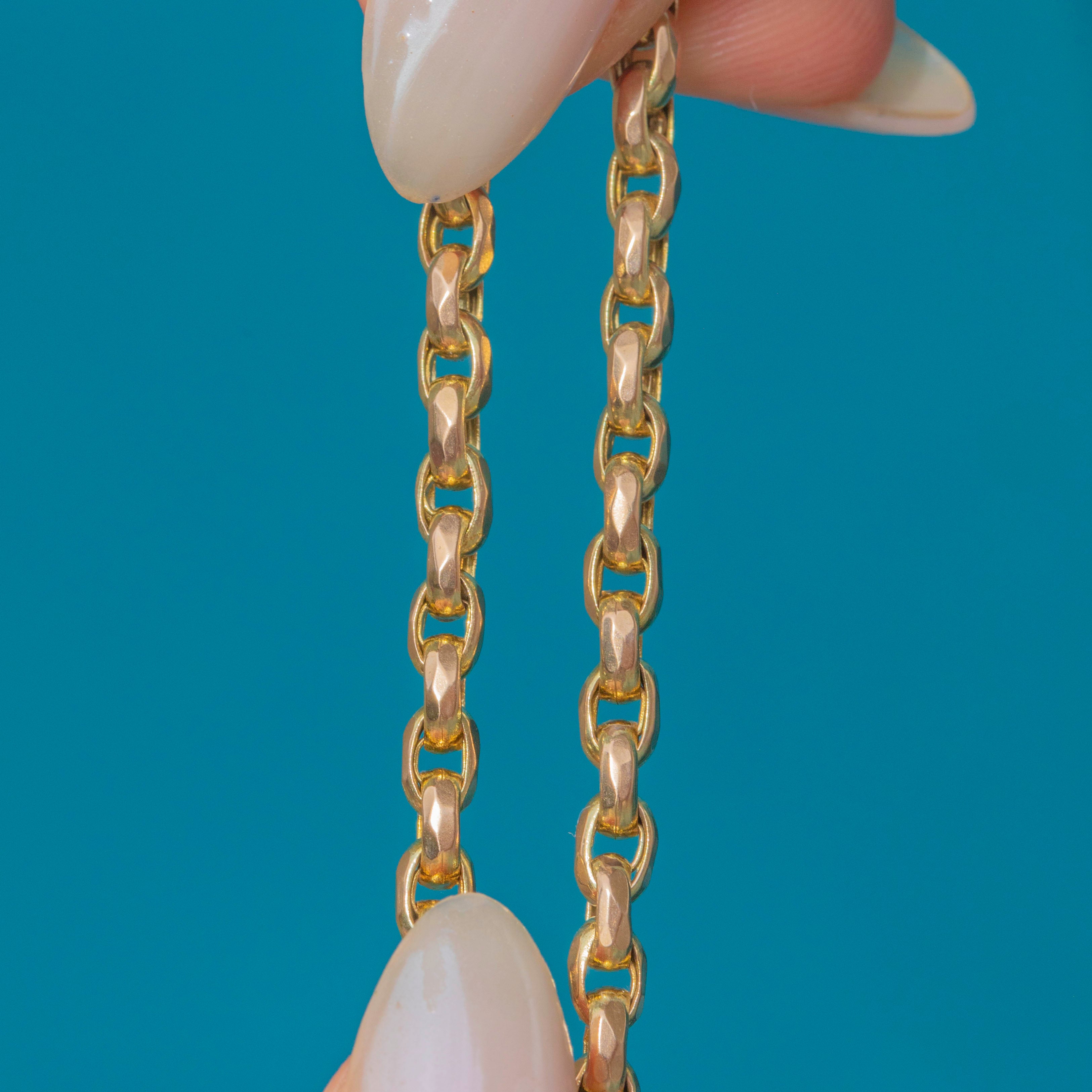 This sumptuous Victorian chain has been crafted from over 12 grams of solid 9ct Gold, with each belcher link lightly faceted, catching the light beautifully and sending golden shimmers cascading across your collarbones.