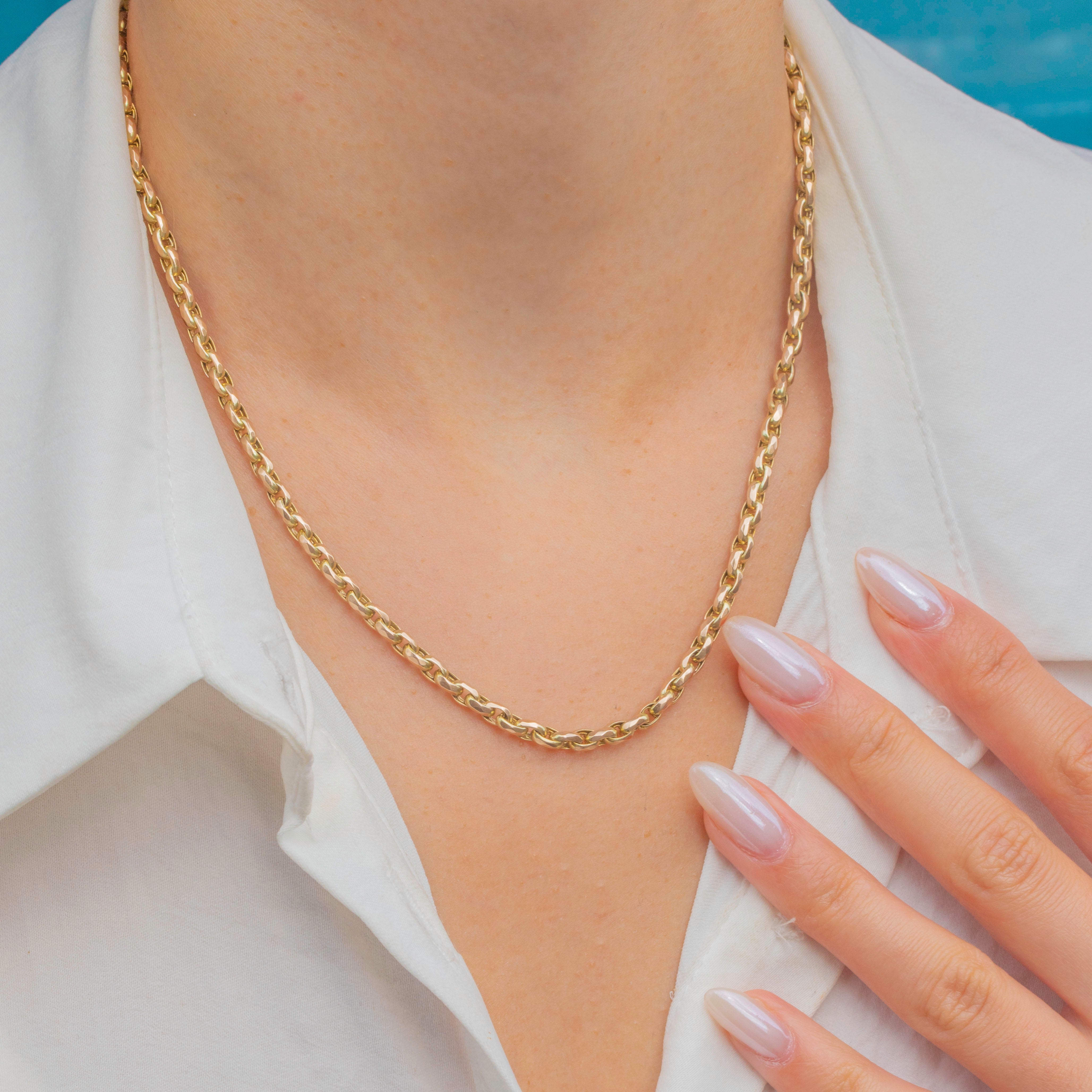 EXCELLENT: Each link is securely connected, with no signs of wear visible, and the Gold is bright and buttery. The dog-clip has excellent spring back, so you can wear this Victorian Gold chain with confidence!