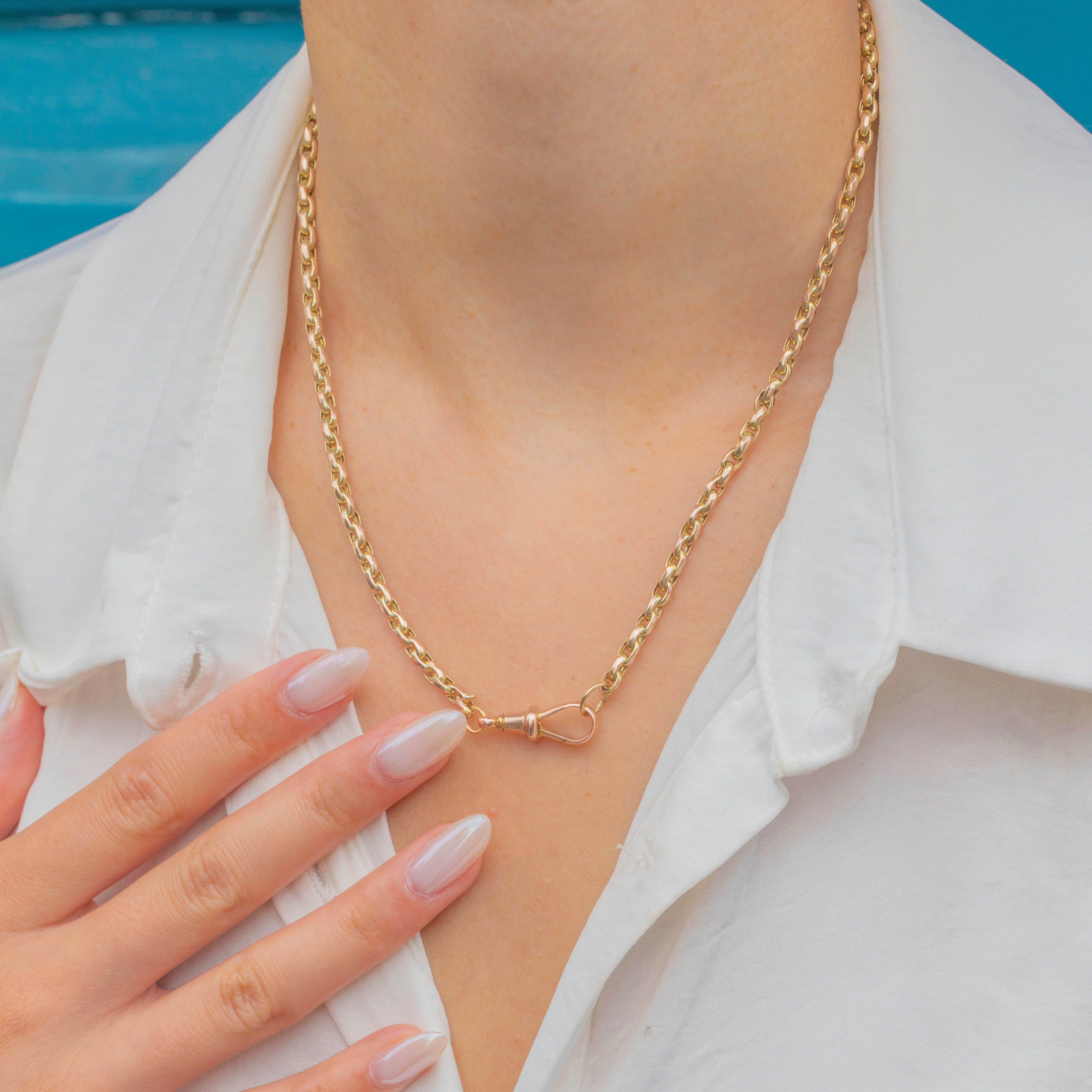 Complete with a sought-after dog-clip, to which you can attach a charm or pendant for a personal touch, this antique Gold belcher chain is a versatile and luxurious piece to add to your collection!