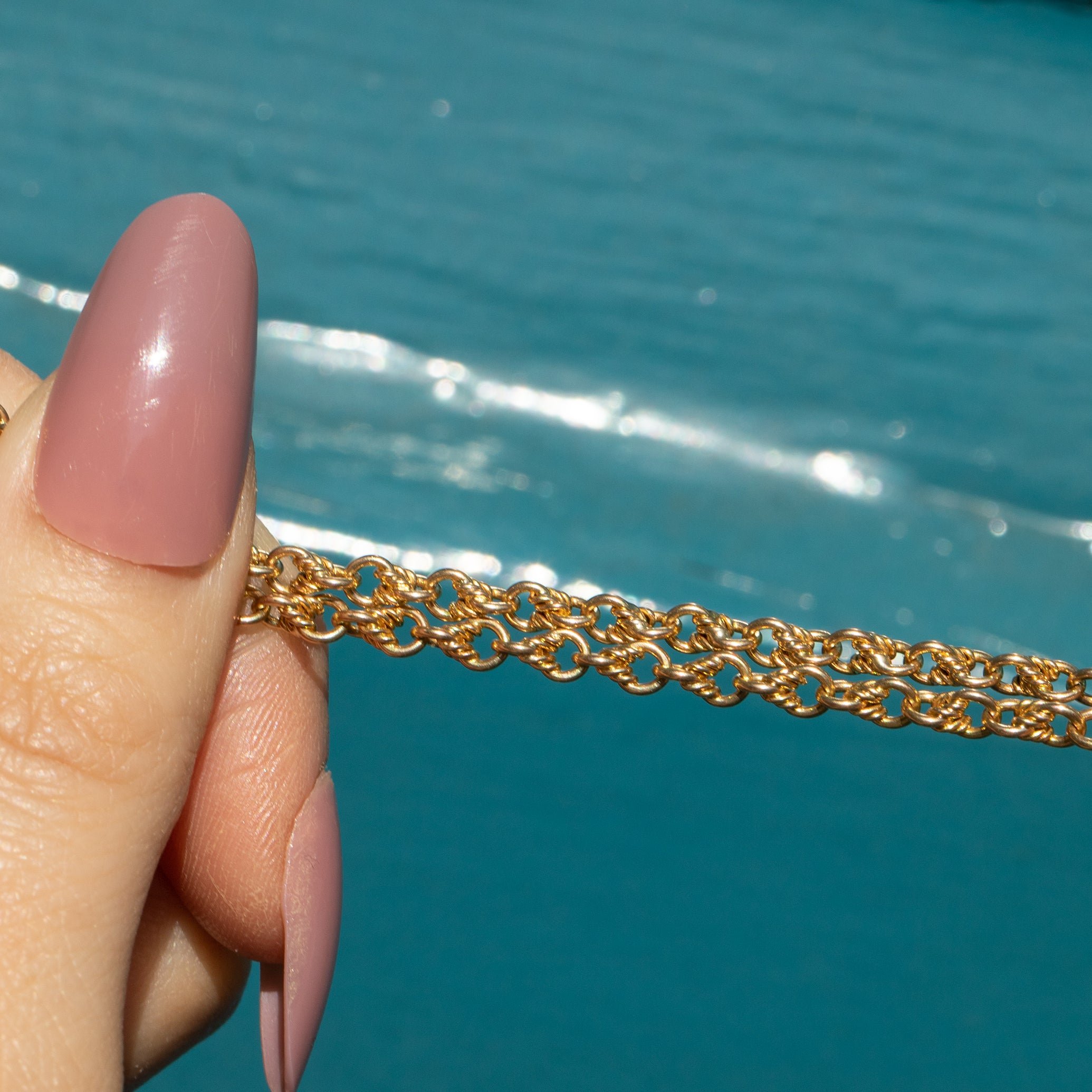 Embrace the romantic charm of this 16" antique 15ct Gold lover's knot chain as she adorns your neck! Her 16 inch length is made up of finely entwined 15ct Gold wire to form each dainty lover's knot.