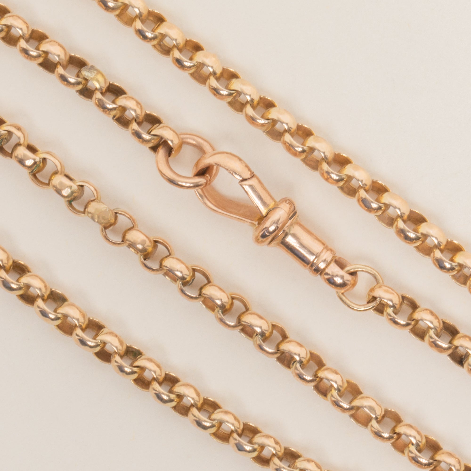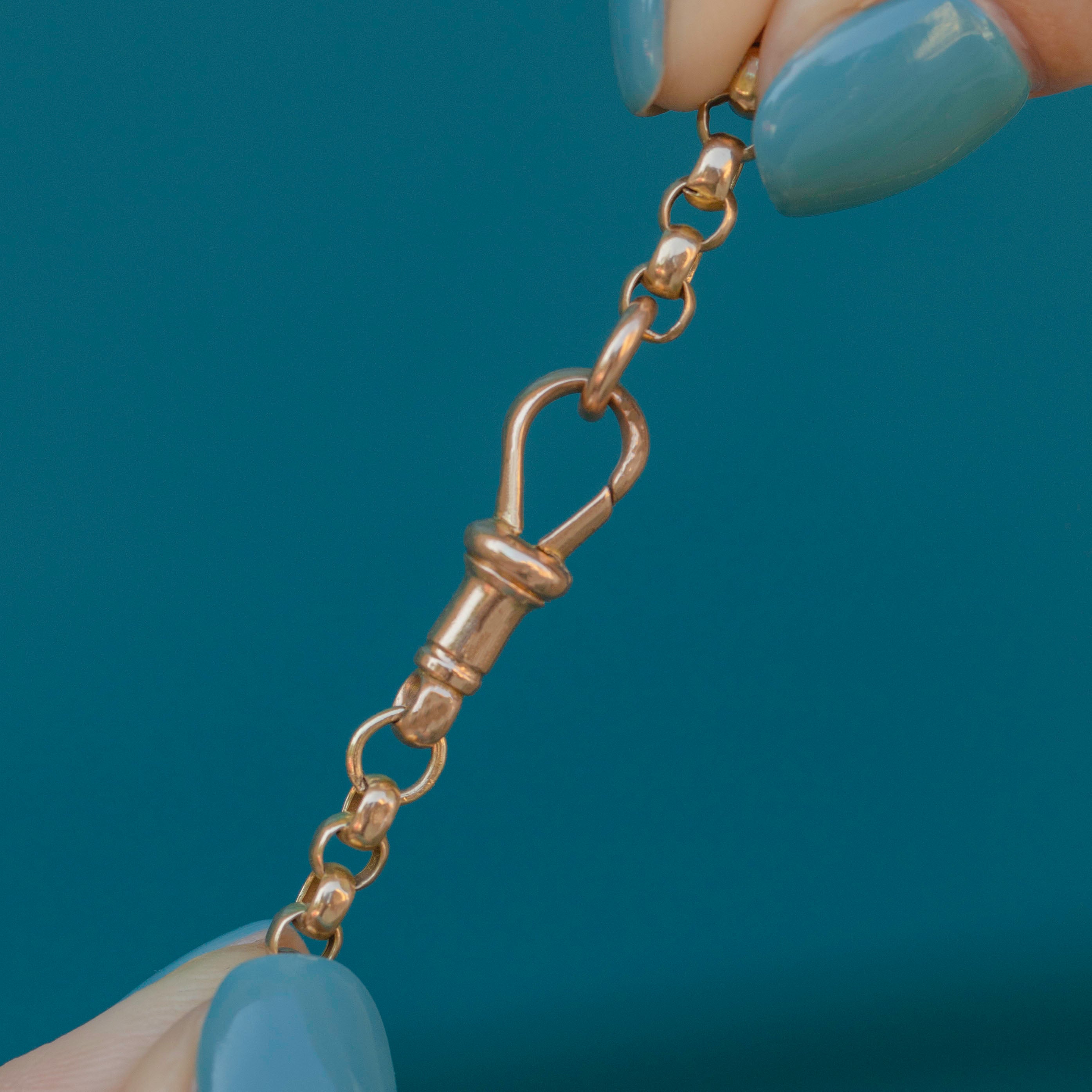 This Victorian Gold chain has wonderful smooth belcher links and is fastened with a much-desired dog-clip clasp from which you could suspend a pendant or charm. Once in your possession, you'll never want to take her off!