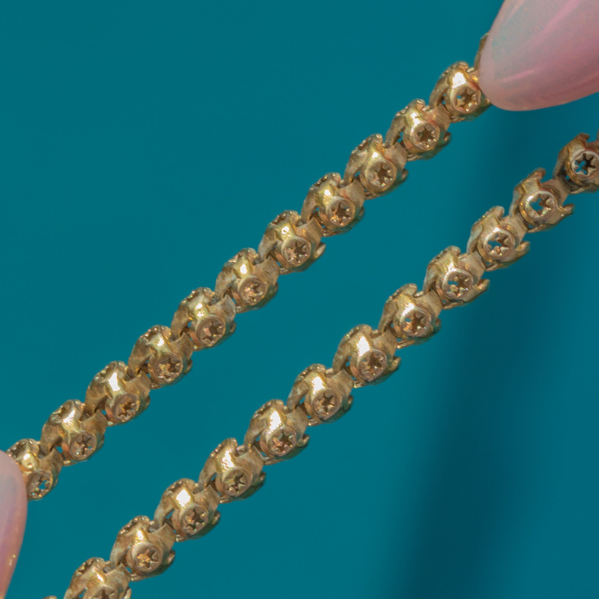 16" Antique Gold Cased Pierced Star Link Chain