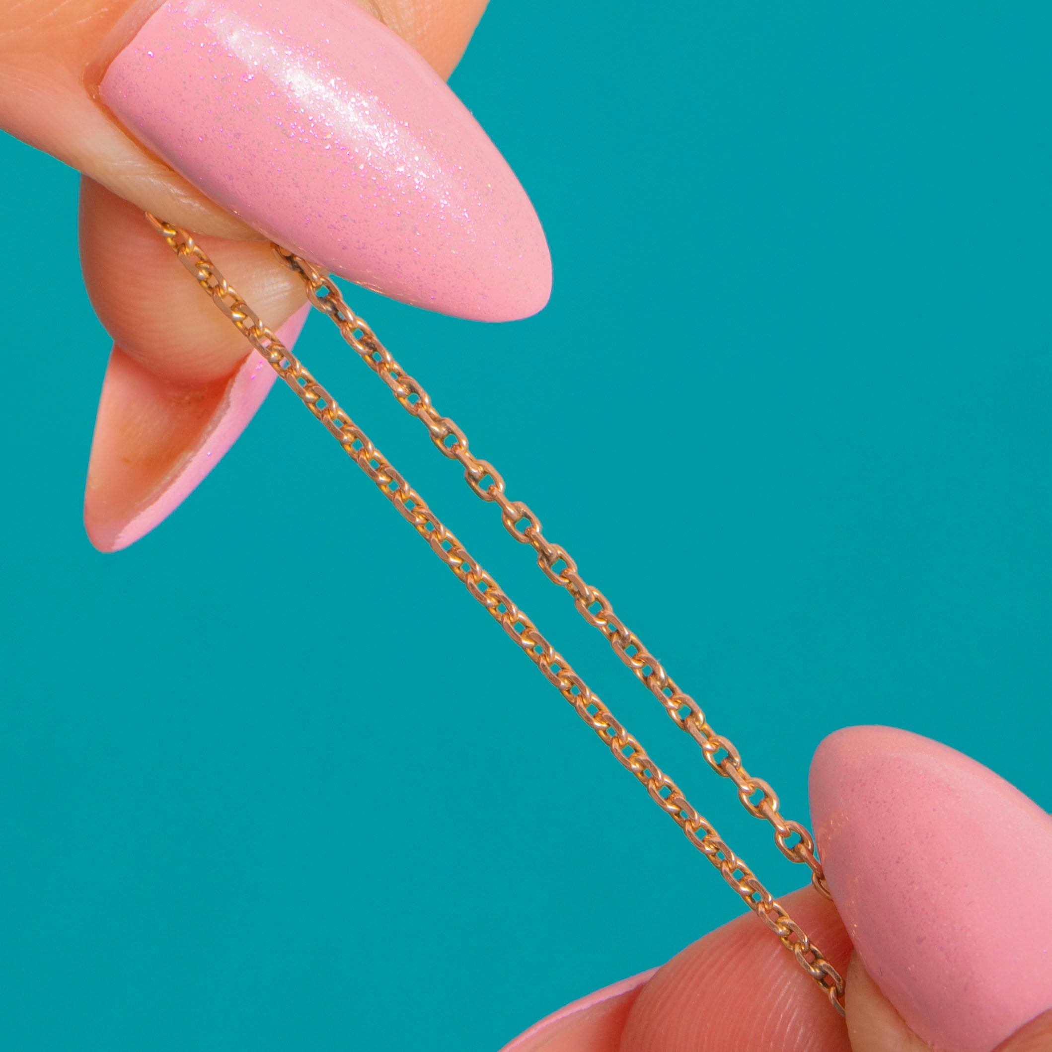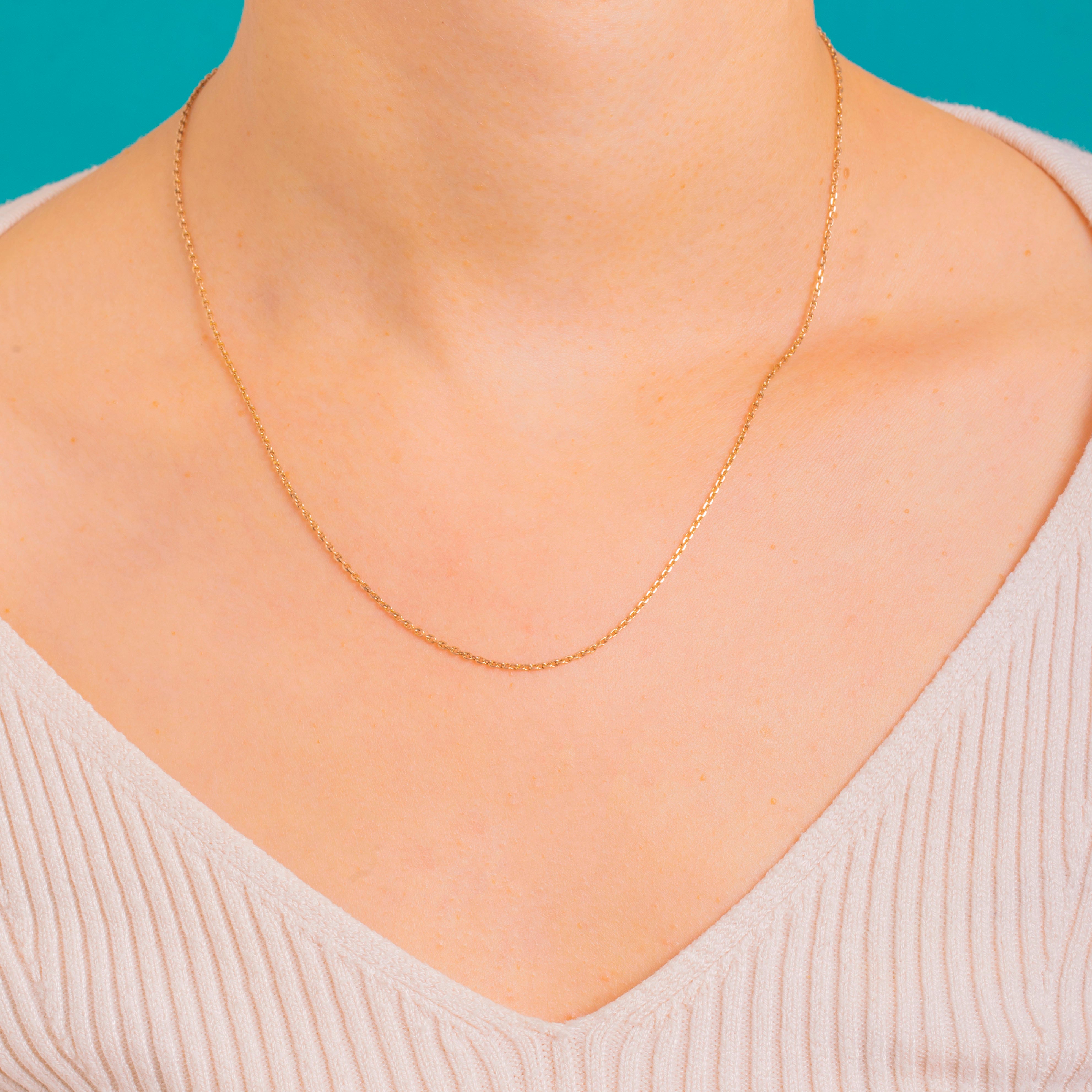 A timeless Edwardian 9ct Gold fine-link pendant chain with an understated, luminous glow. Elegant and versatile, its slender profile brings a whisper of Gold to any neckline and lets your chosen pendant take centre stage.