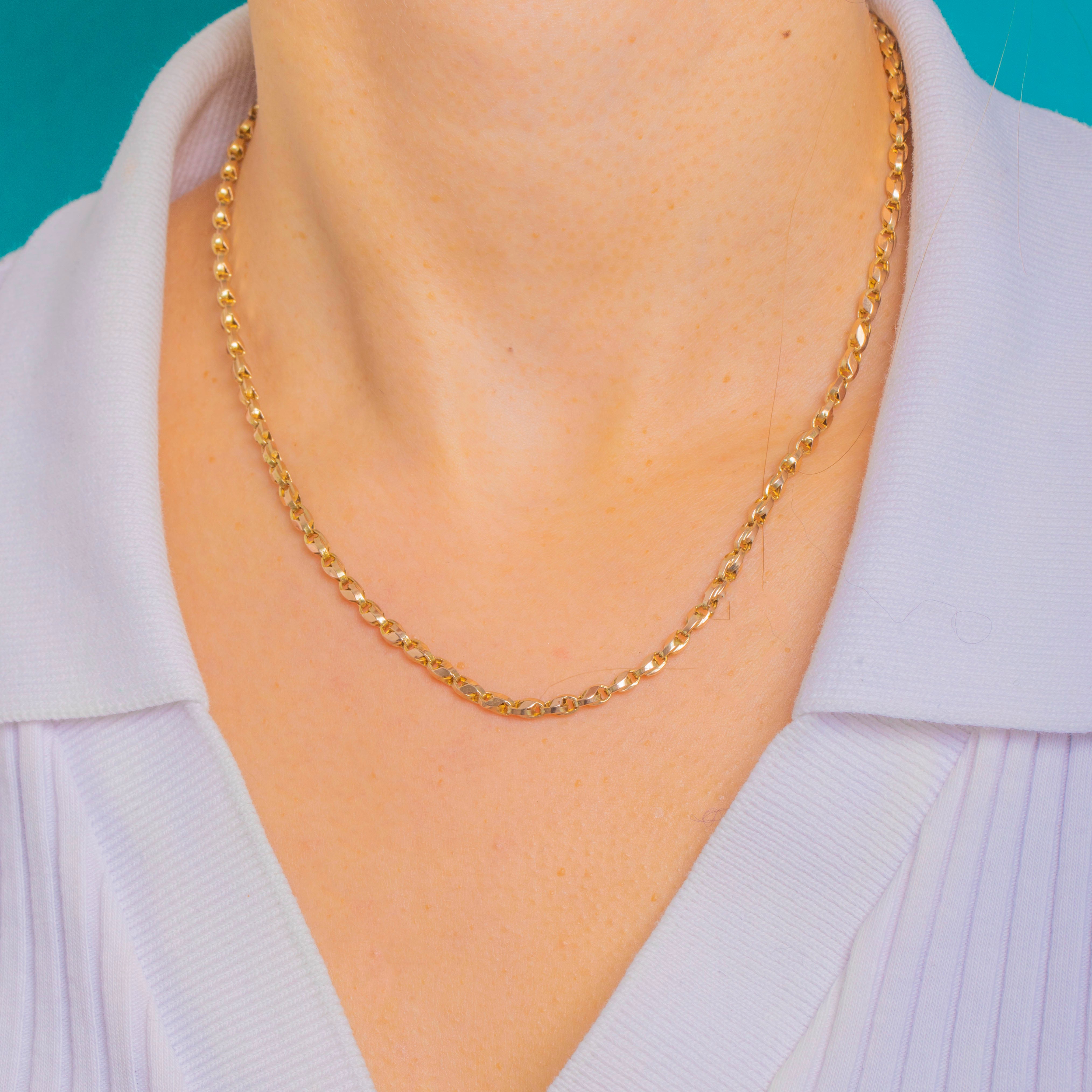 At 16" with 3mm links and a solid 8.4g weight, it offers satisfying presence while remaining beautifully wearable. Wear it alone for clean minimalism, or use the dog-clip to showcase a favourite charm, pendant or locket.