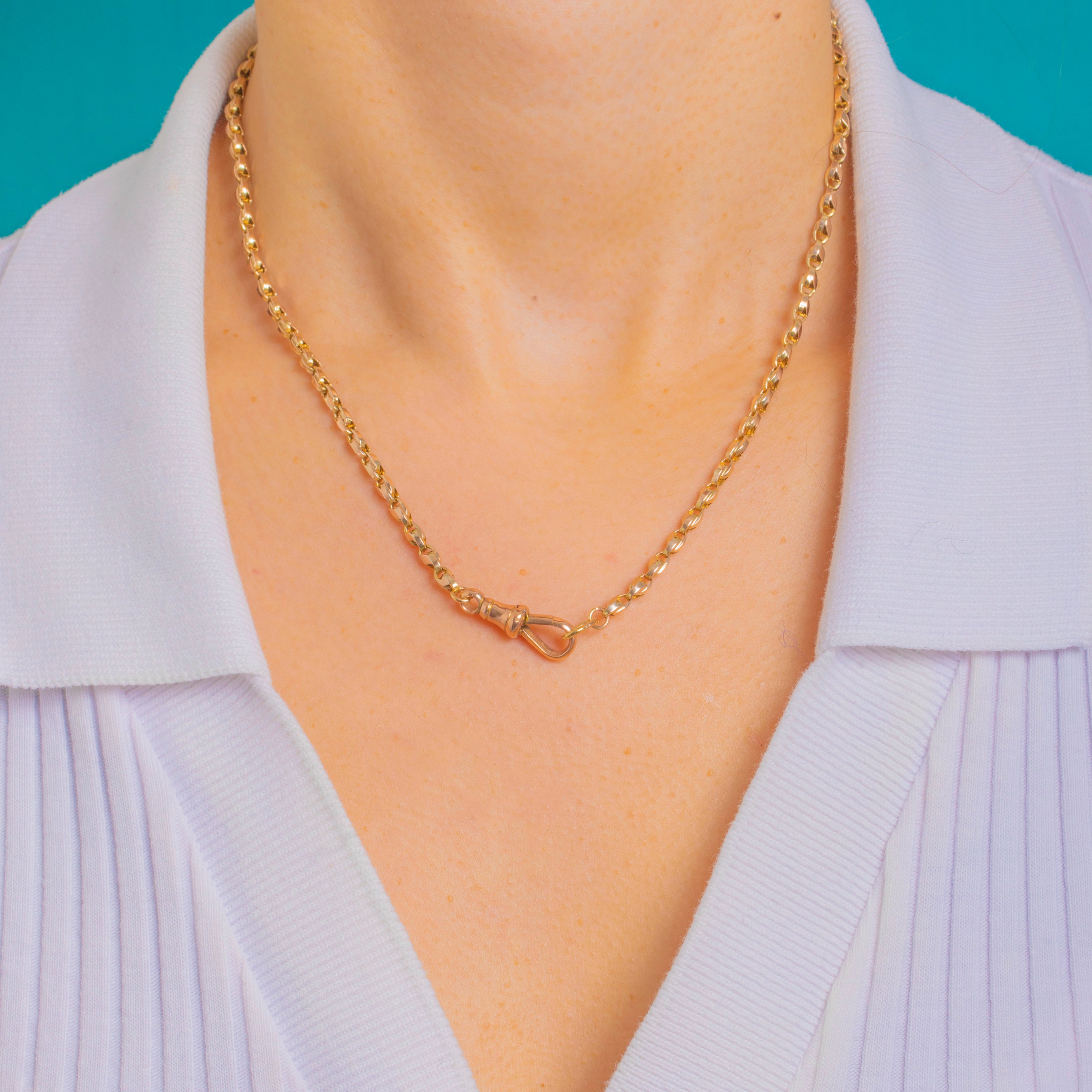 16" Victorian 9ct Gold Tulip Chain with Dog Clip, 8.4g