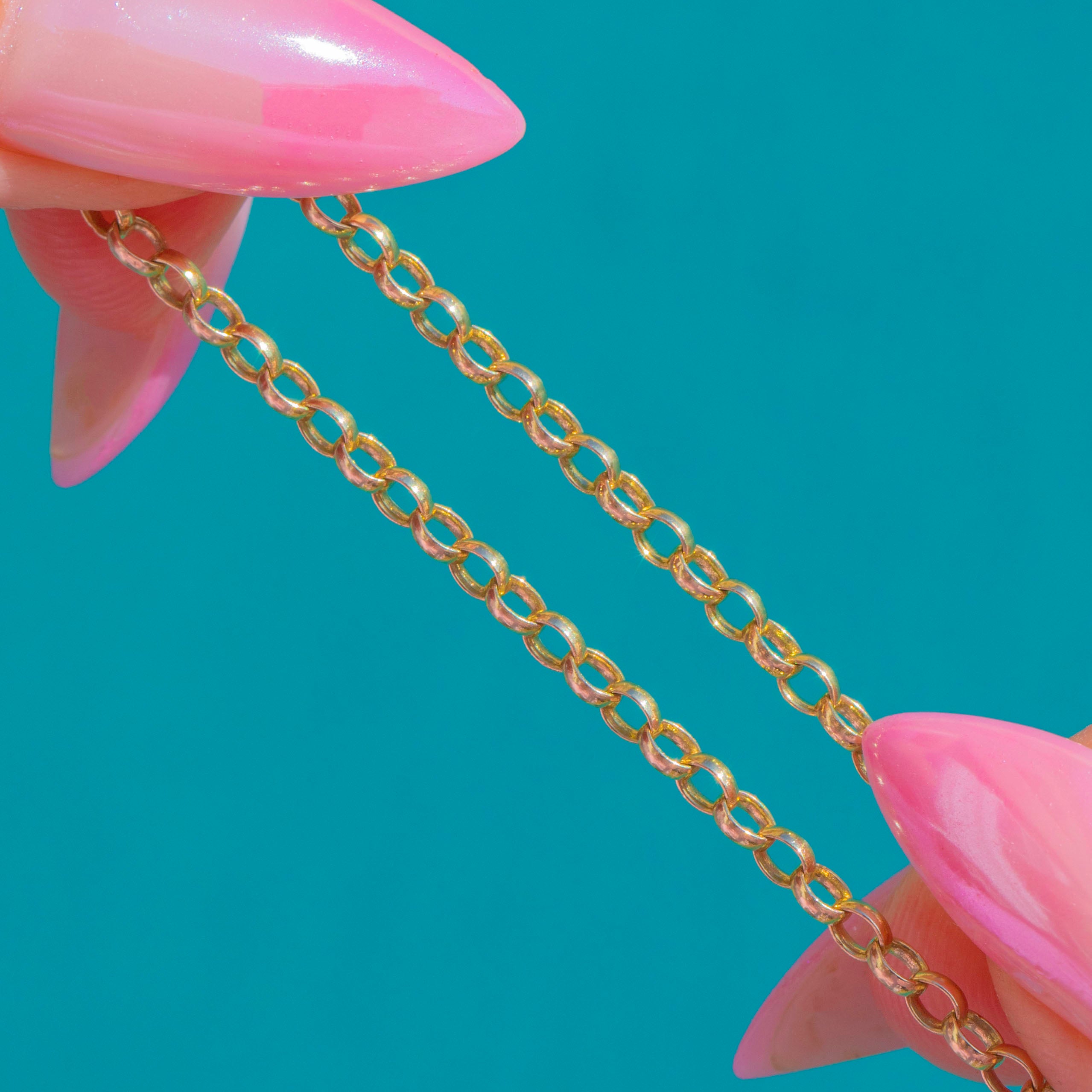 EXCELLENT: The links are bright with a high polish, showing only light surface wear under magnification. The bolt‑ring clasp operates securely, with no kinks, thinning, or visible repairs.