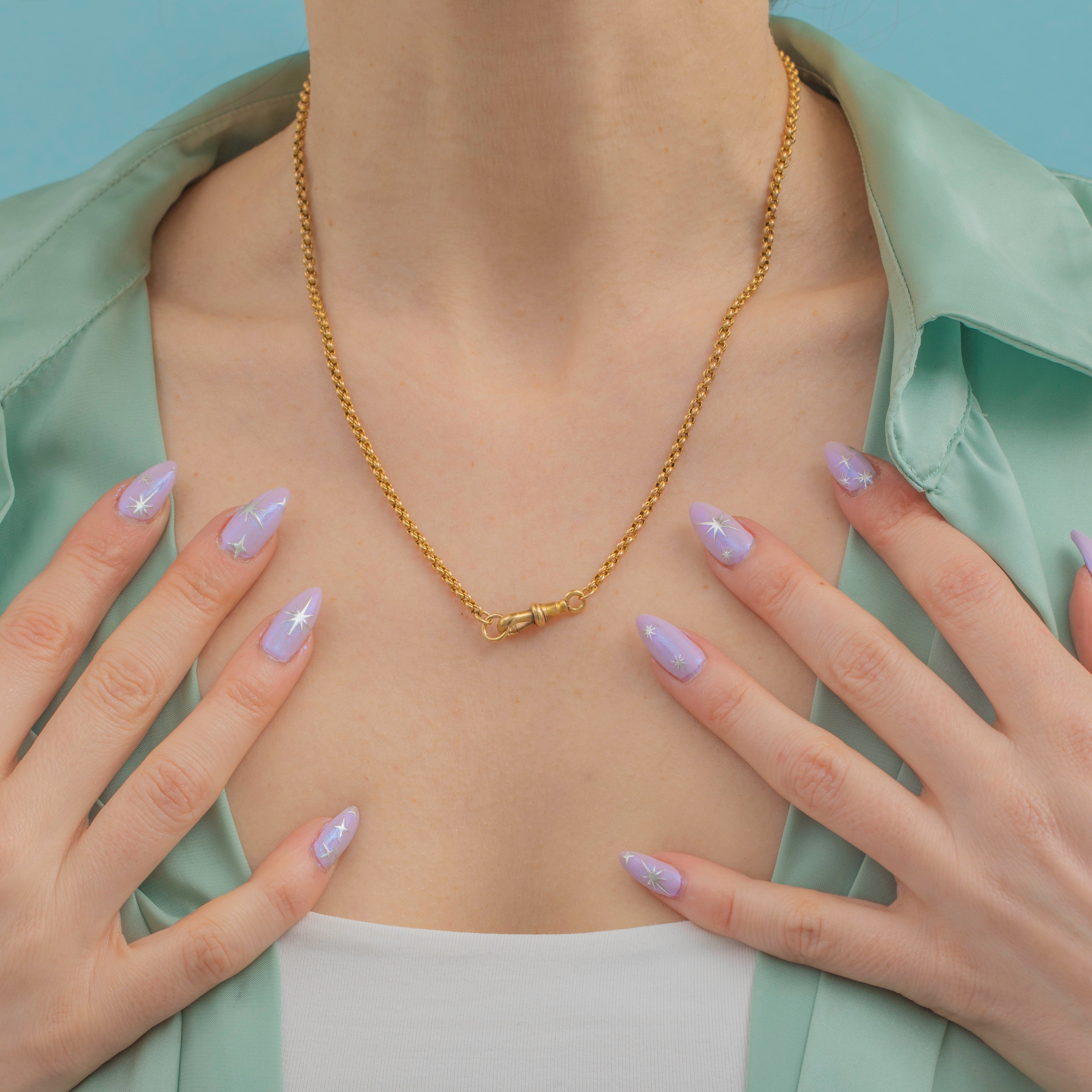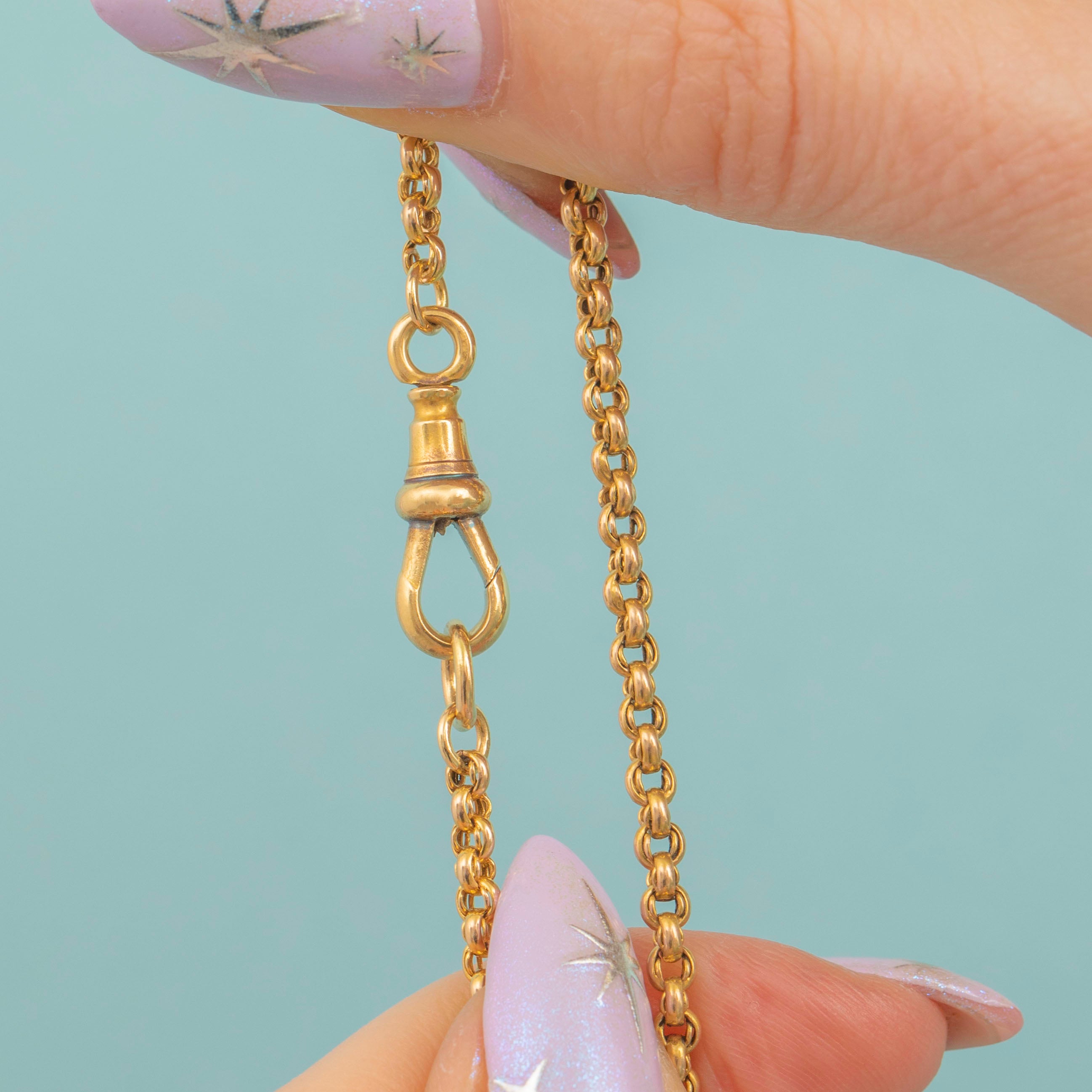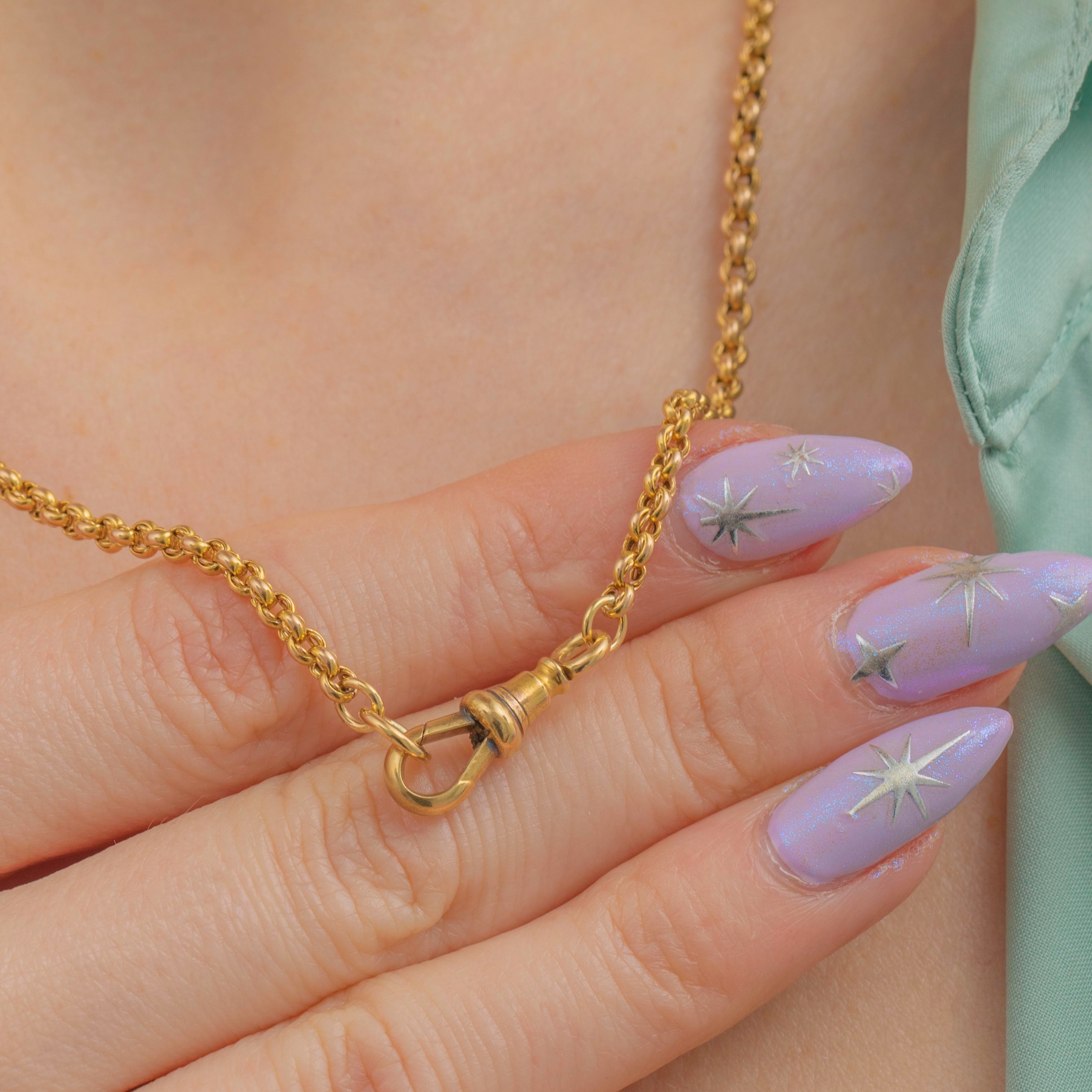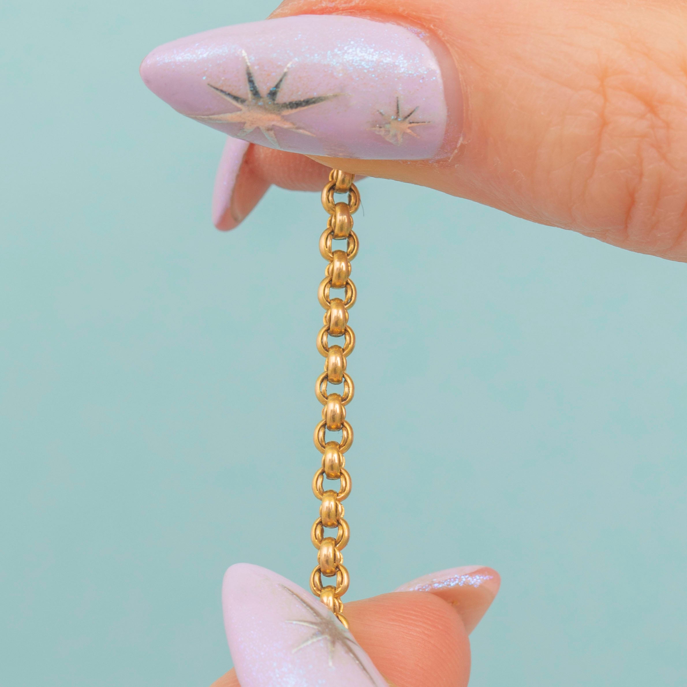 Her double link belcher style gives this Gold chain a lovely chunk depth, making her a more prominent and standout piece. At 18" in length, this Victorian 15ct Gold chain oozes luxury, and is complete with a lovely 18ct antique dog clip to attend all your charm-holding needs, you'll never want to take her off!
