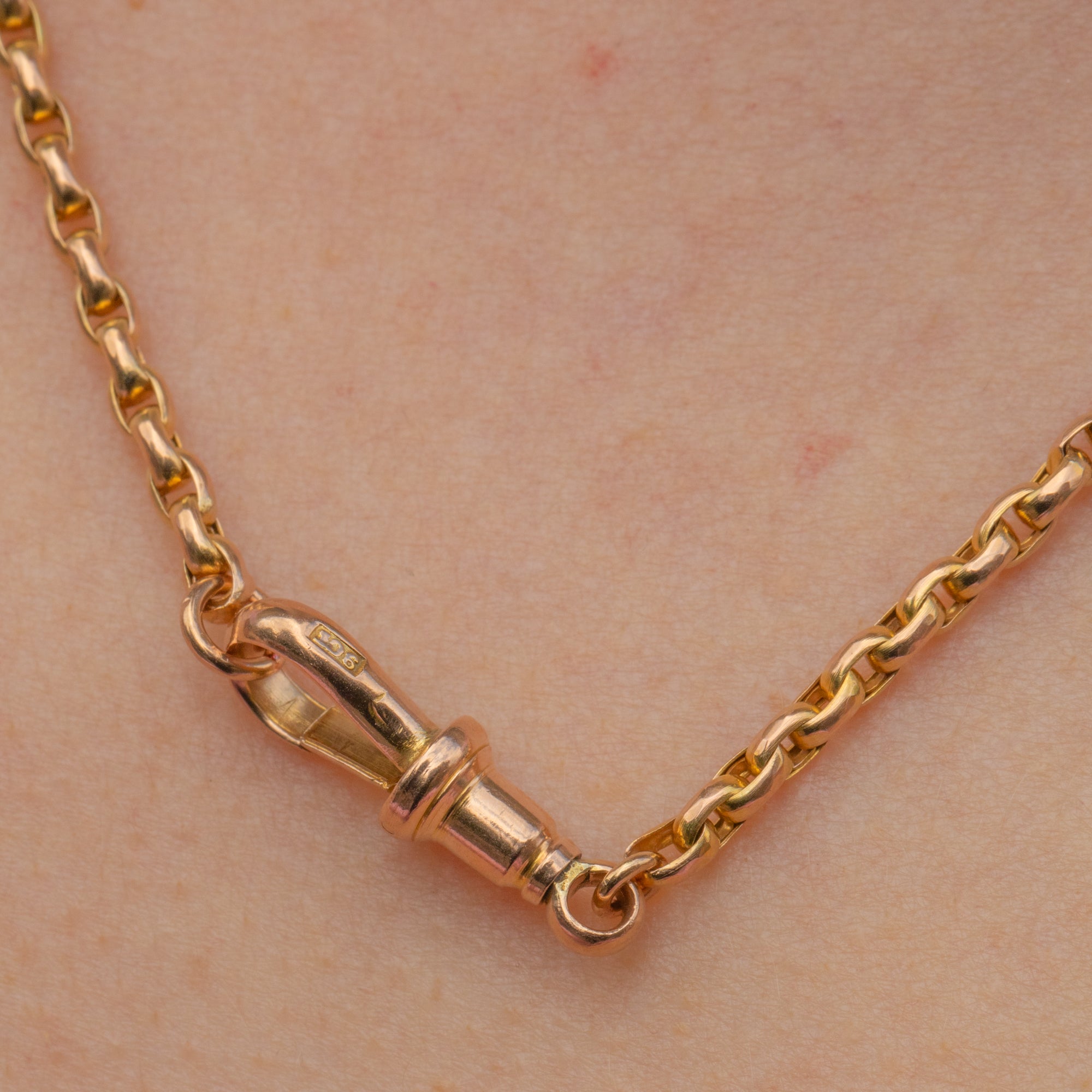At 18.5" long, this antique chain will provide you with ample styling opportunities with the authentic Victorian dog clip doubling up as the perfect charm holder. Perfect for stacking with your other Gold goodies or adding a slice of luxury to your daily attire, this versatile piece is a staple addition to your antique jewellery collection!