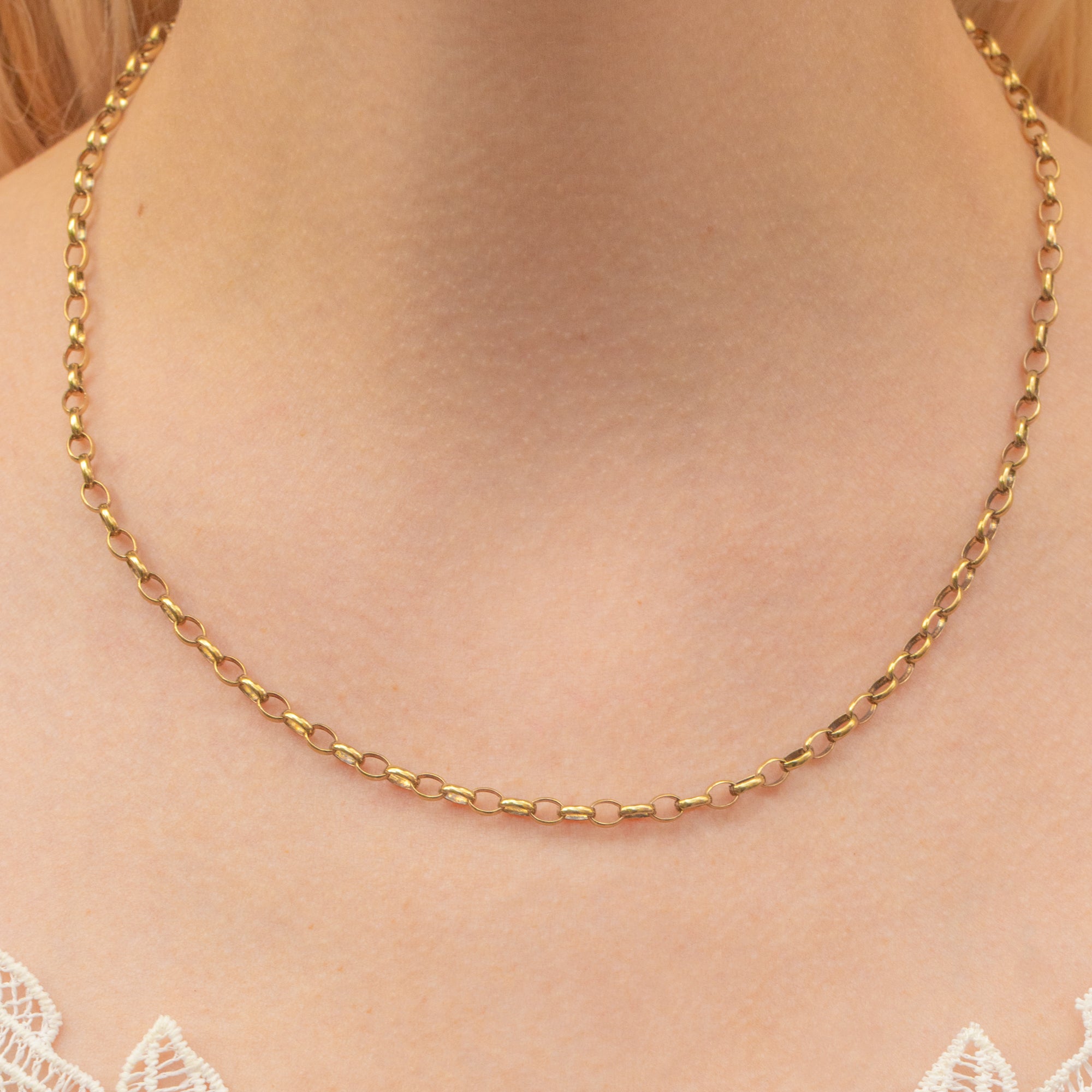 How divine is this 18" 9ct Gold belcher chain?! Formed of larger oval links crafted from buttery 9ct Gold, this solid Gold chain has a lovely fluidity, falling effortlessly around the neck in a smooth and flowing line.