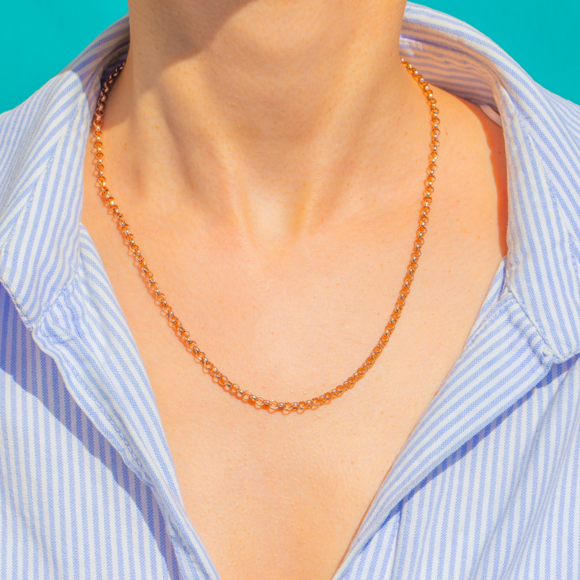 Timeless and beautifully wearable, this Victorian 9ct Rose Gold Belcher chain brings a soft blush glow to every look. Its classic rounded rolo links have a refined polish and graceful drape, offering that perfect balance of delicacy and presence.