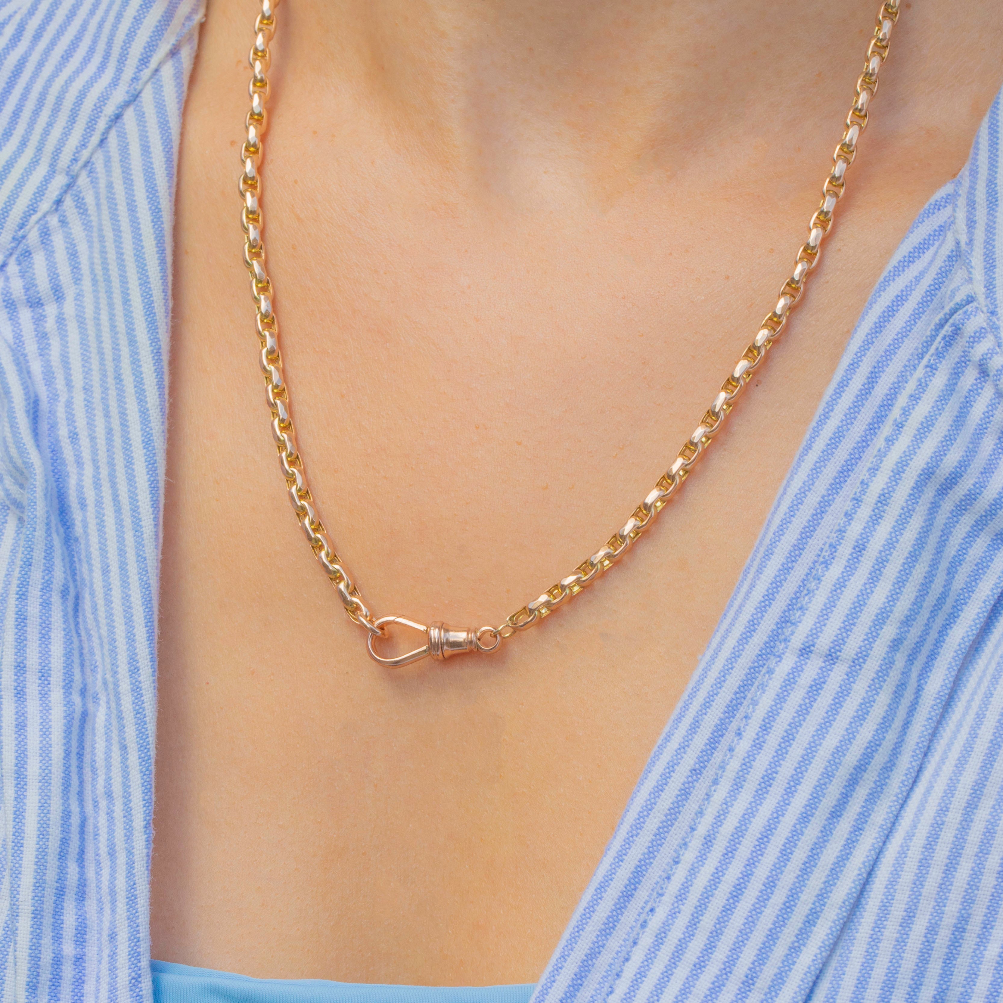 At 18" long, each link of this Victorian chain is formed from round, faceted belcher links that glint in the light and flow effortlessly across your décolletage.
