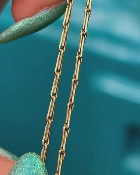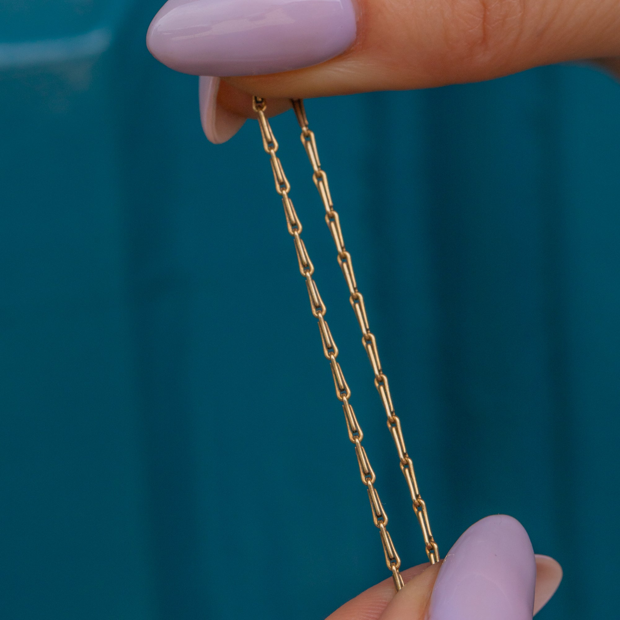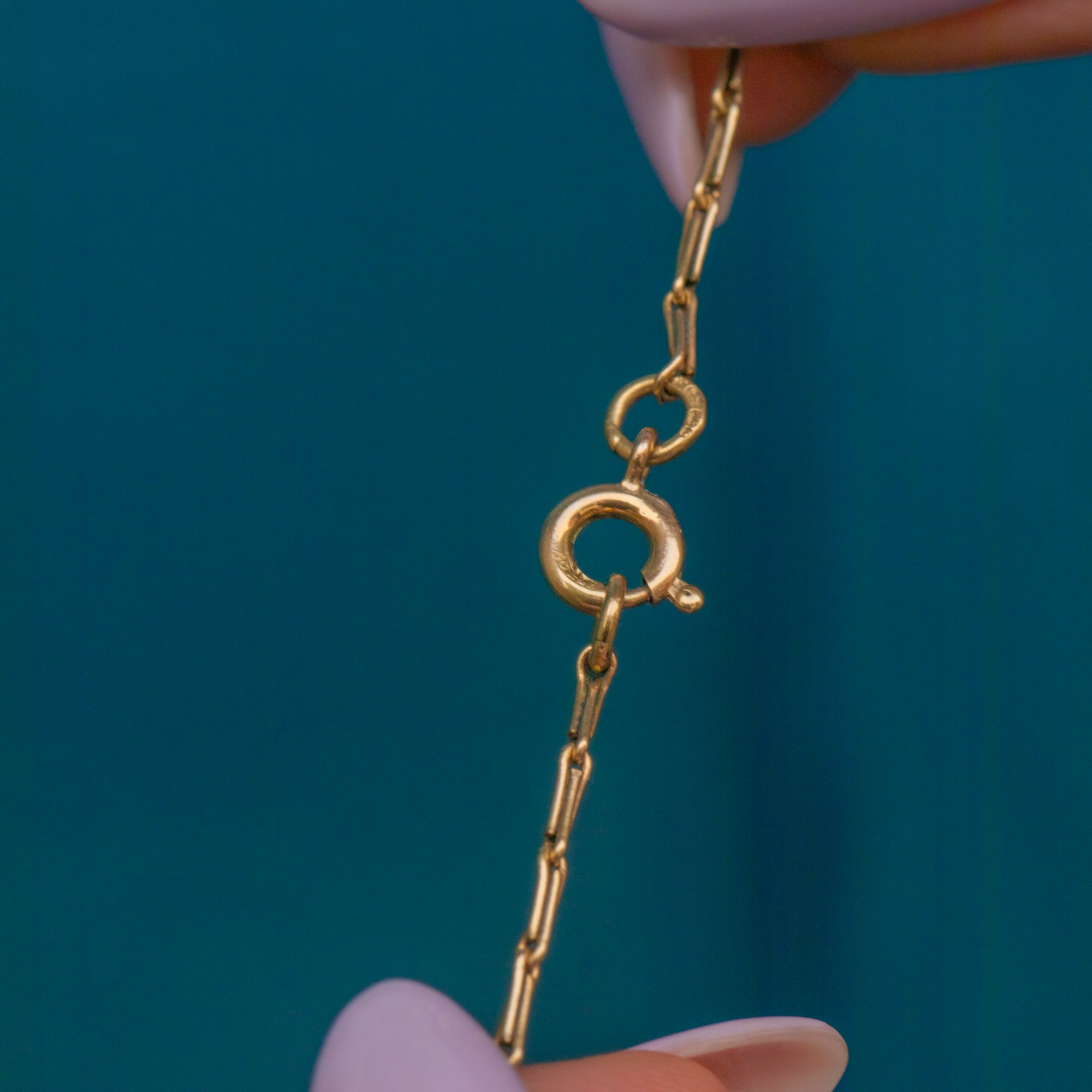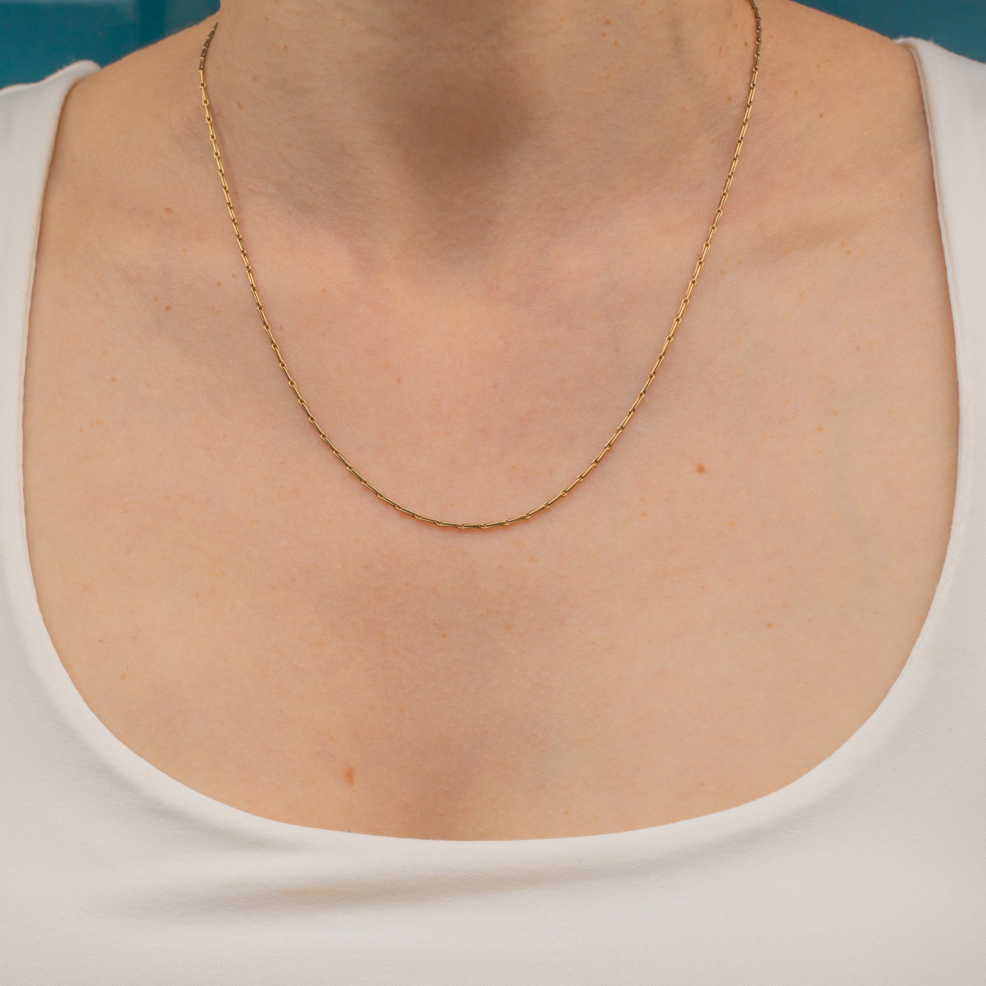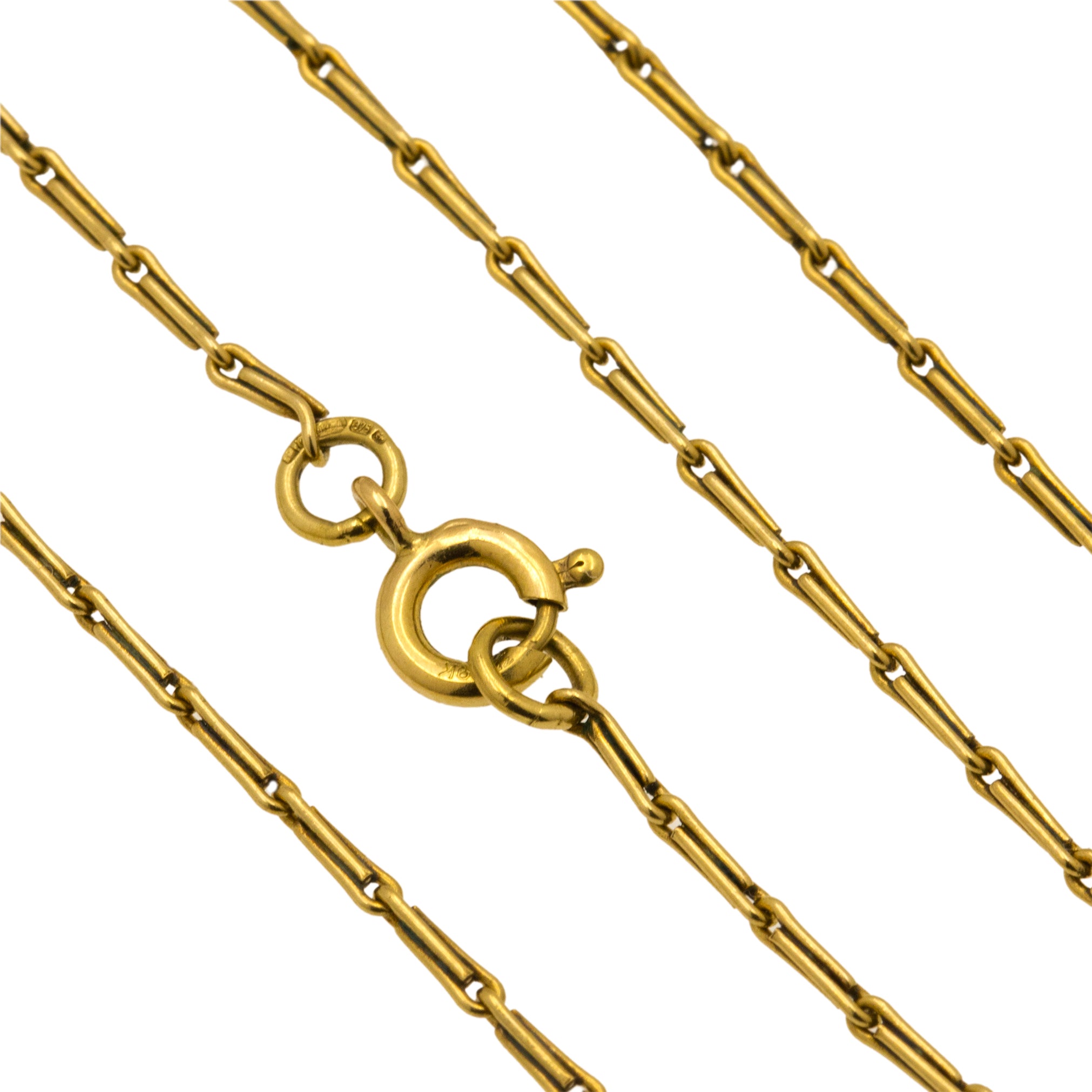 This 18" antique 9ct Gold paperclip link chain exudes plenty of elegance. This is an incredibly versatile Victorian chain, crafted from slim 9ct Gold links and fastened by a bolt ring.