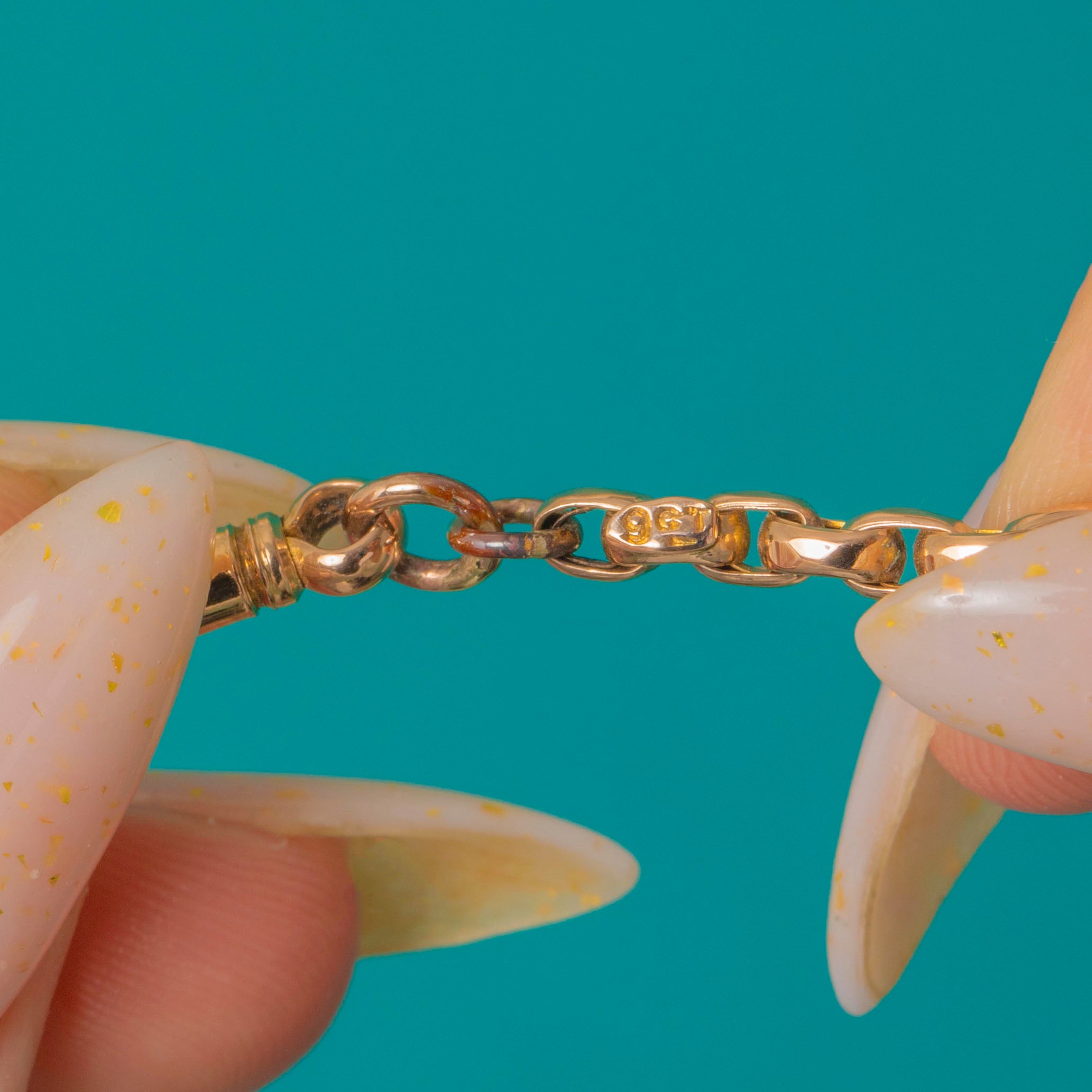 A timeless Victorian 9ct Gold chain with beautifully uniform interlocking links that drape smoothly and glow with a warm, mellow hue. Minimalist and refined, it’s the kind of classic you’ll reach for every day.