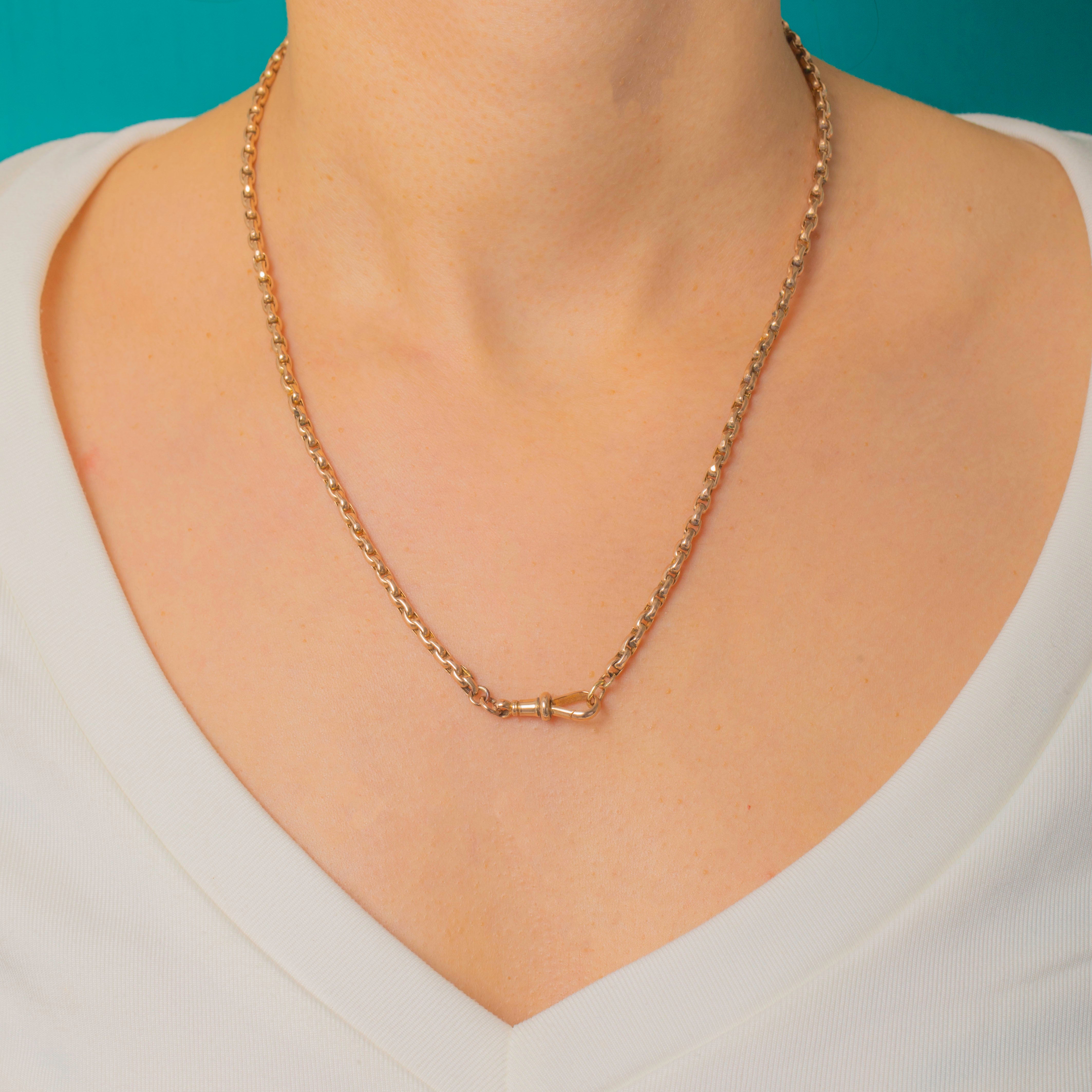 Finished with a swivel dog clip clasp for a chic utilitarian touch, this piece is stamped 9ct on the clasp and adjacent link, and feels satisfyingly substantial at 11g. Effortless alone or layered, it’s a versatile staple with enduring elegance.
