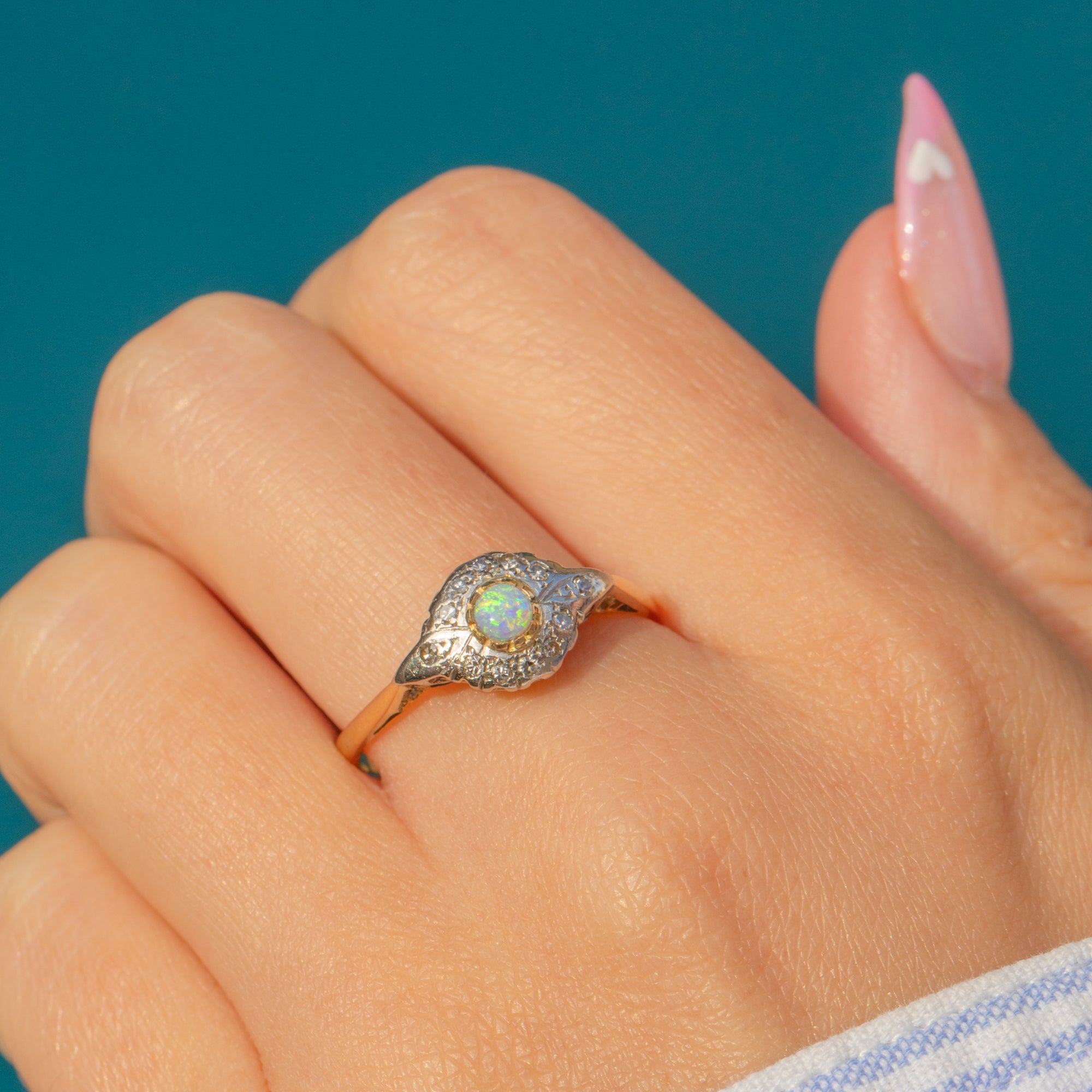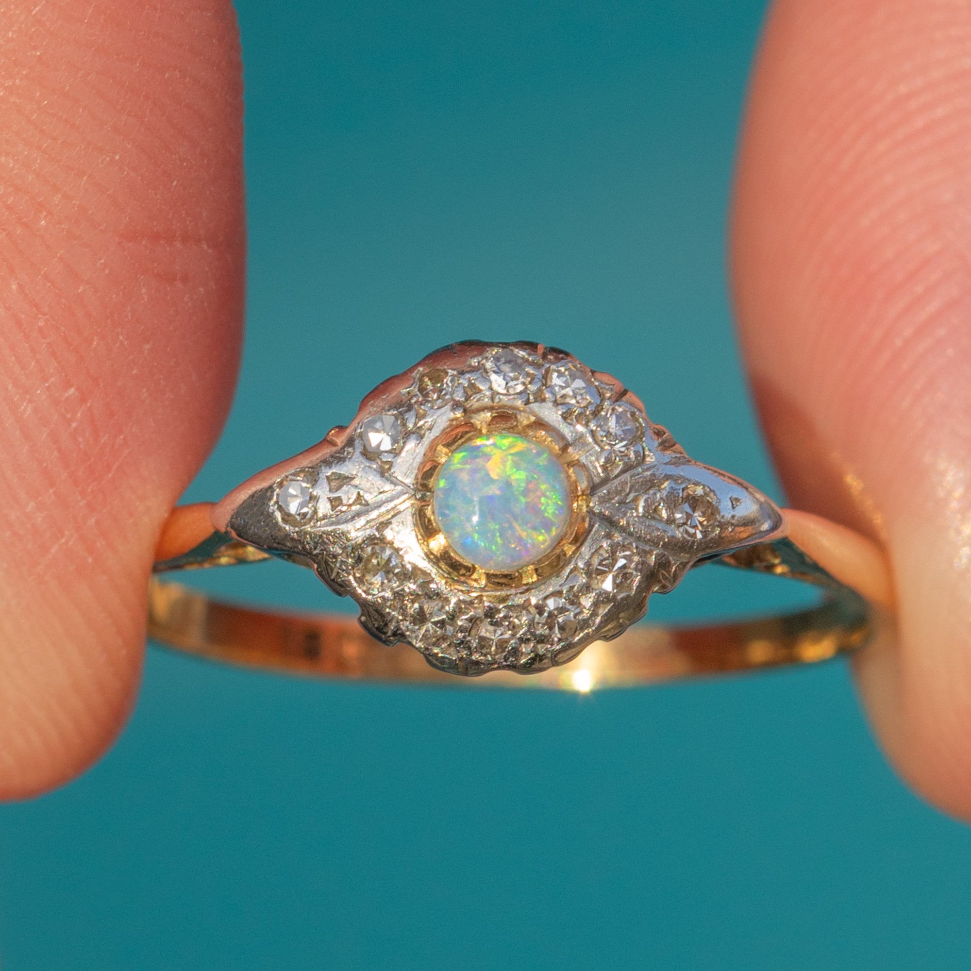 18ct Gold Art Deco Opal Diamond Ring