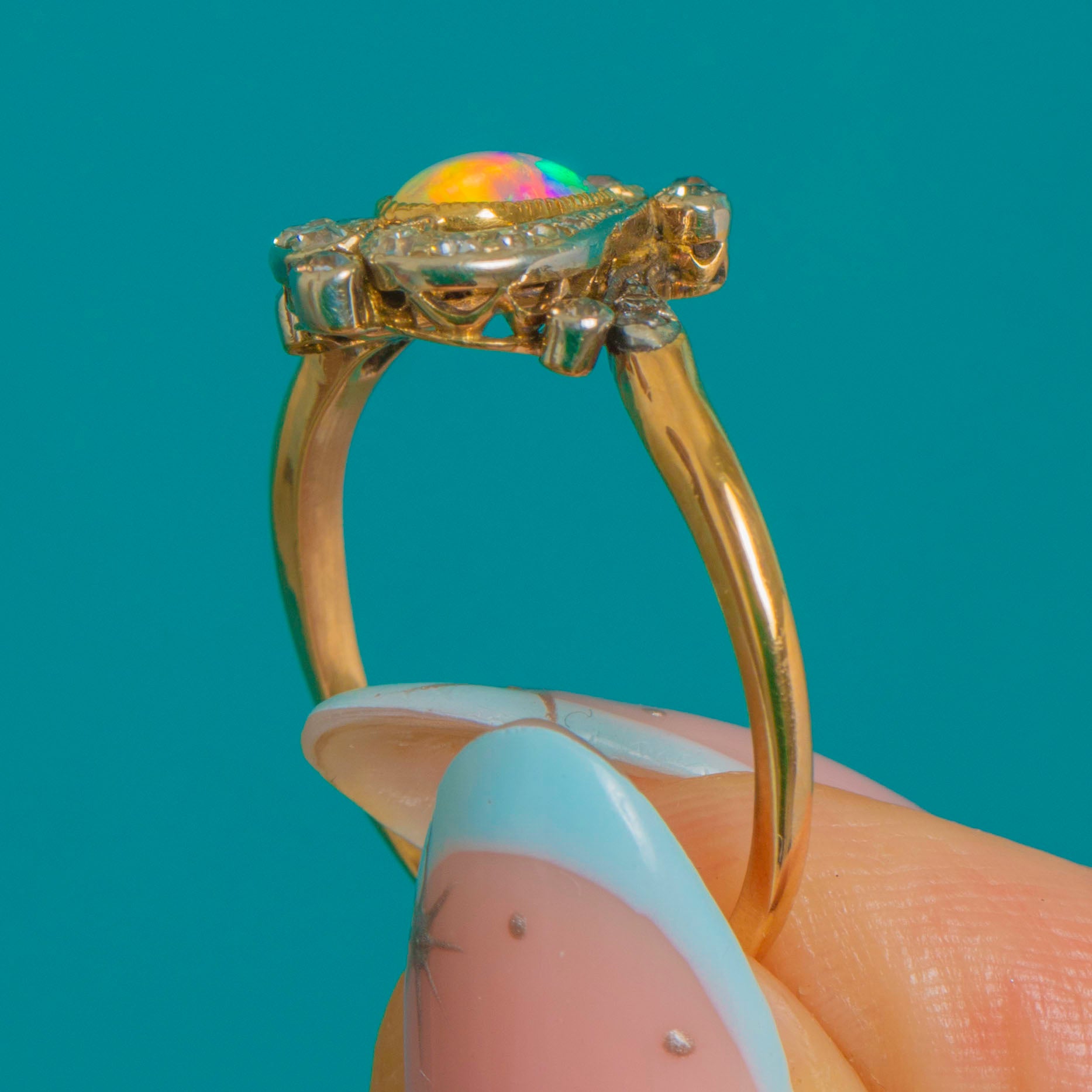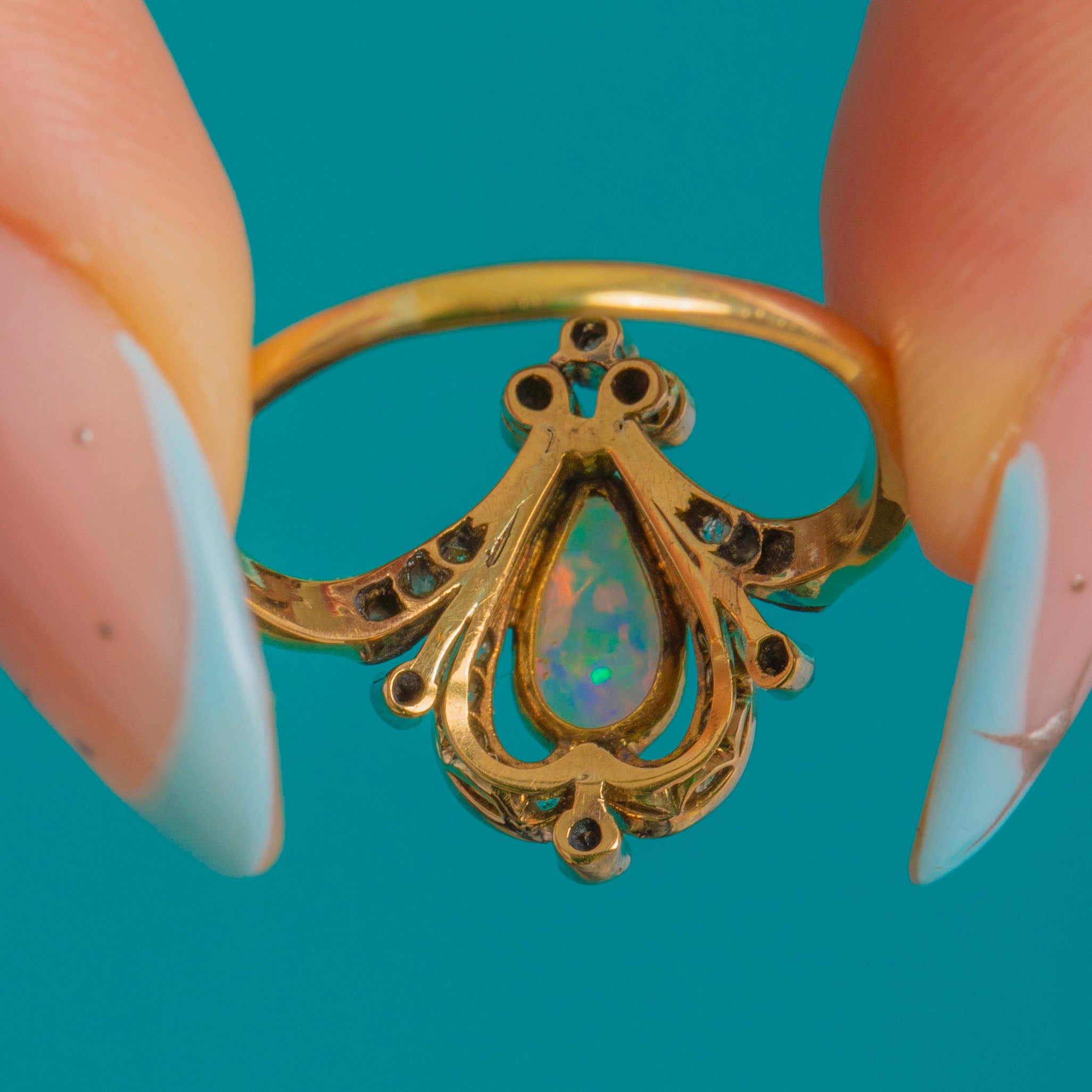 18ct Gold Art Nouveau Opal Diamond Tiara Ring