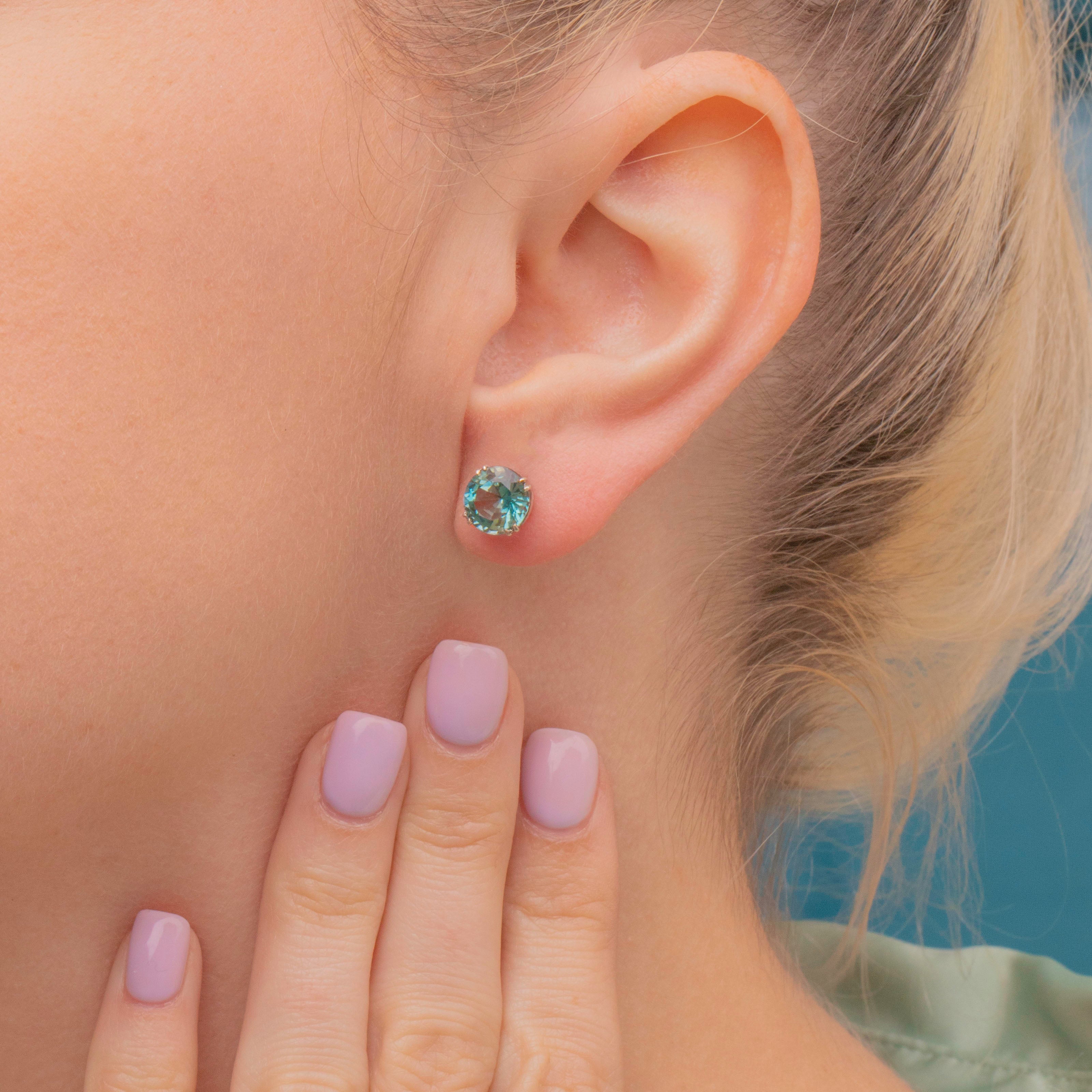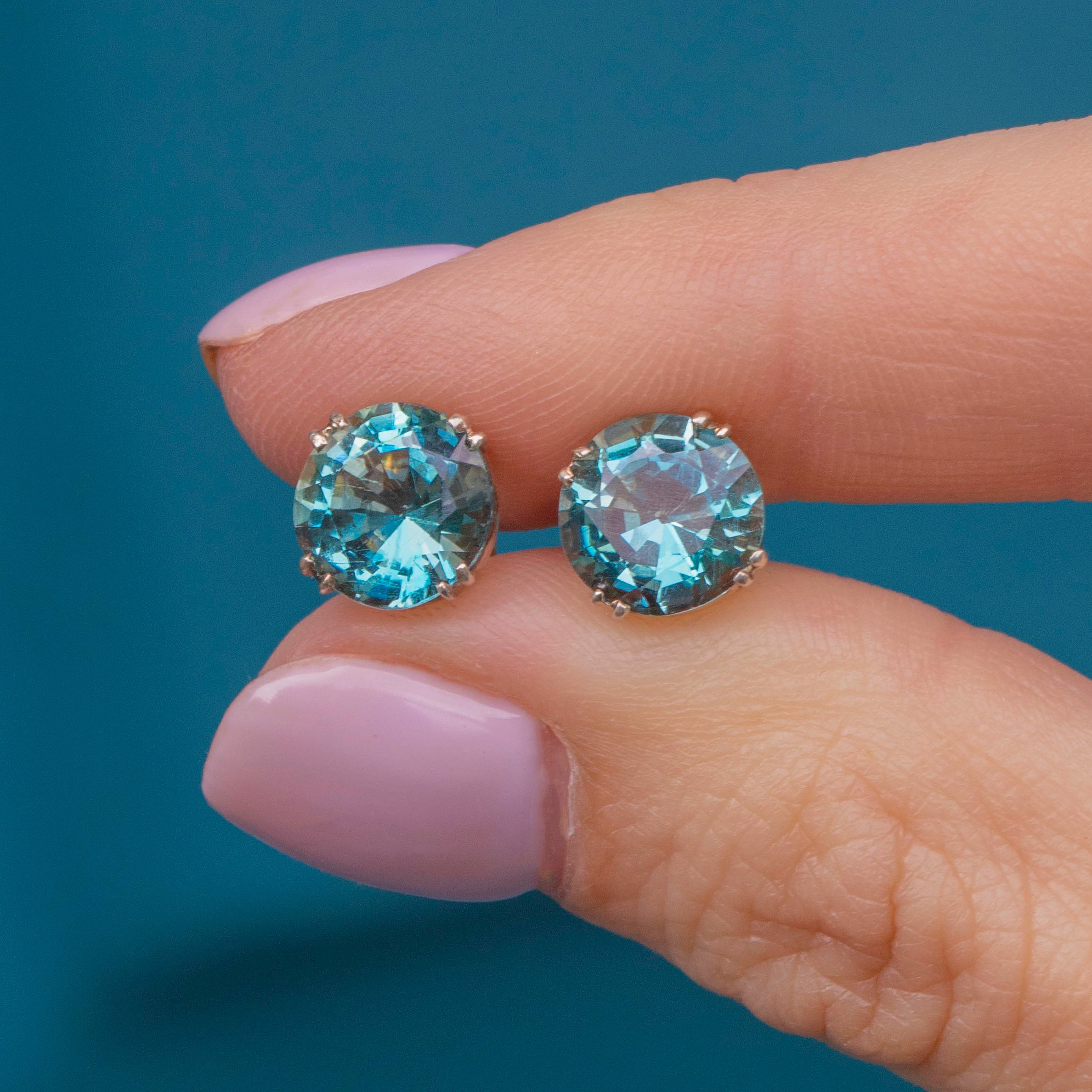 MEASUREMENTS: Blue Zircon stones are 7.5mm in diameter, approx 4.00ct total.