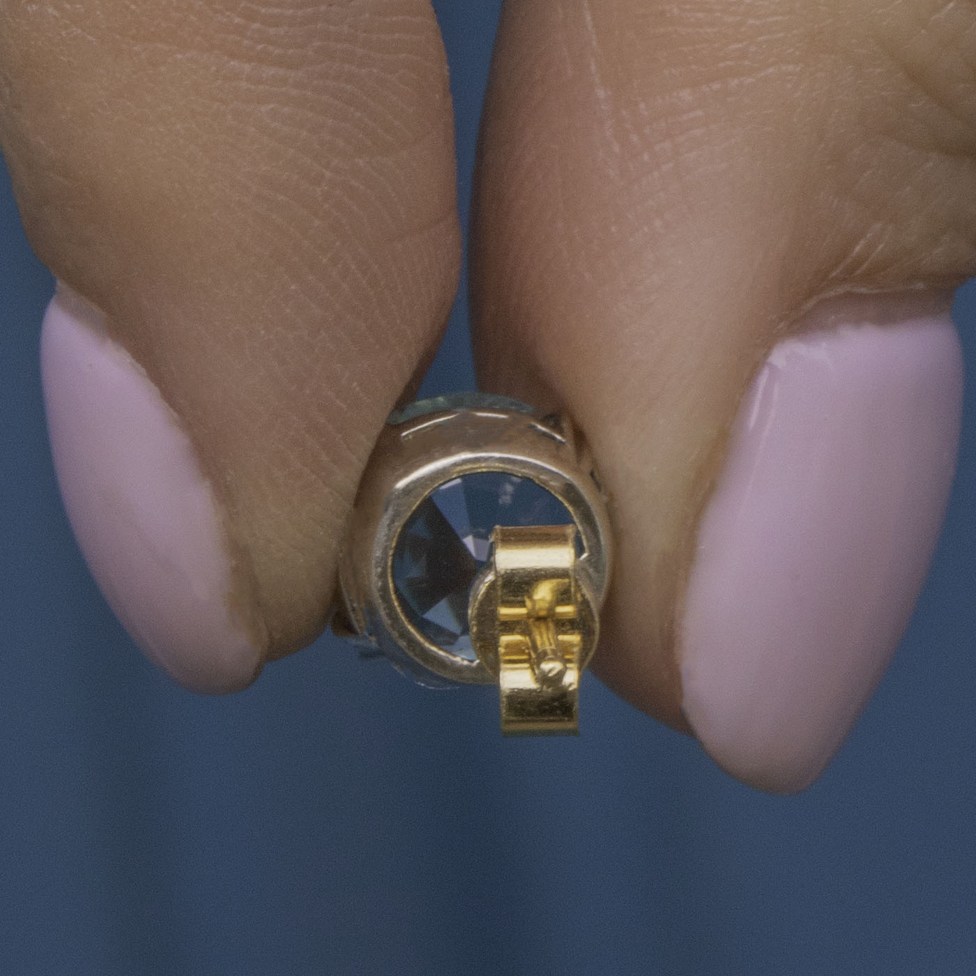 Make a bold statement with these 18ct Gold Blue Zircon Stud Earrings! With facets akin to icy blue waters, these 4.00ct Art Deco Blue Zircon Earrings are sure to turn heads.
