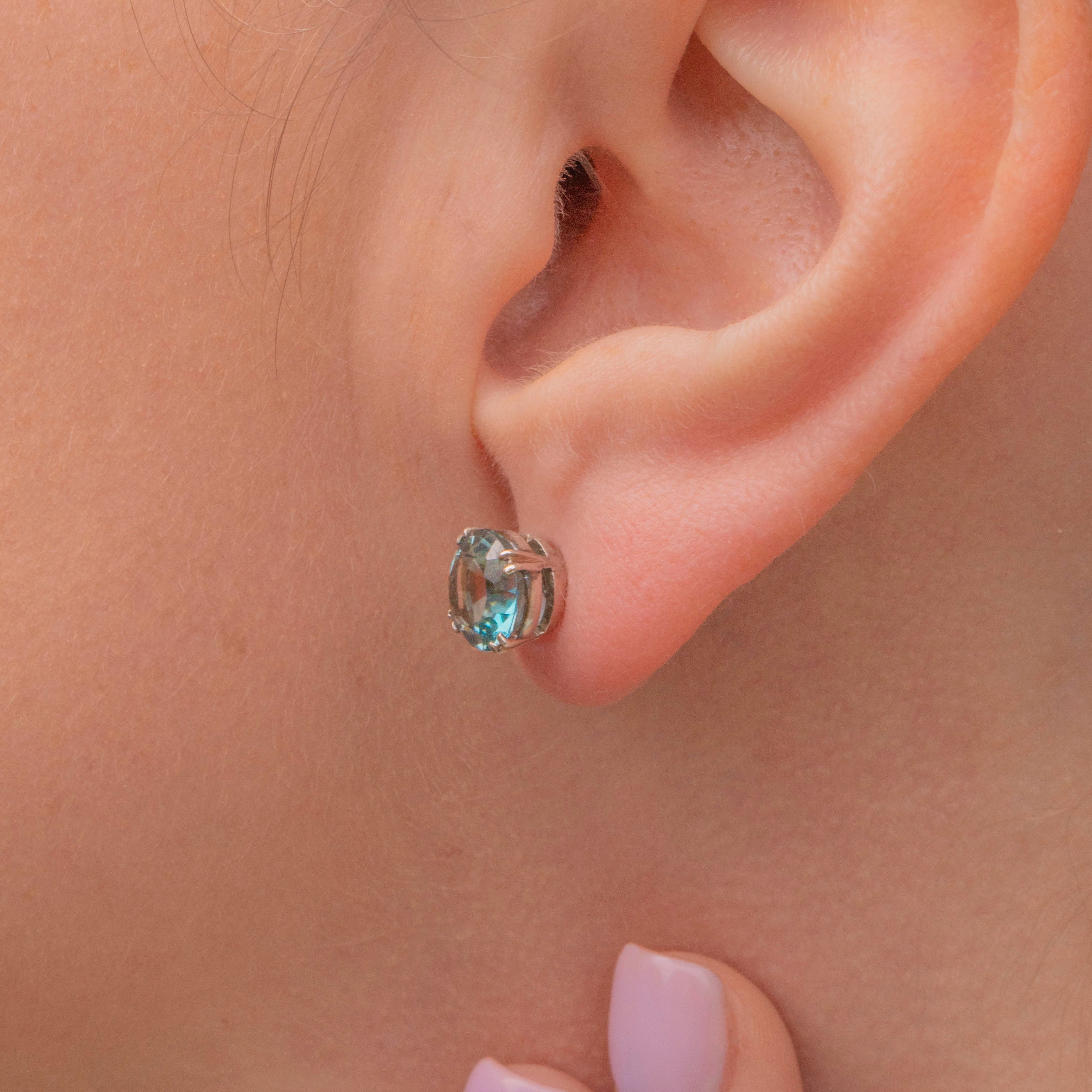 18ct Gold Blue Zircon Stud Earrings 4.00ct