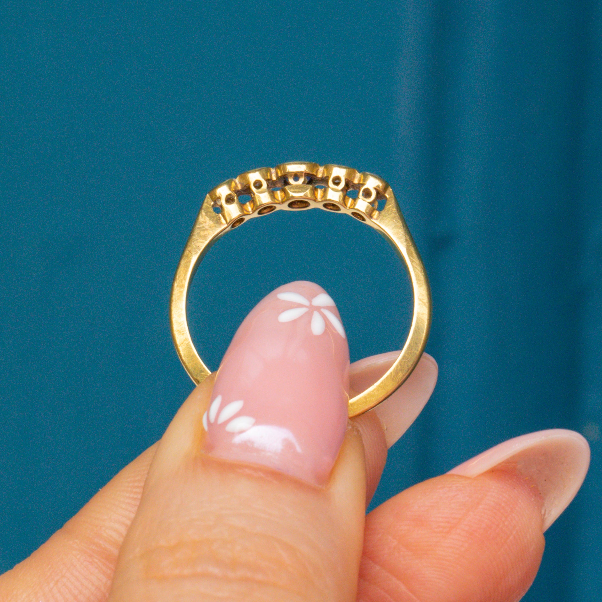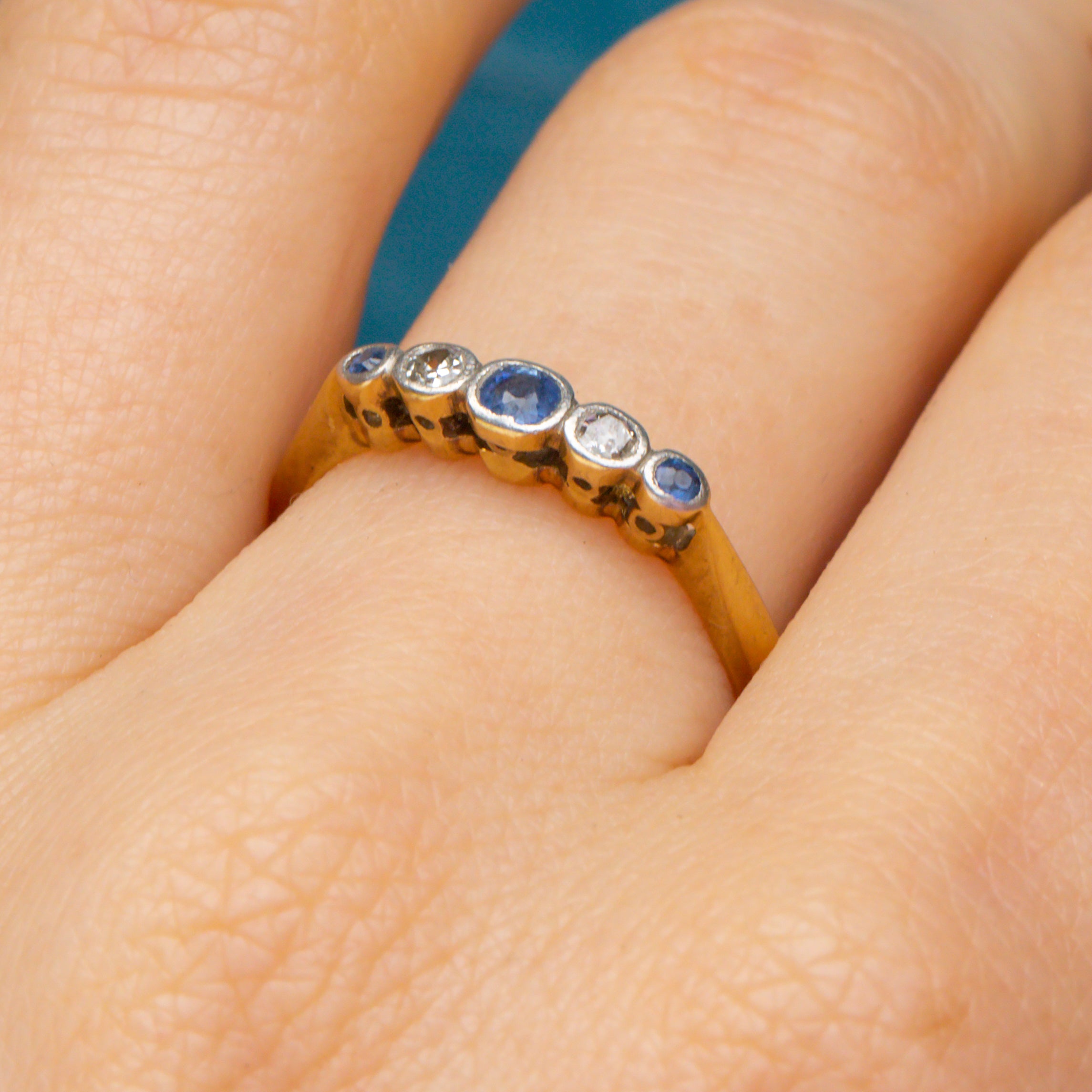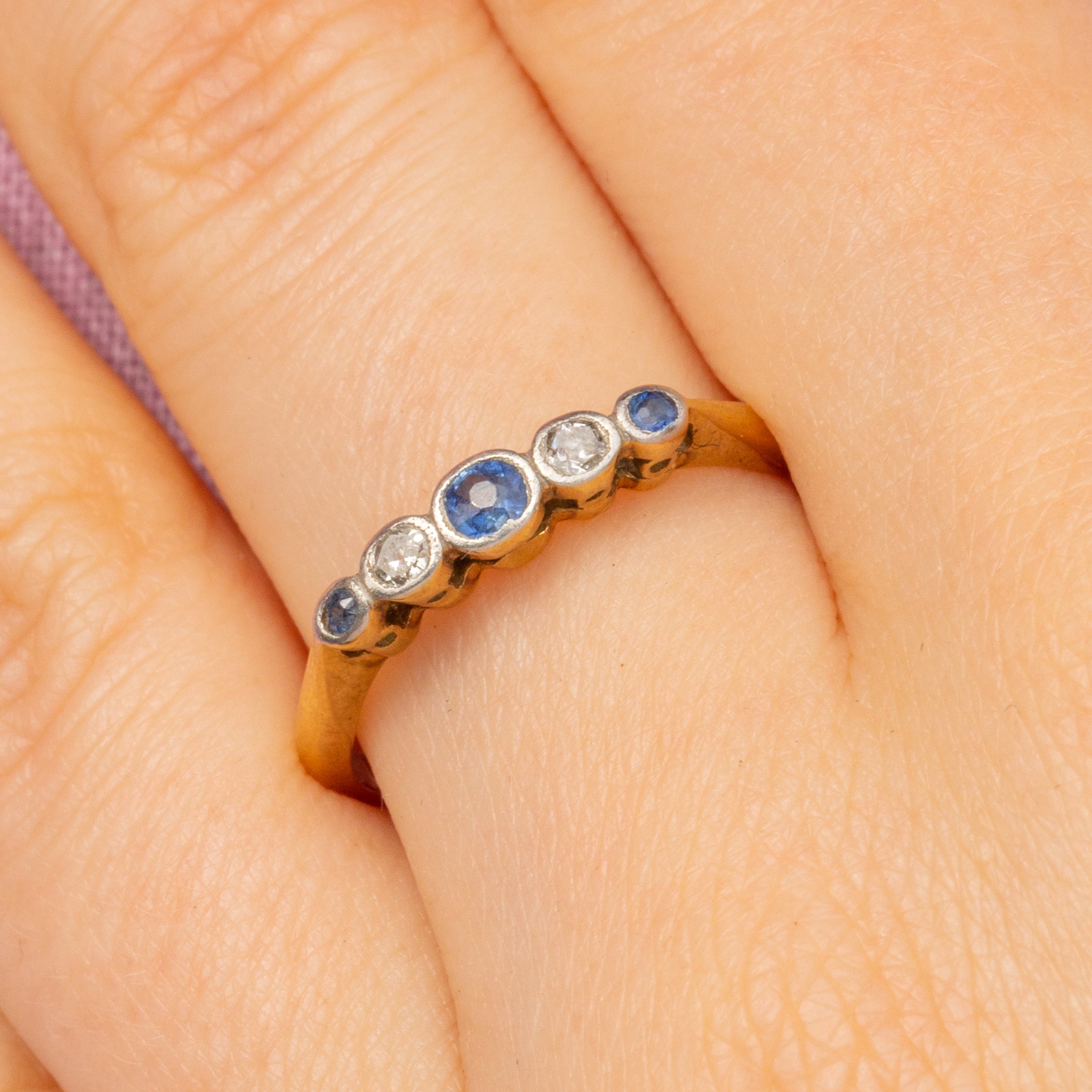 18ct Gold & Platinum Sapphire Diamond Five Stone Bezel Set Ring