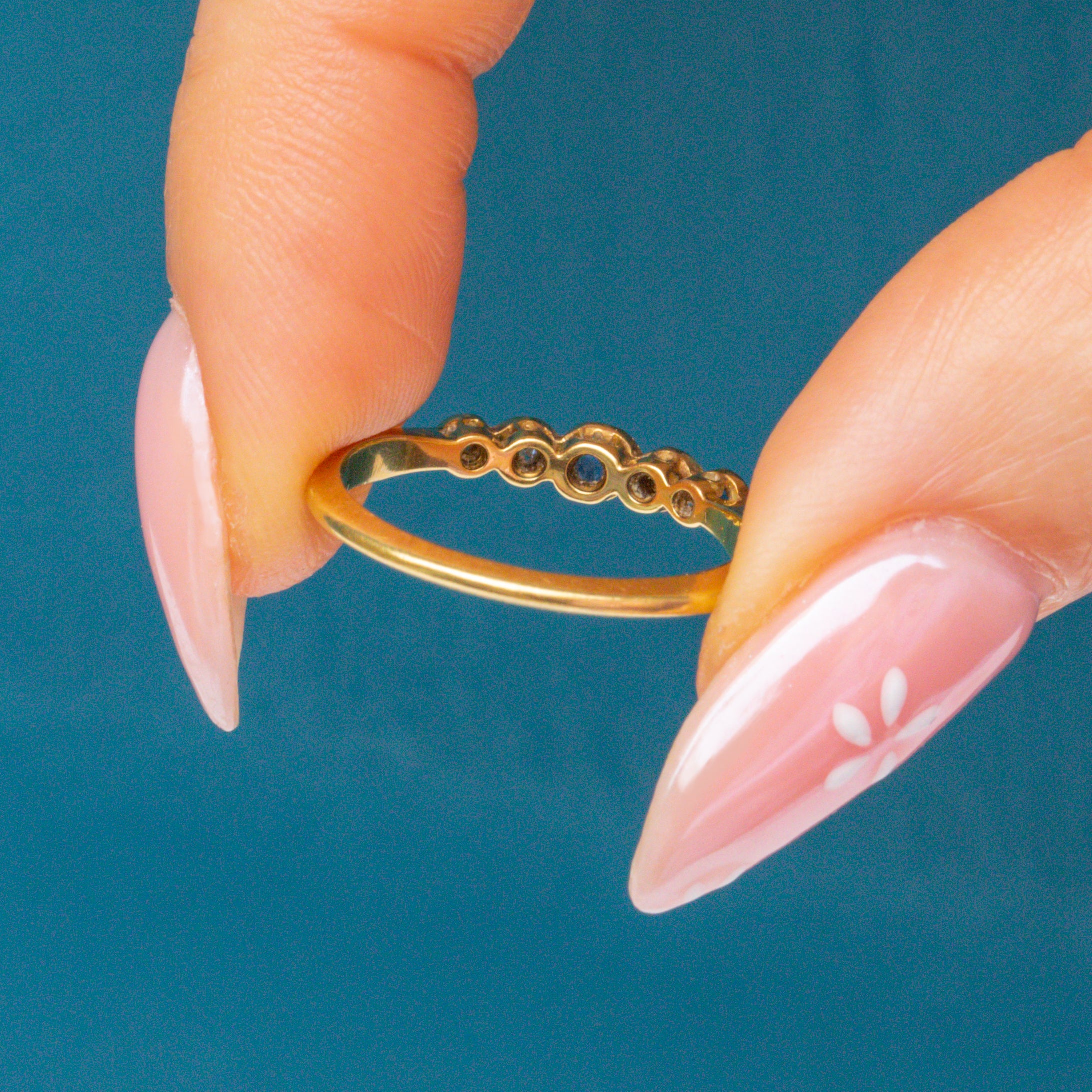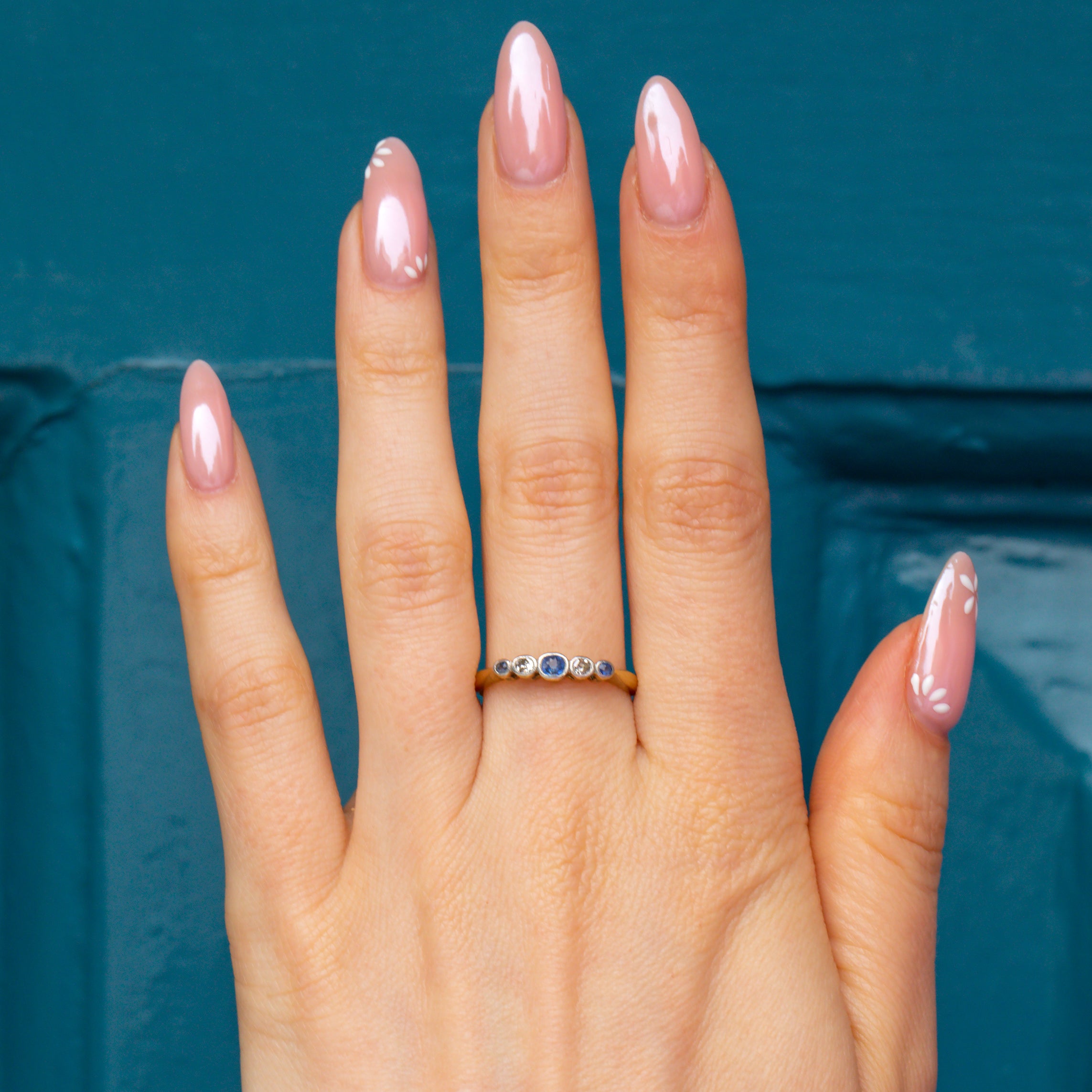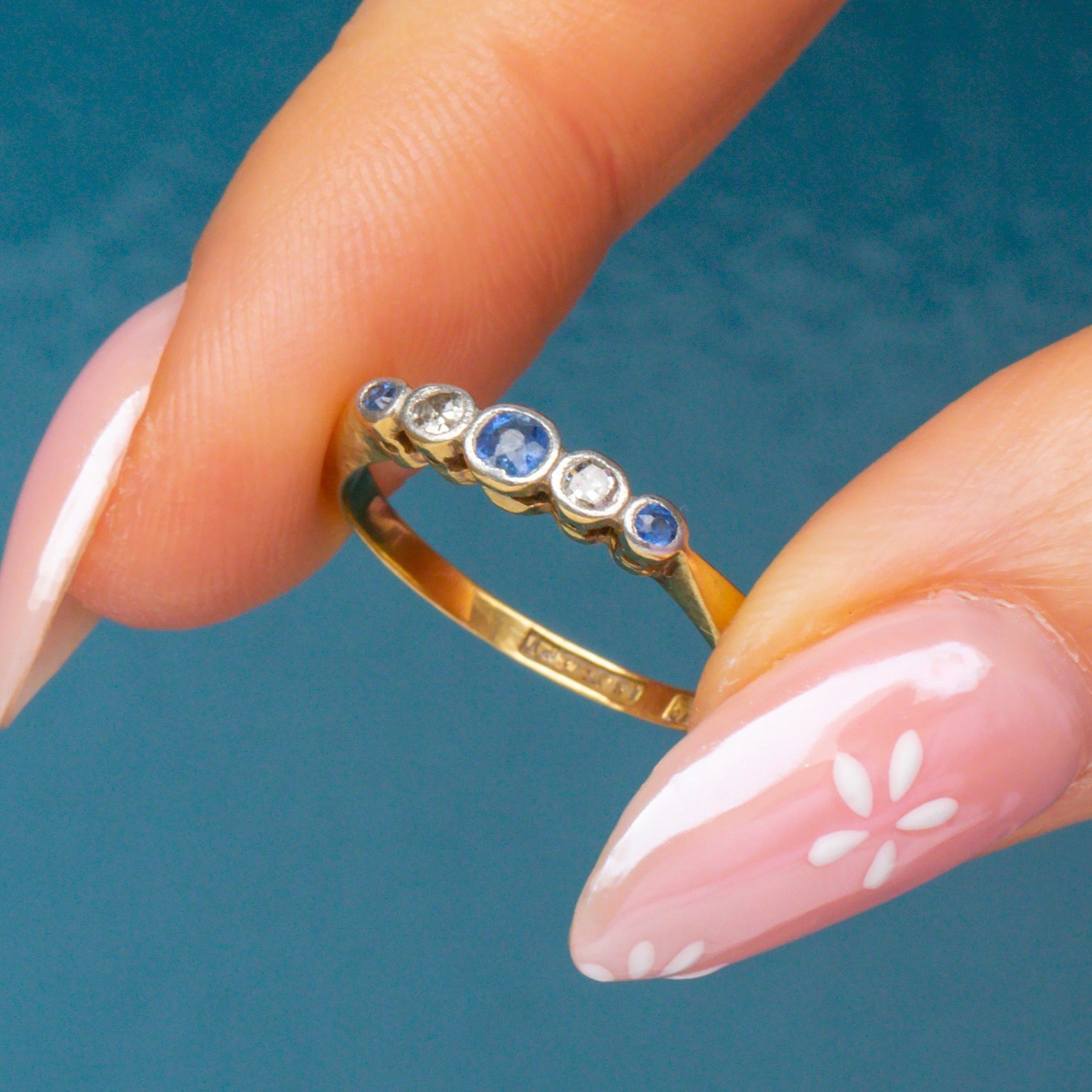 18ct Gold & Platinum Sapphire Diamond Five Stone Bezel Set Ring