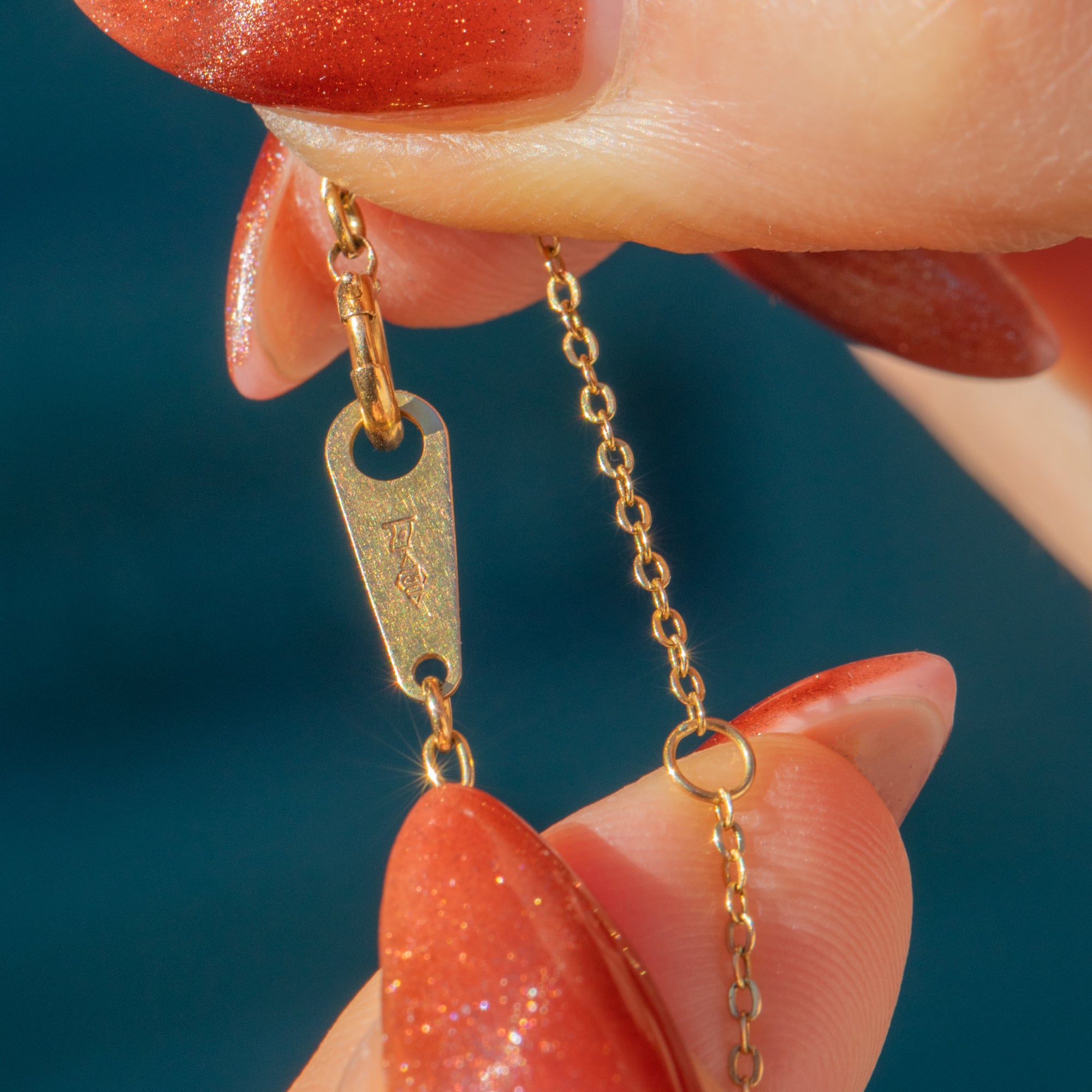 Featuring a cluster of Sapphires and Diamonds, this petite vintage charm is crafted into a dainty floral motif. The gemstones are set within buttery 18ct Gold, complemented by a bright 16" Gold chain.