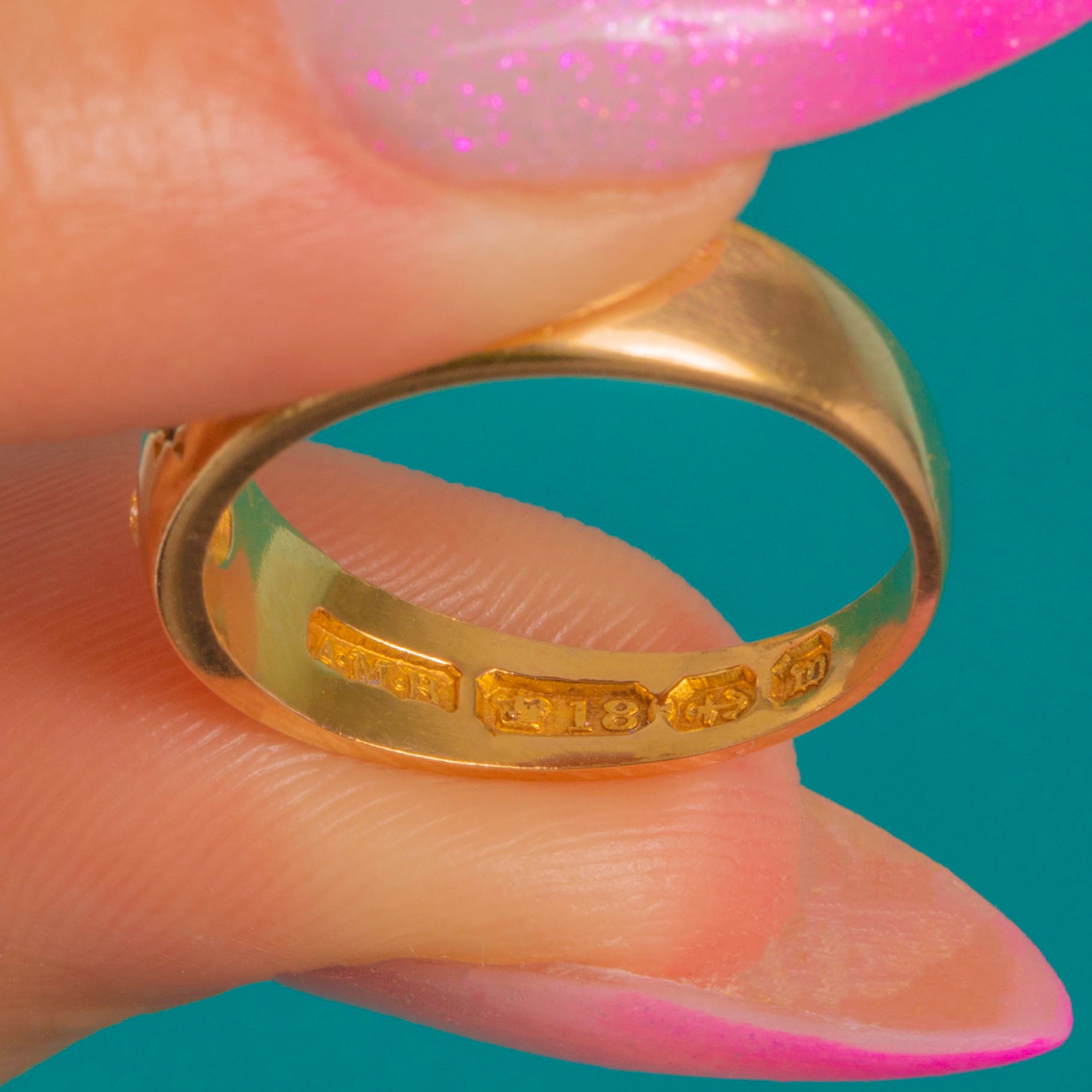 HALLMARKS: AMB, Crown, 18, Birmingham Anchor, M for 1886