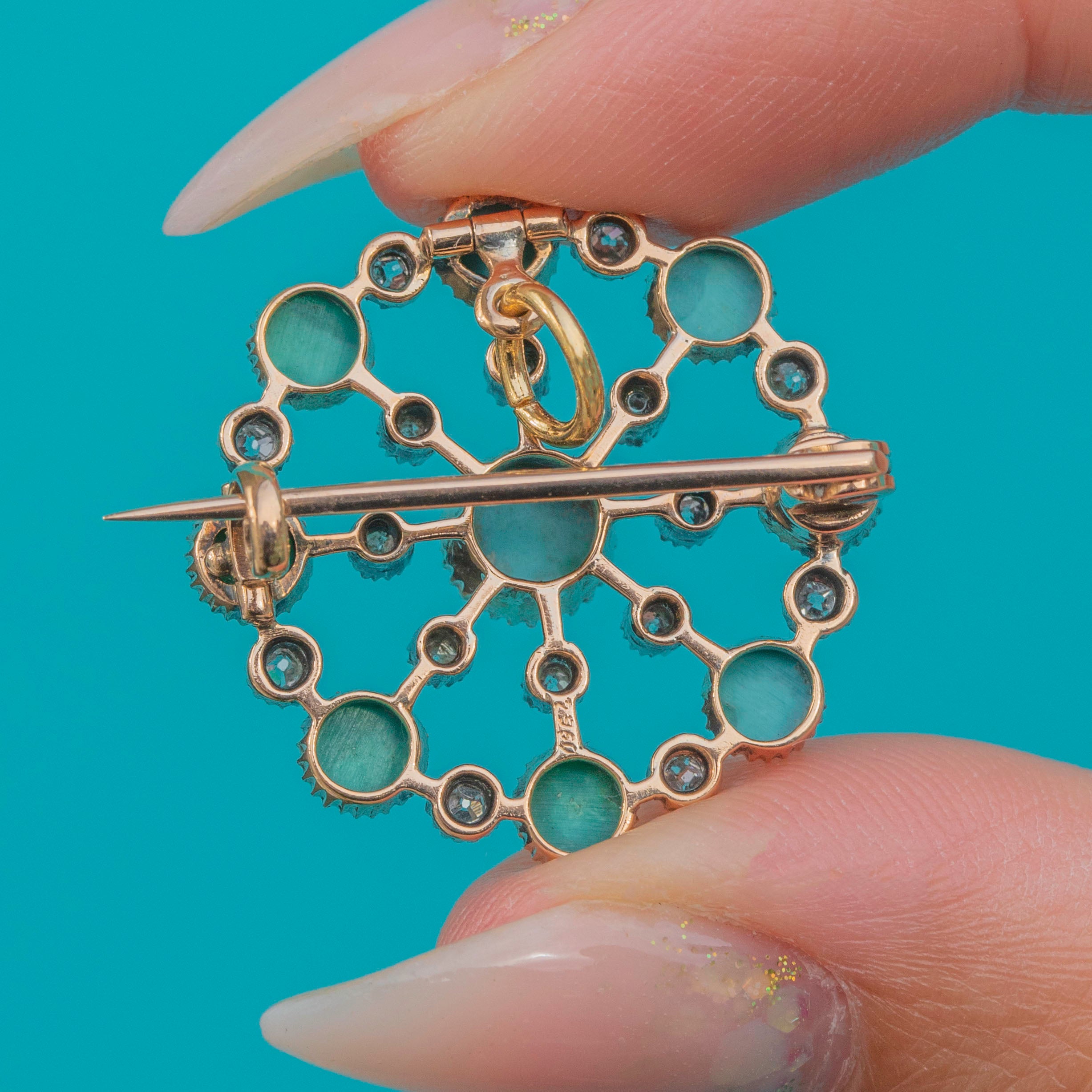 18ct Gold Turquoise & Diamond Convertible Pendant / Brooch Item added