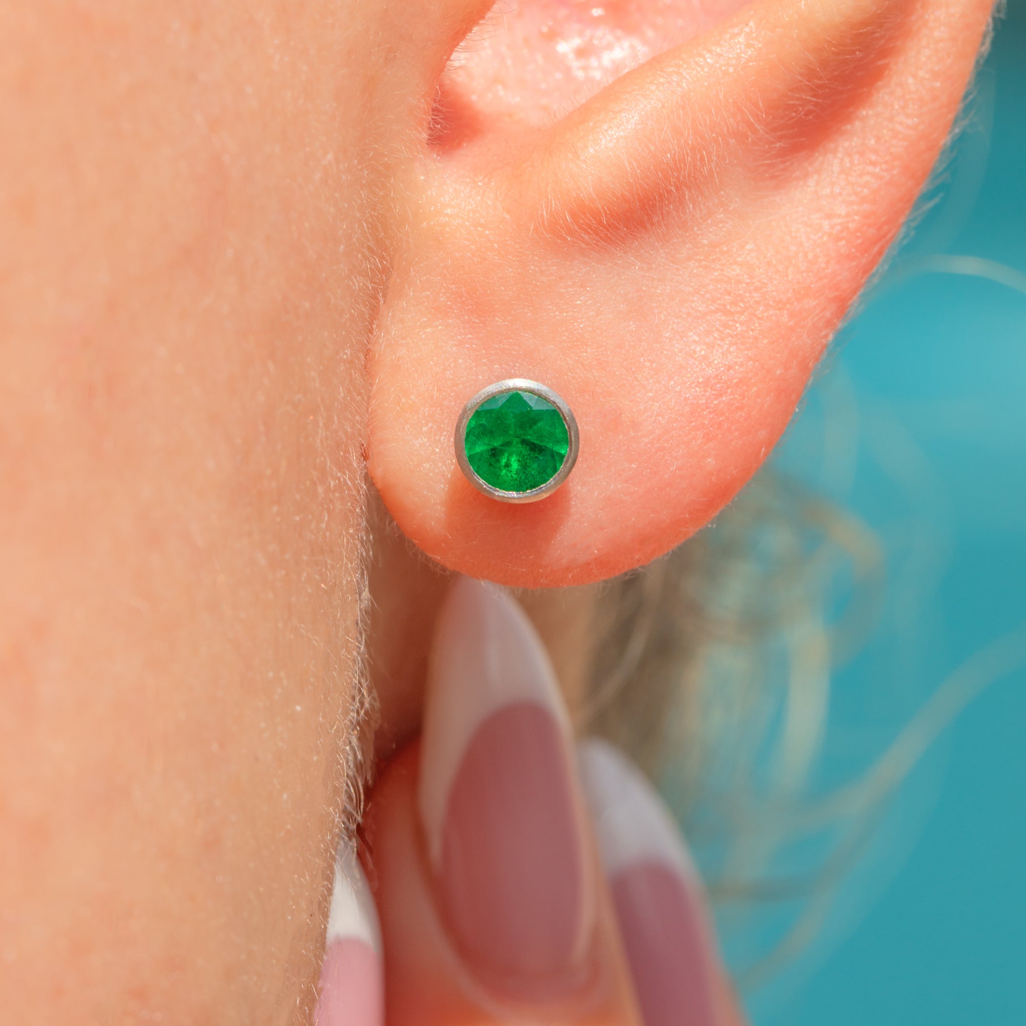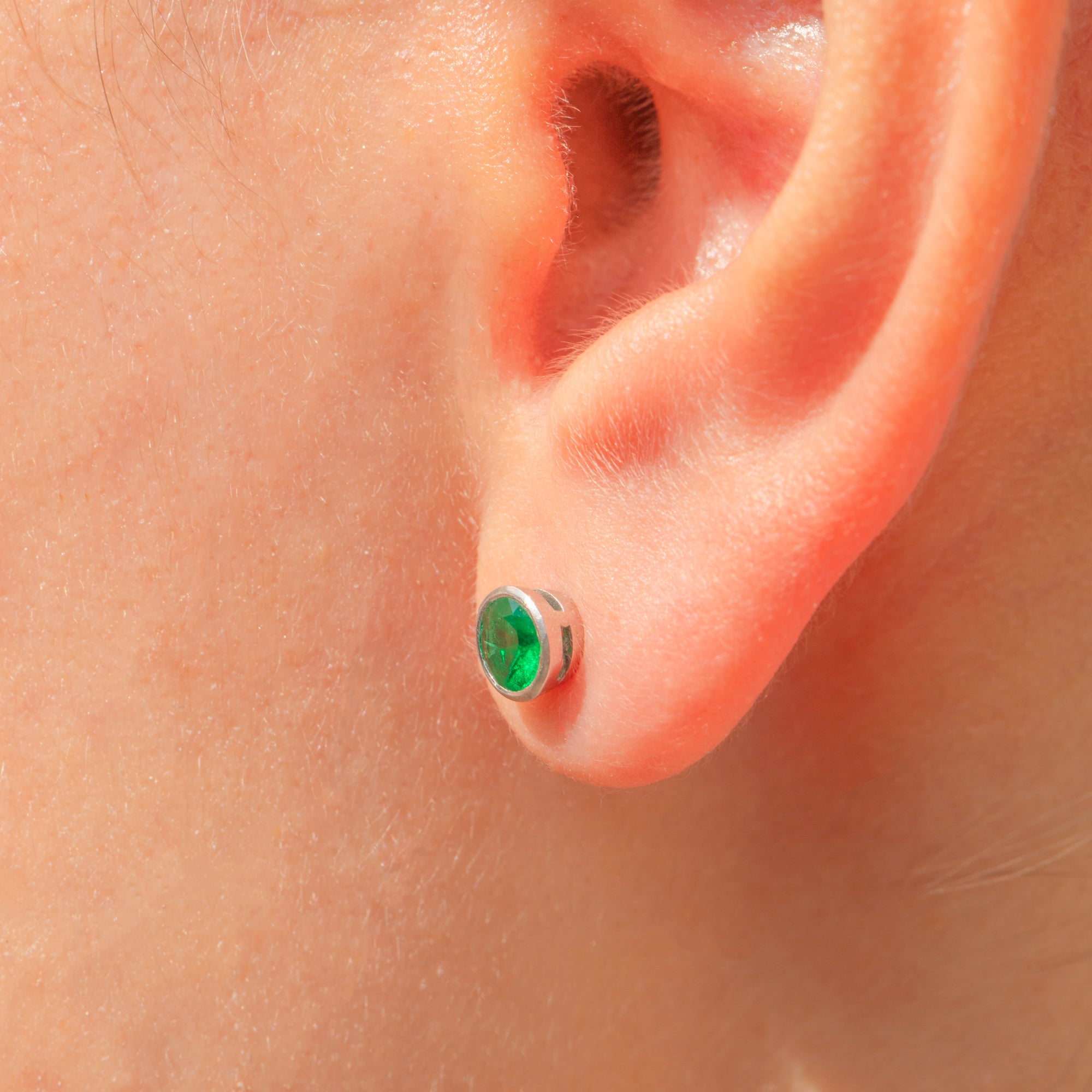 These elegant mid-century vintage stud earrings feature vivid, bright Emeralds set in glossy 18ct White Gold bezels. Each Emerald is beautifully cut and boast a combined weight of 0.70ct.