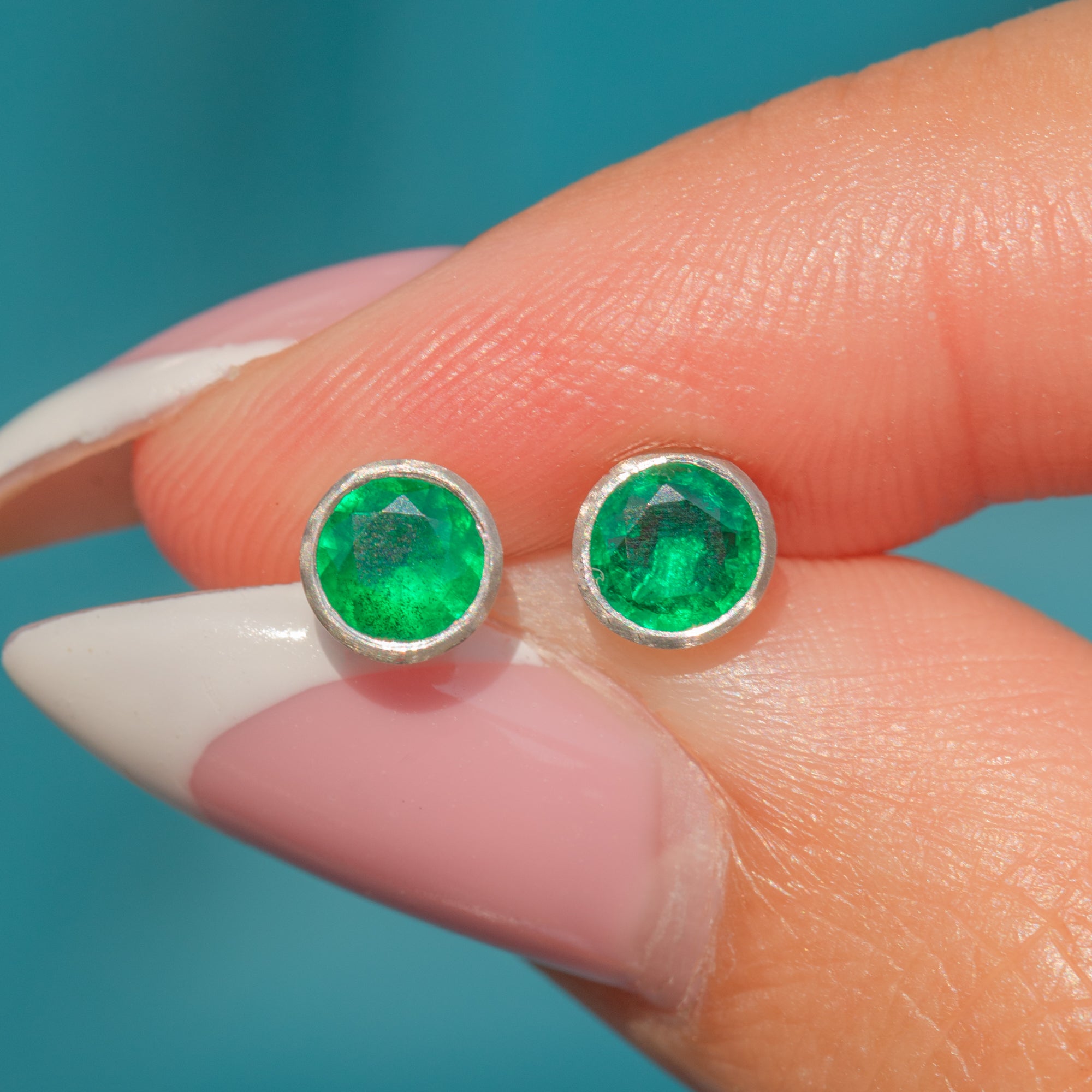 MEASUREMENTS: Emeralds measure 4.5mm each, weighing 0.70ct combined.