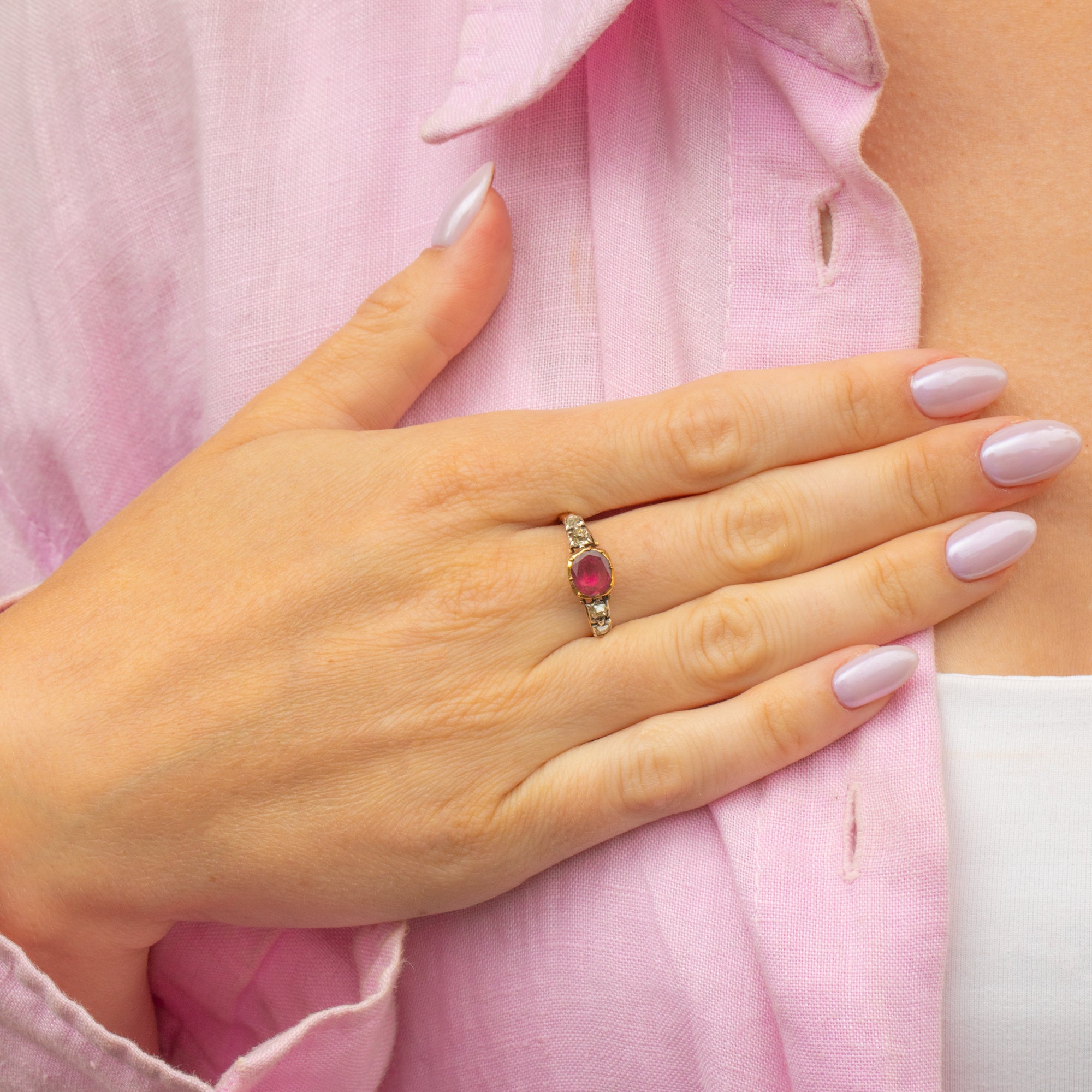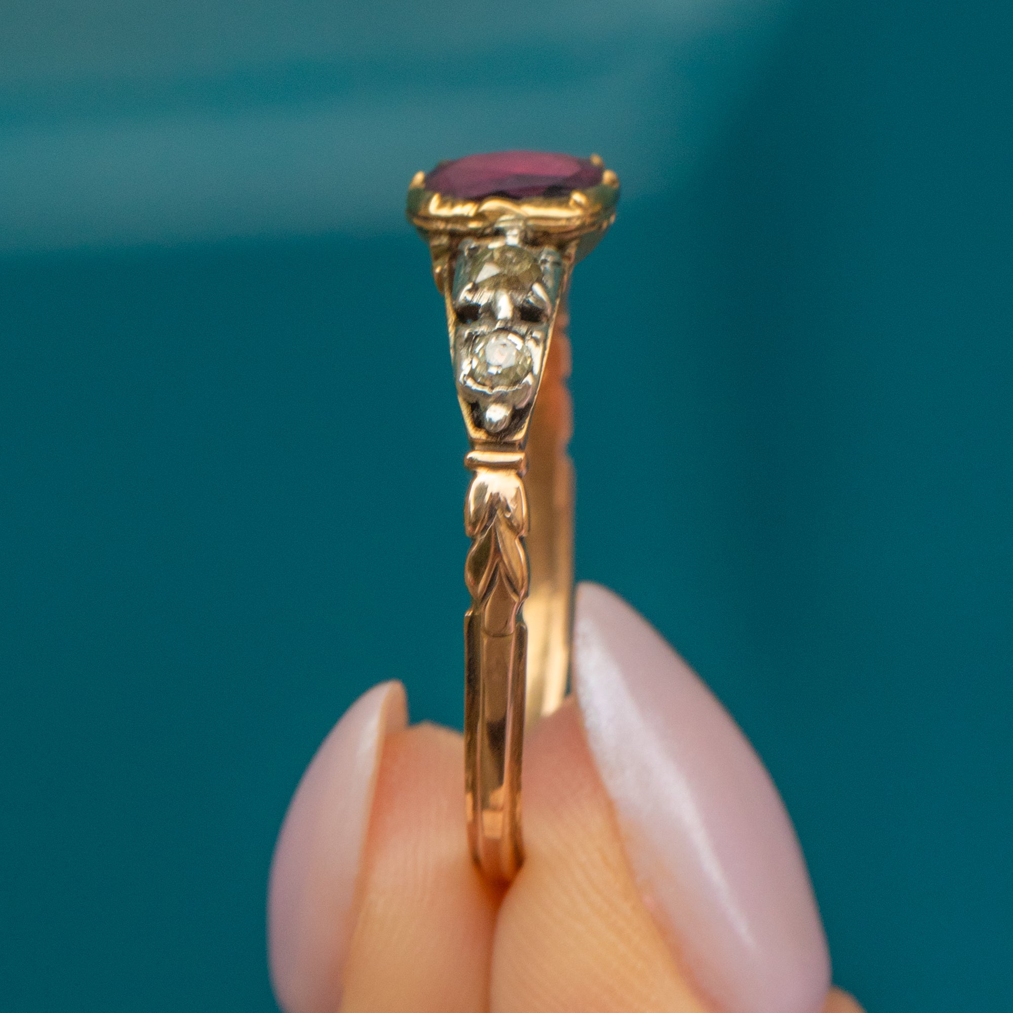 18th-Century Georgian 18ct Gold Garnet Diamond Half-Hoop Ring c.1790