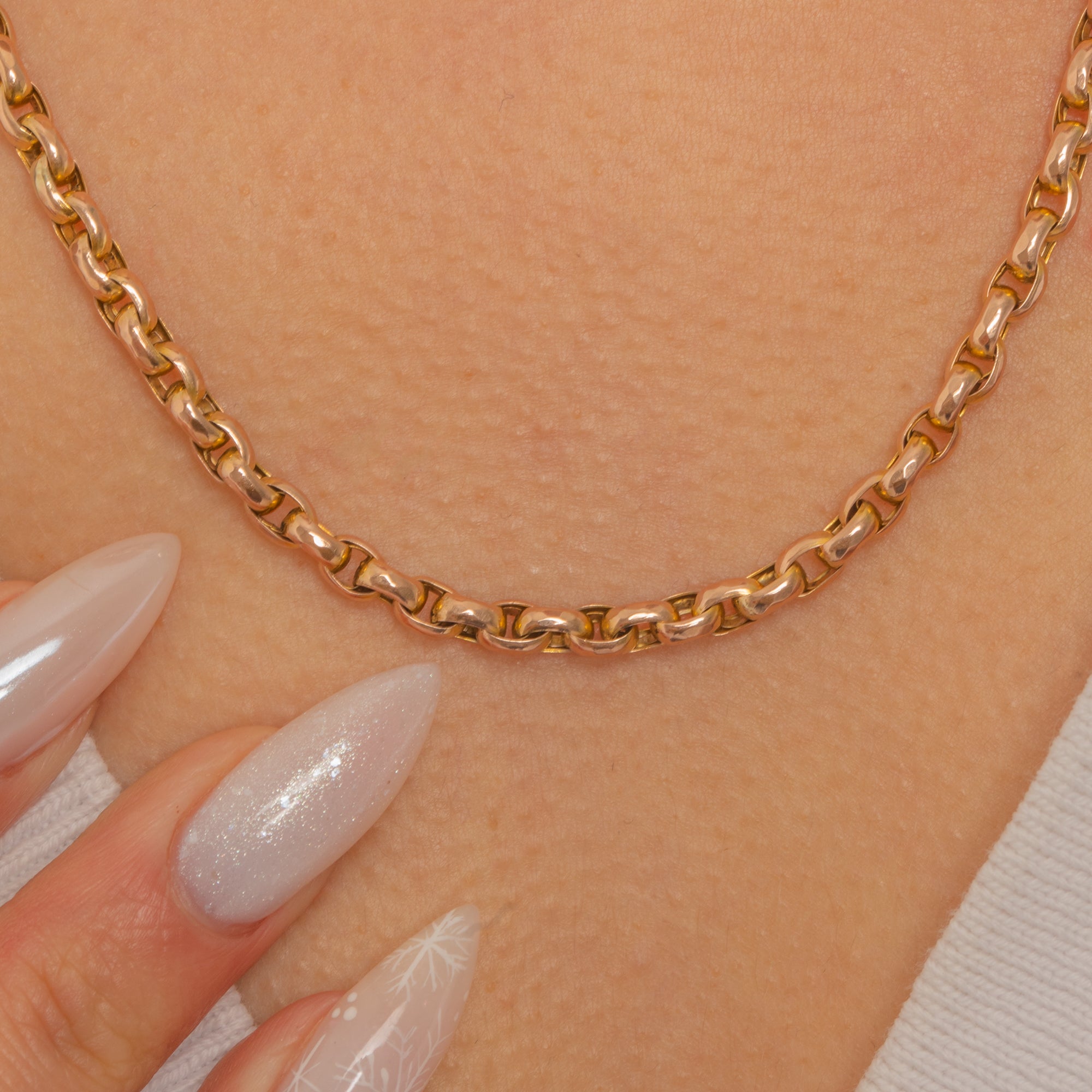 A classic 9ct Gold Belcher chain with lightly faceted links that catch the light with every movement. Its sleek, uniform construction delivers that elevated, everyday luxury look—perfect worn solo or as a foundation for your favourite pendants.