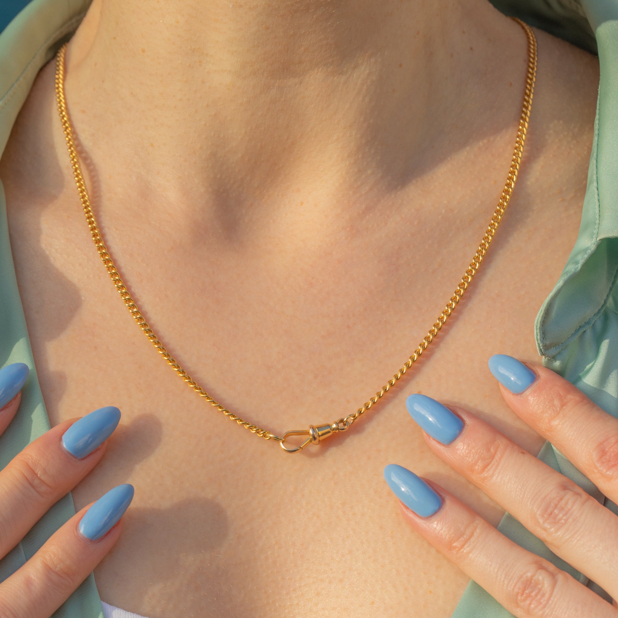 At a desirable length of 20", undeniable luxury will drape across your décolletage as the gorgeous uniform curb links move like liquid Gold. Boasting a 15C hallmark on her highly sought-after dog clip, this Victorian necklace is a wonderful collector's piece and would make a fine addition to anyone's jewellery box!