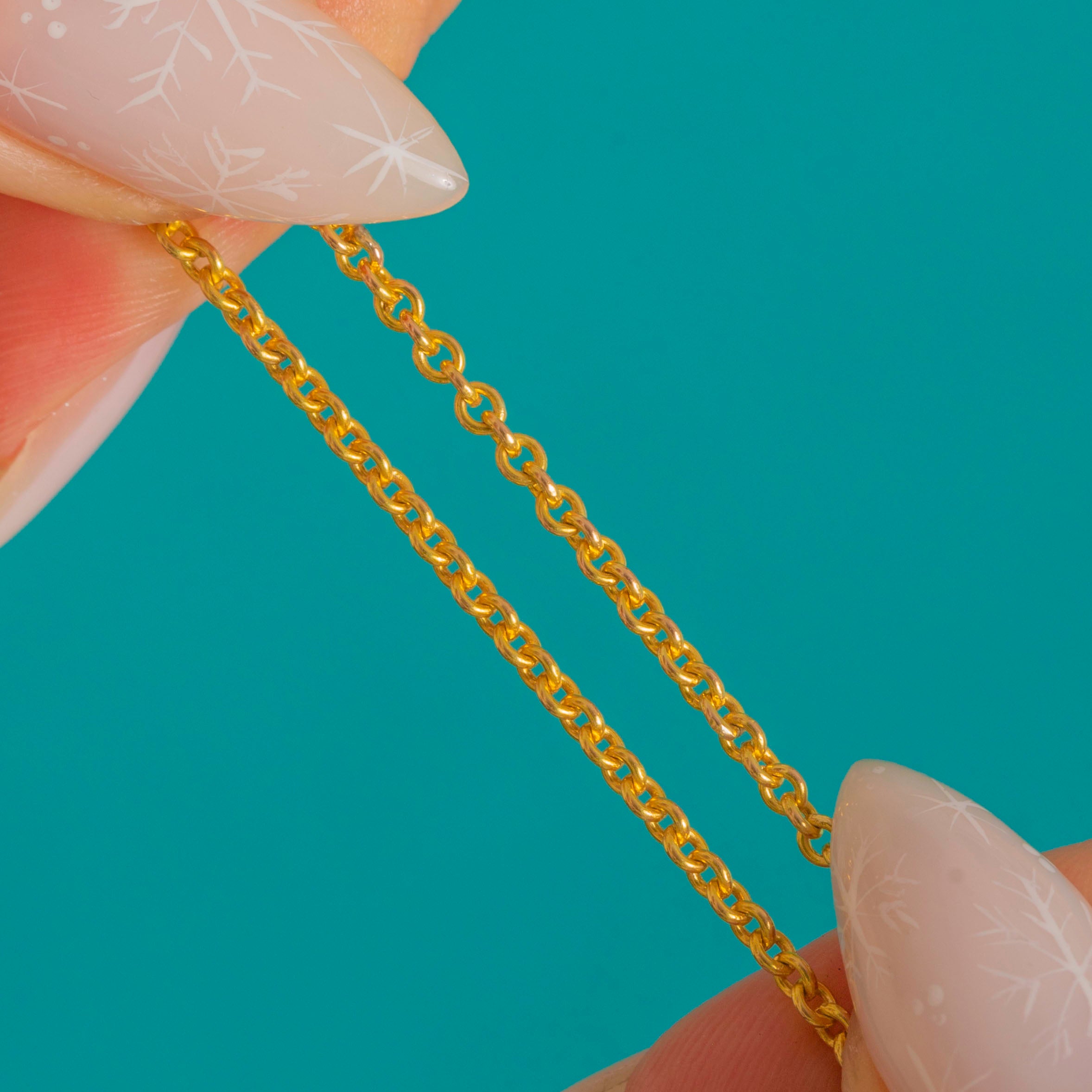 A classic Victorian essential, this antique 15ct Gold pendant chain is the epitome of understated elegance. It's fine 1.5mm links shimmer with a soft, buttery glow, creating a refined silhouette that pairs beautifully with your favourite antique pendants or shines worn solo.
