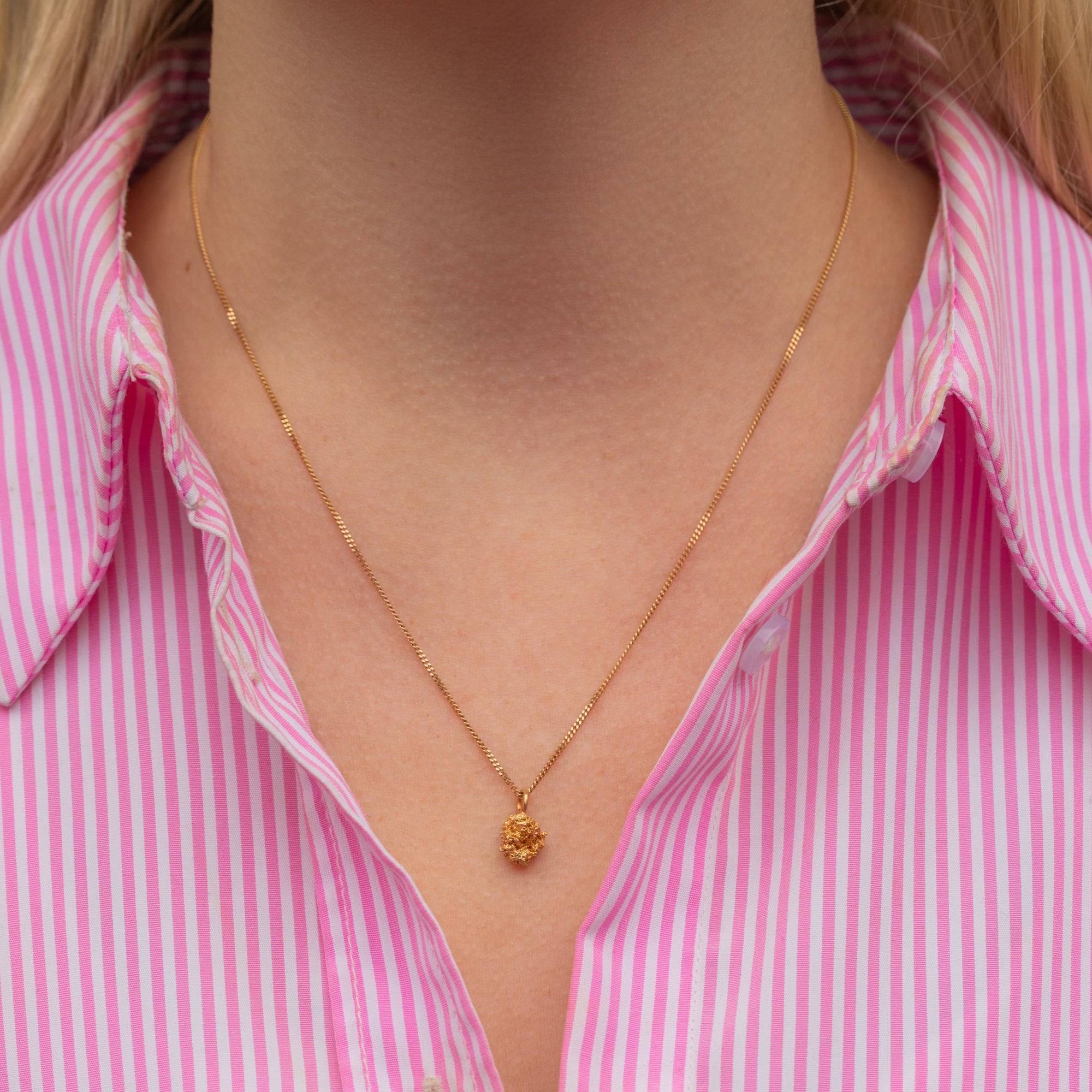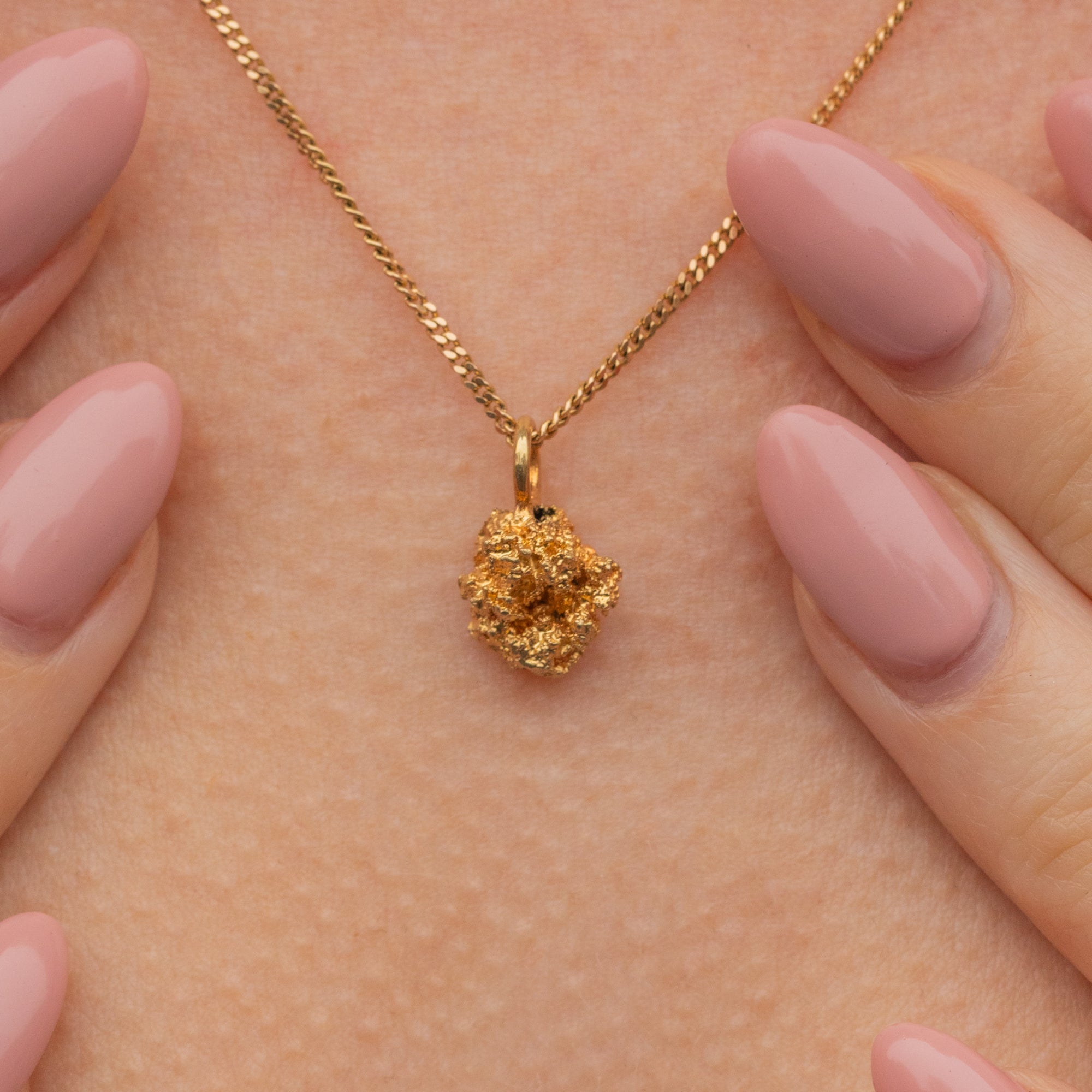Add some organic form to your neck stack with this 22ct Gold nugget charm! Symbolic of the Californian Gold rush from 1848 to 1855, the Gold nugget is a reminder of the craze caused by the discovery of Gold by James W. Marshall.