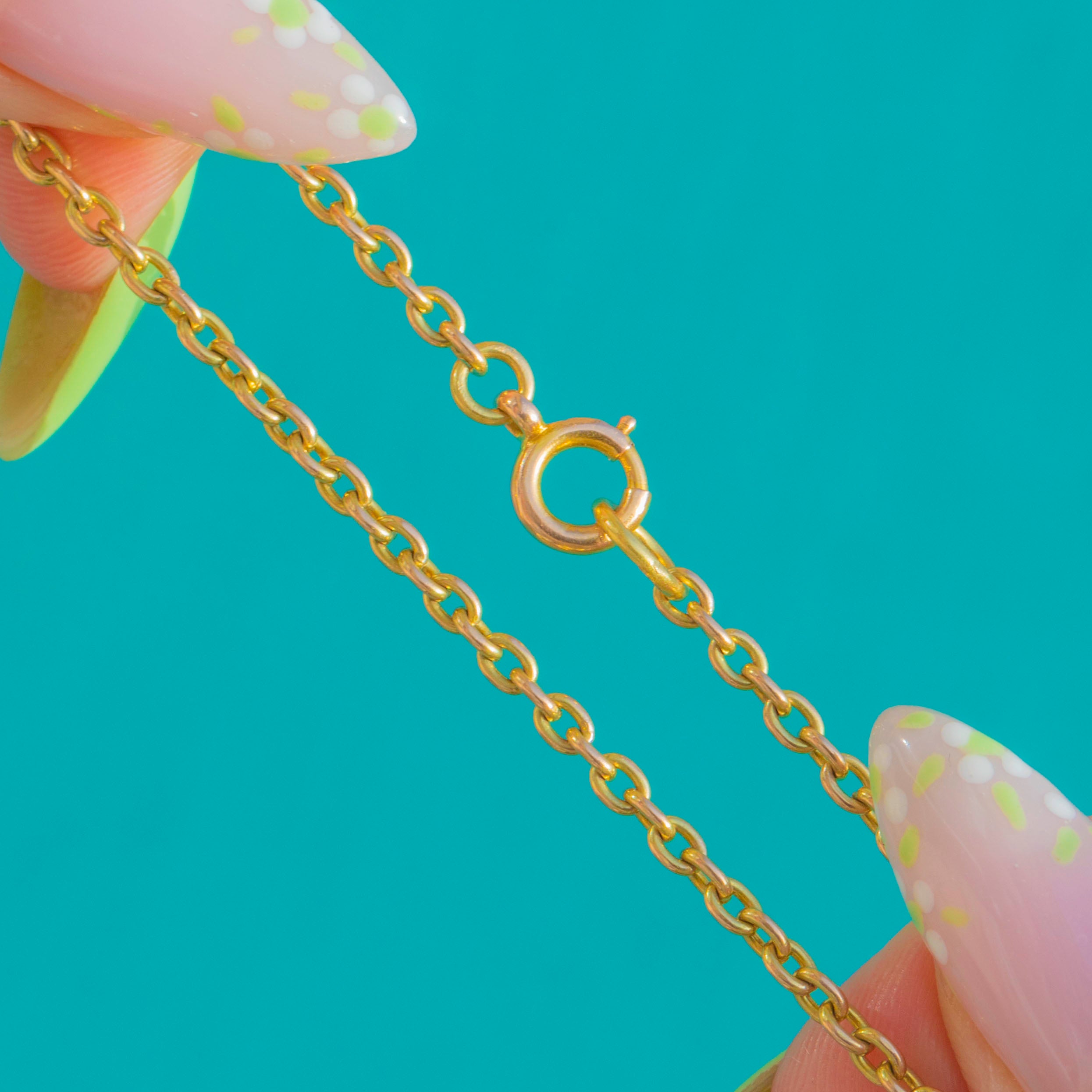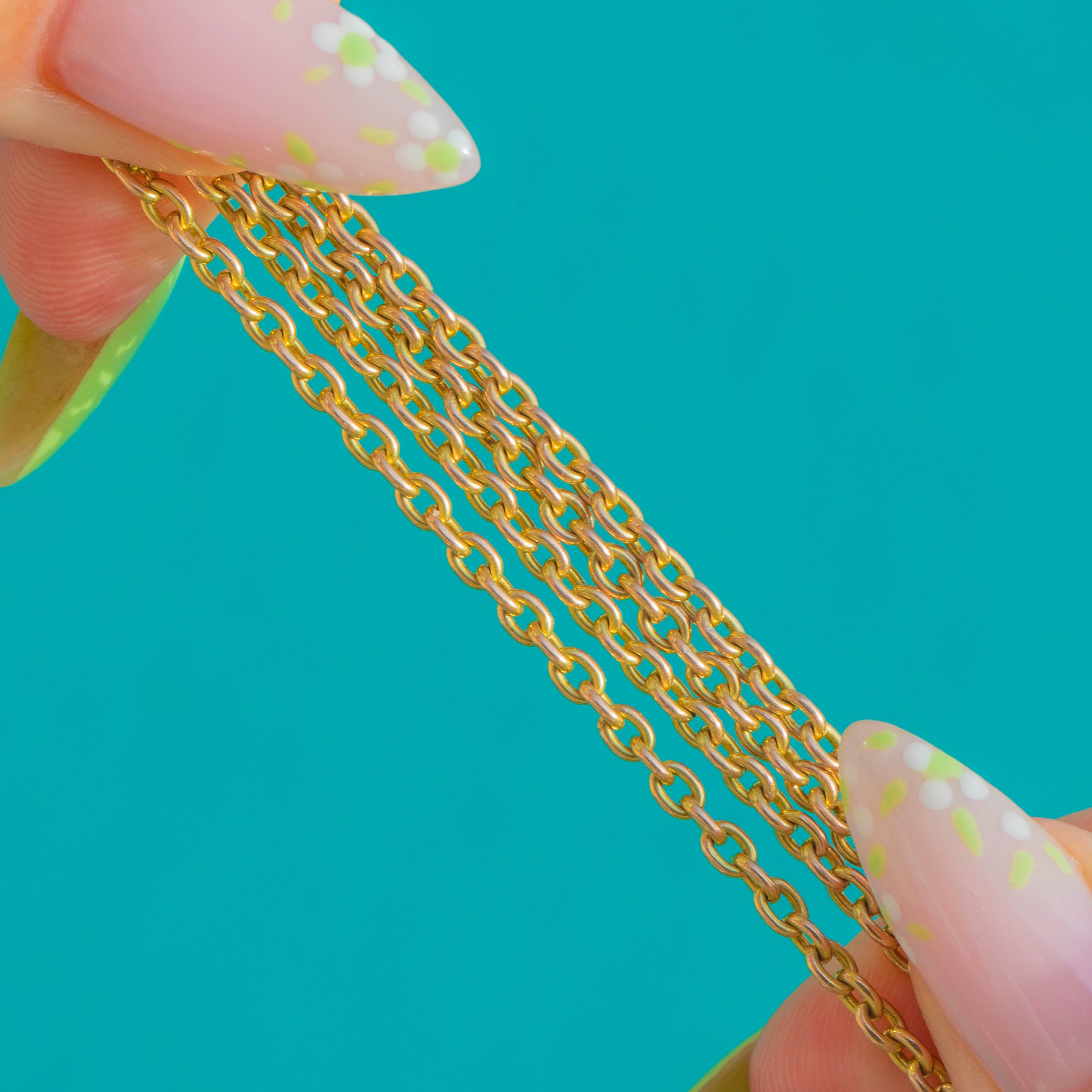 Understated yet effortlessly elegant, this classic Deco sautoir-style chain is a dream to wear alone or doubled for a layered look. Finished with its original bolt-ring clasp, it’s a versatile treasure that marries refined craftsmanship with timeless allure.