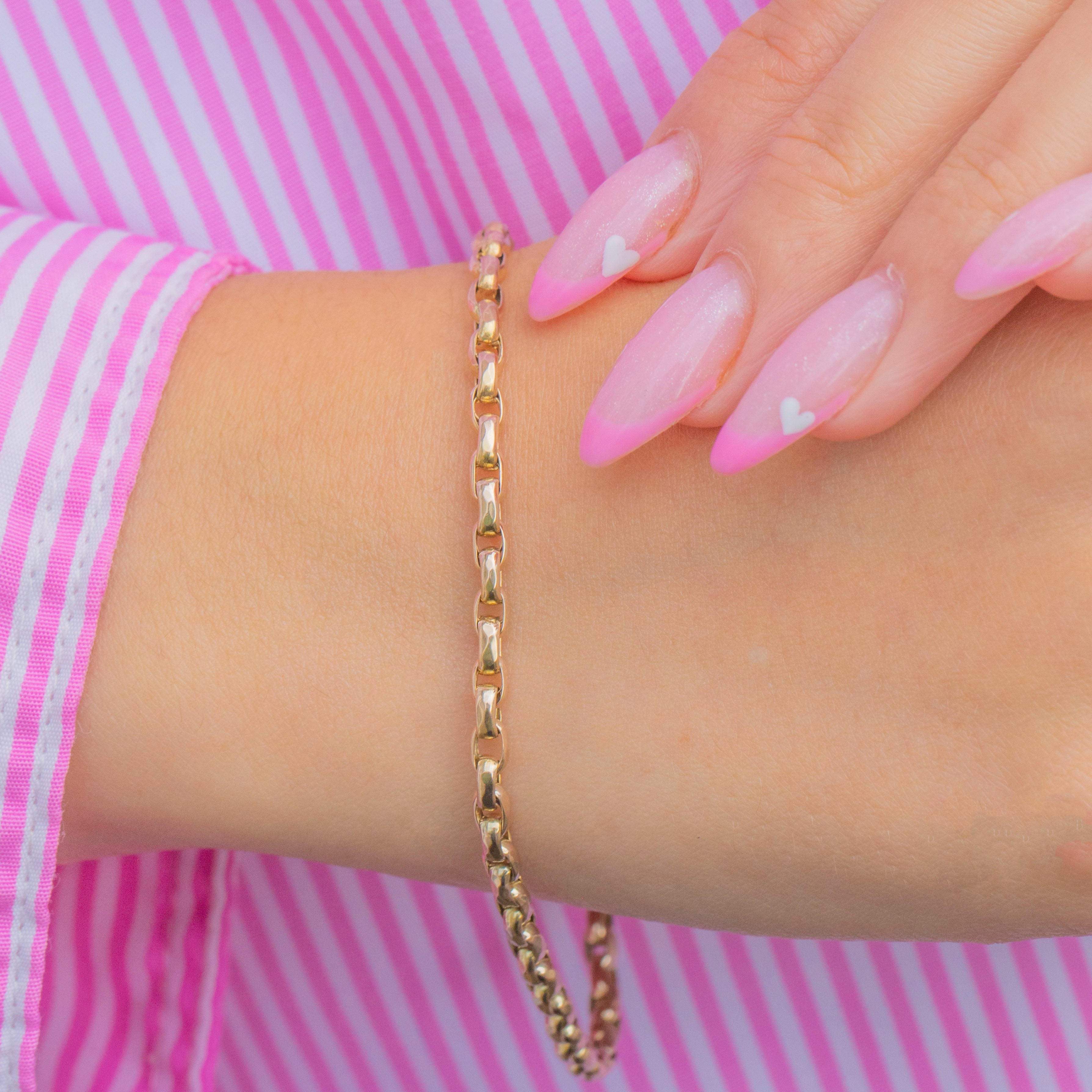 A classic Victorian belcher bracelet with softly rounded links and a traditional bolt-ring clasp. The timeless design and warm antique glow make it perfect for everyday wear or for layering with other antique chains and bracelets.