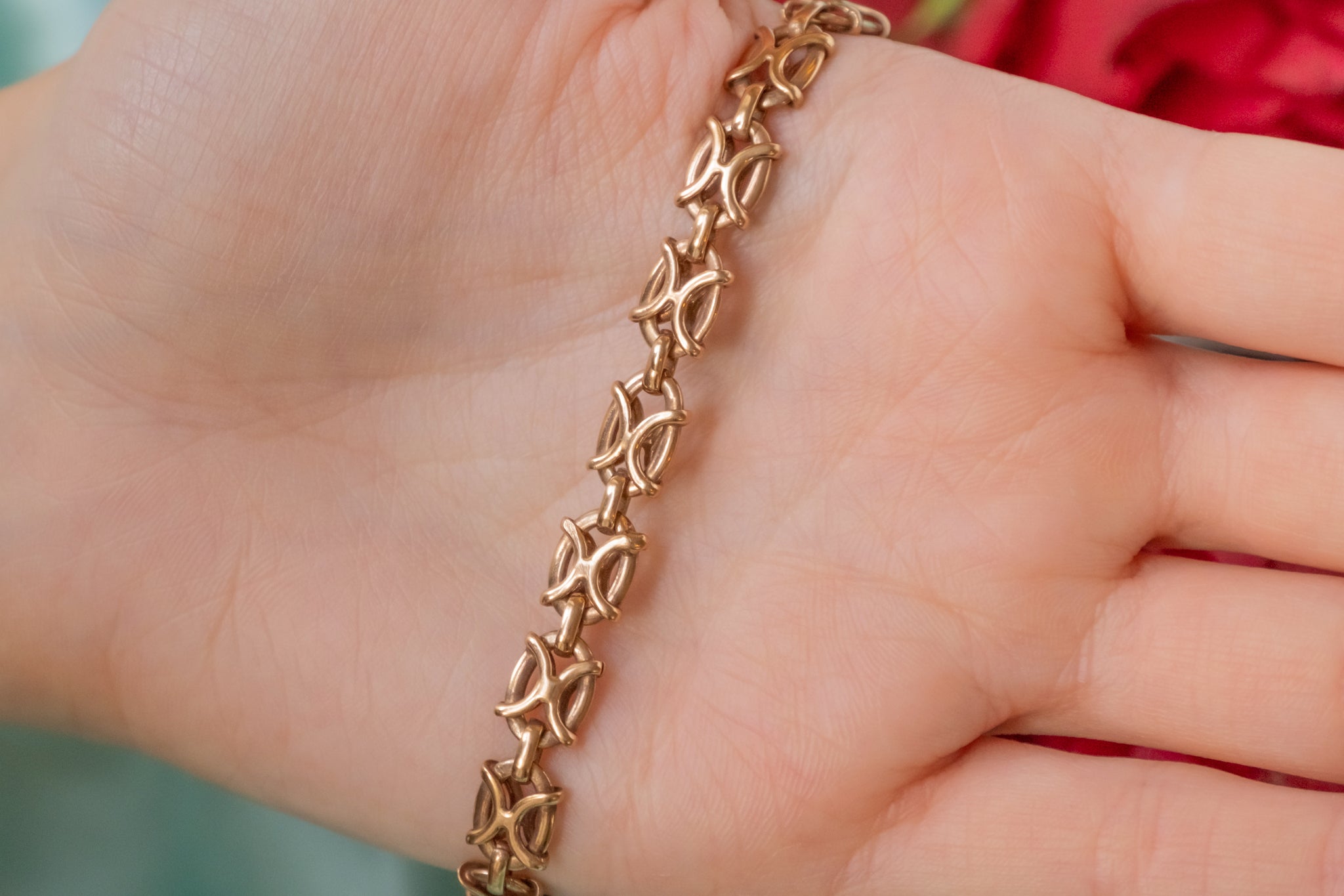 EXCELLENT. This is a gorgeous antique 9ct Gold gate bracelet offered in excellent condition. The bracelet carries a splendid Gold hue and wears securely with a heart padlock. There is very minimal wear to the bracelet overall, and it has a safety chain for that extra sense of security. This is a gorgeous piece of Victorian jewellery ready to be adored for many more years to come!