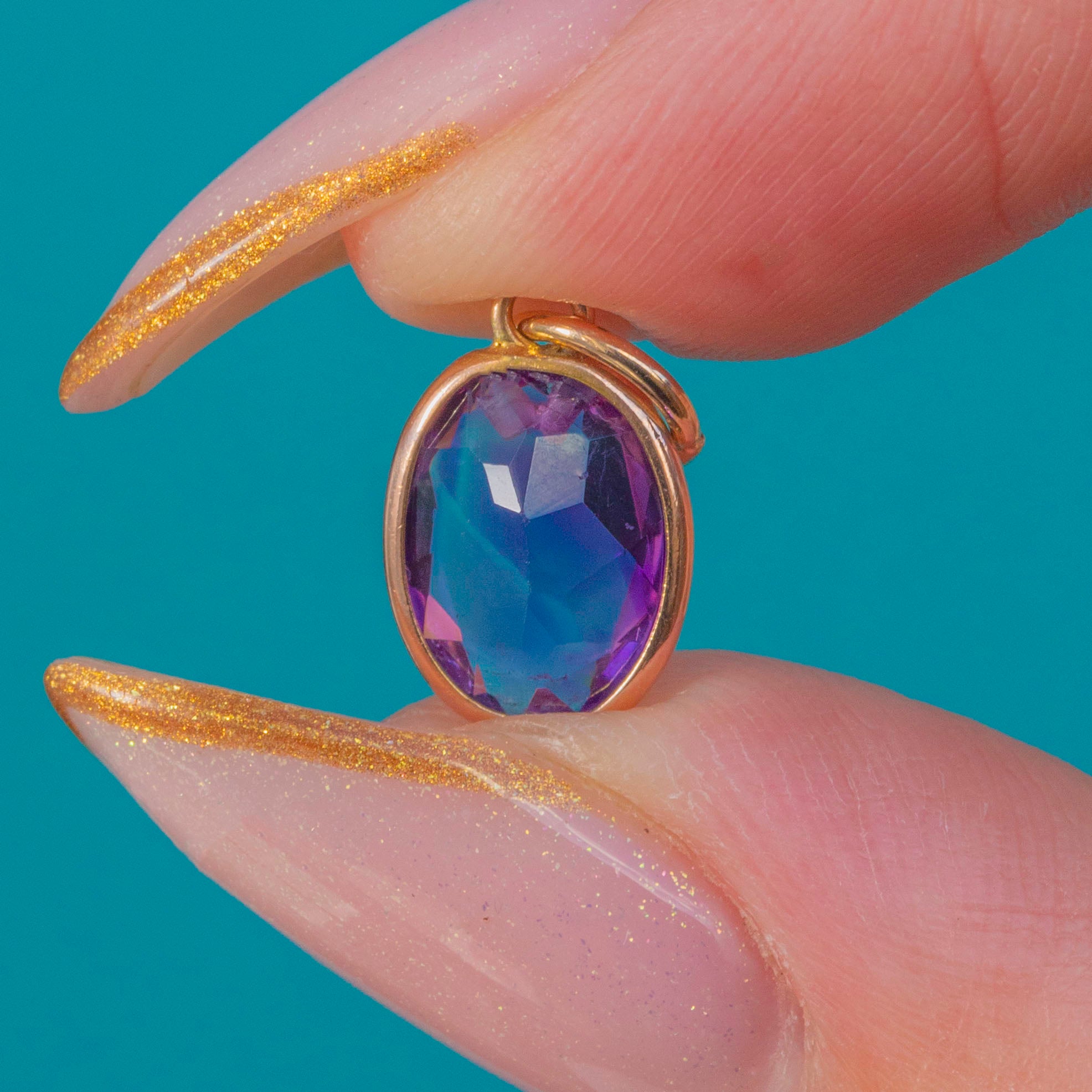 VERY GOOD: The Amethyst is in very good condition with a smooth polish and only minor surface wear under magnification. Note these have been intentionally shaped to fit onto antique necklace wire fittings in the past, and then re-purposed by adding the Gold bezels at a later date. The 9ct Gold bezel and jump ring are secure with a clean, well-preserved finish, making the charm fully wearable and ready to enjoy.