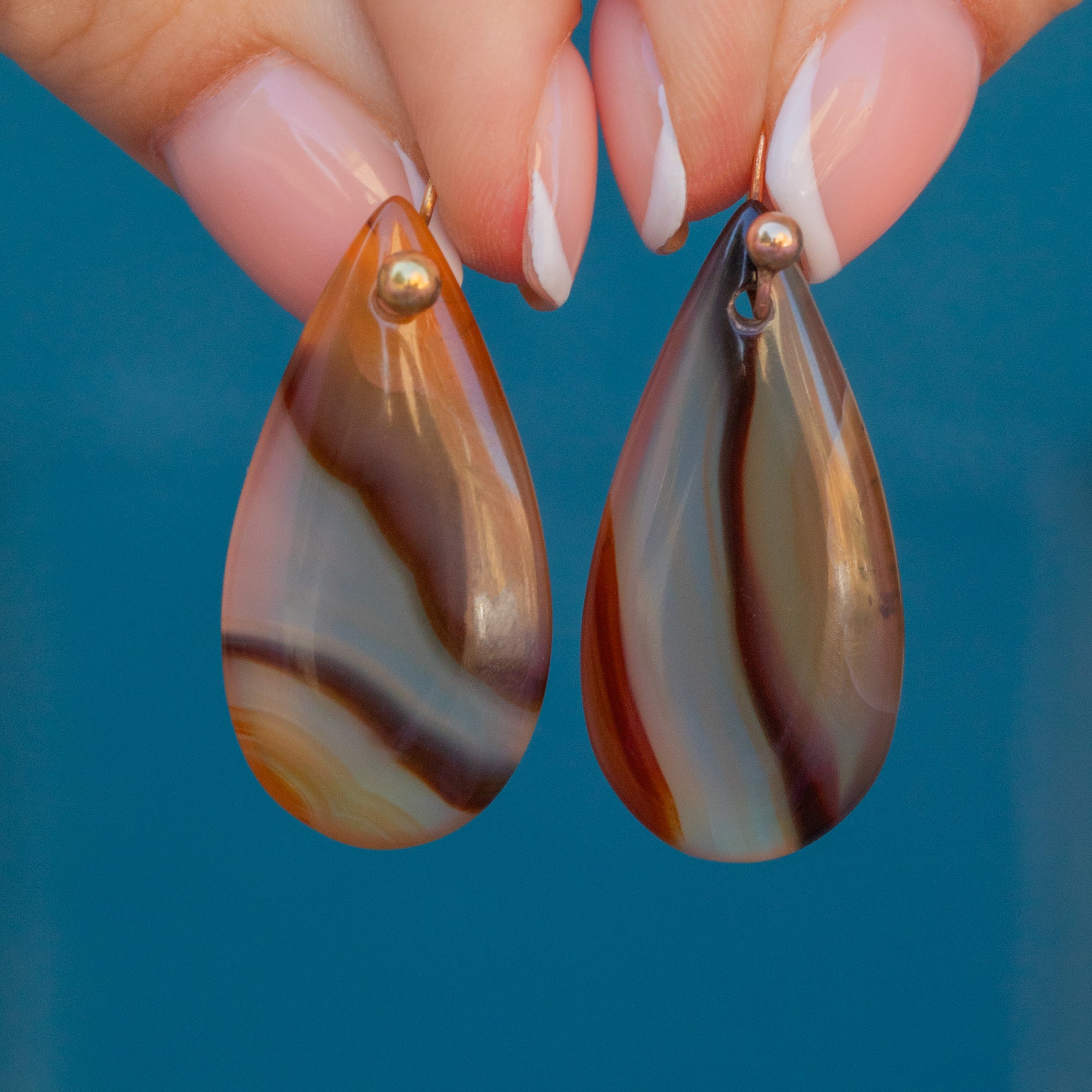 EXCELLENT. These 9ct Gold antique Agate pear drop earrings are in excellent condition. The Agate drops are gorgeous and are securely affixed to the 9ct Gold. They will make a wonderful addition to your antique jewellery collection!