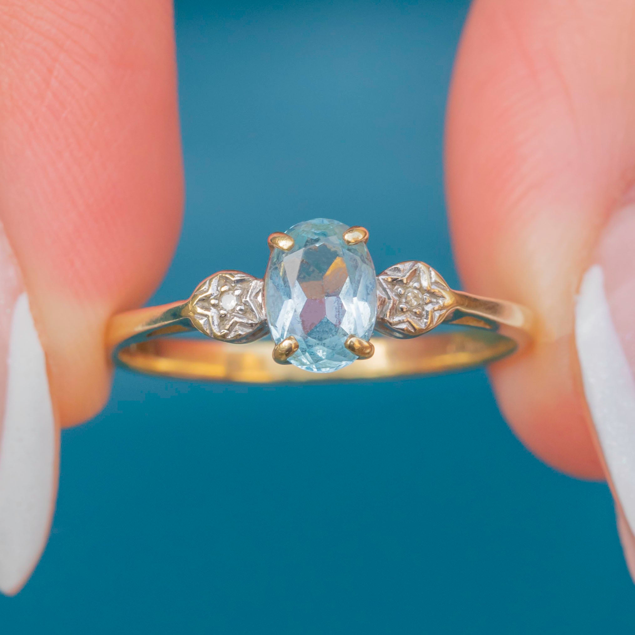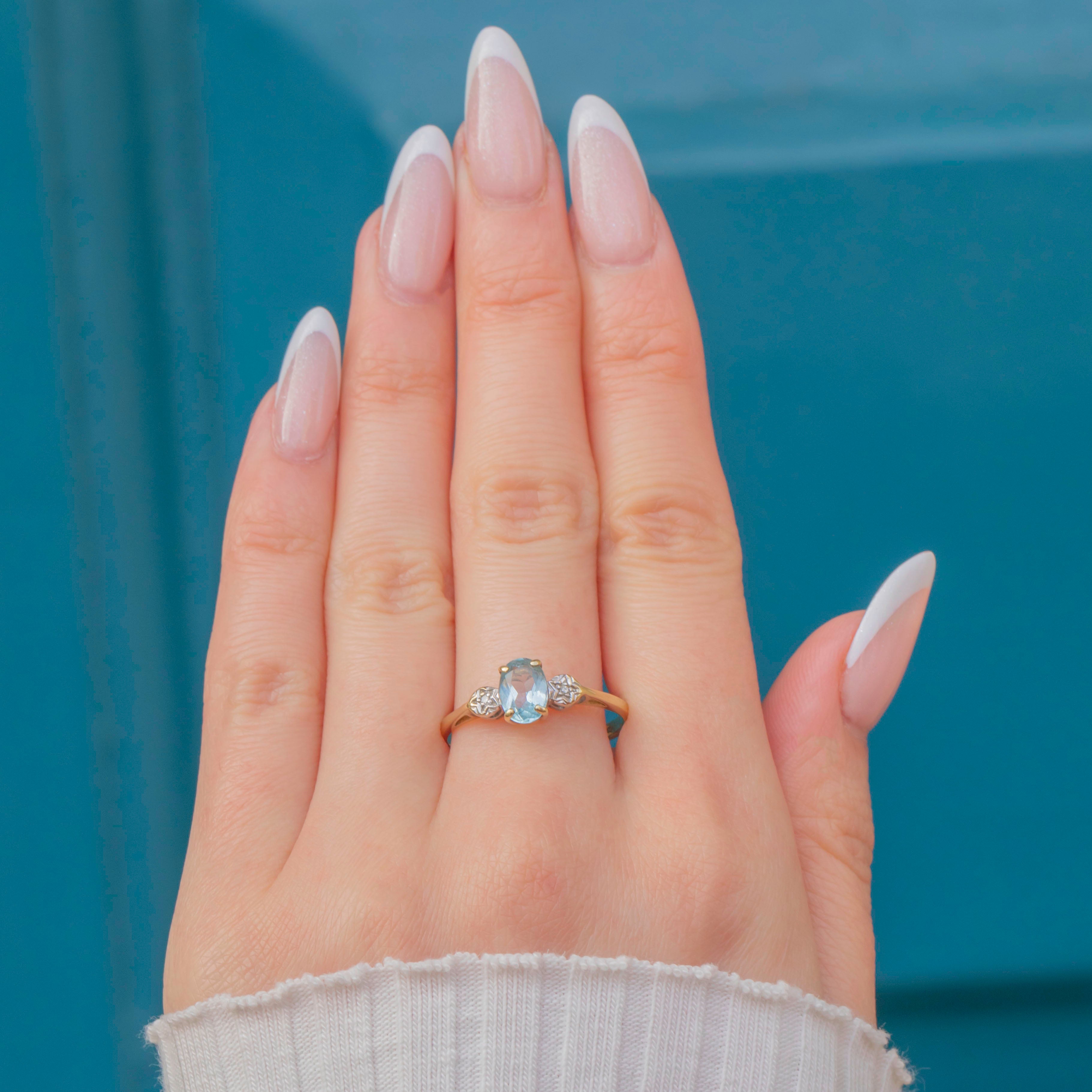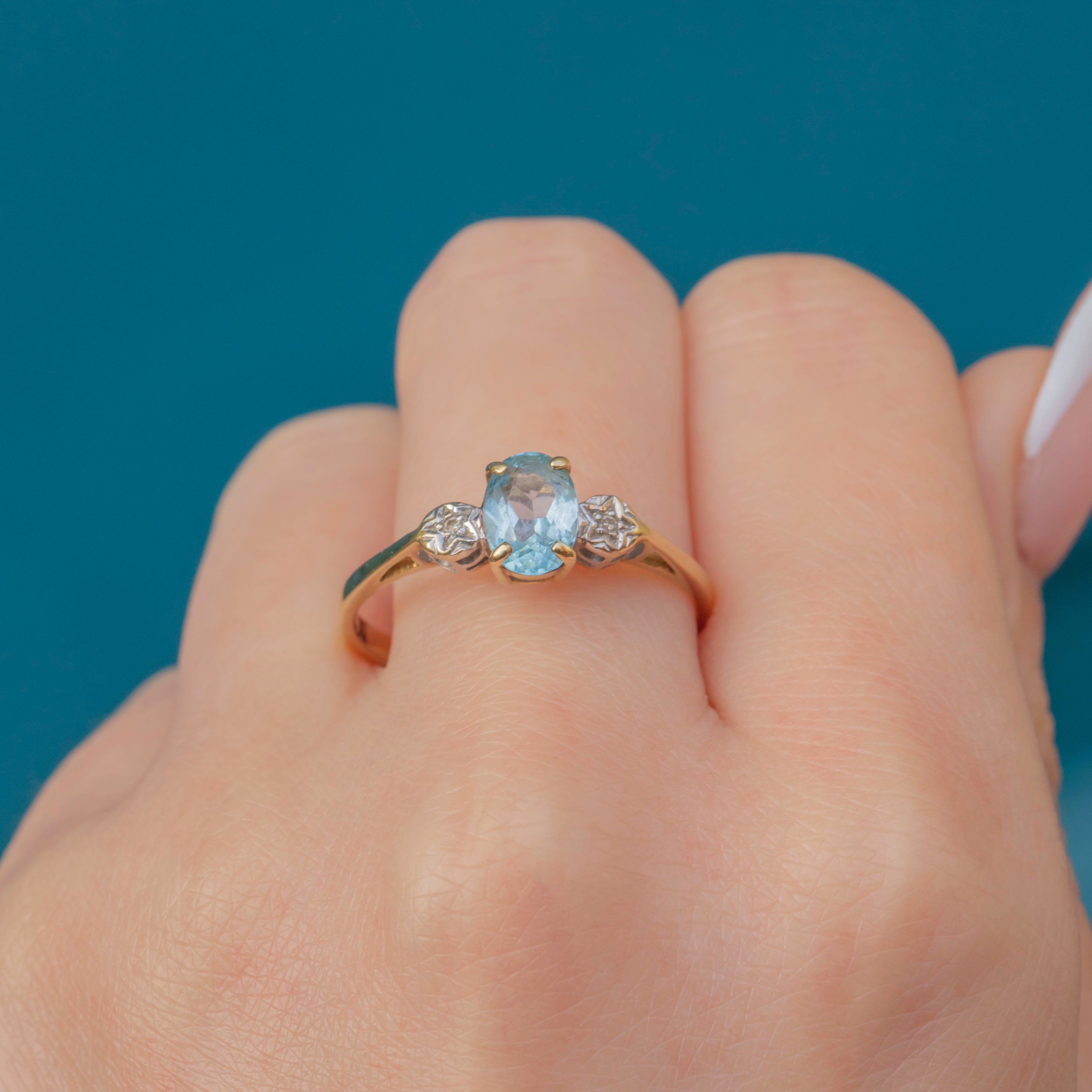 9ct Gold Blue Topaz Diamond Trilogy Ring