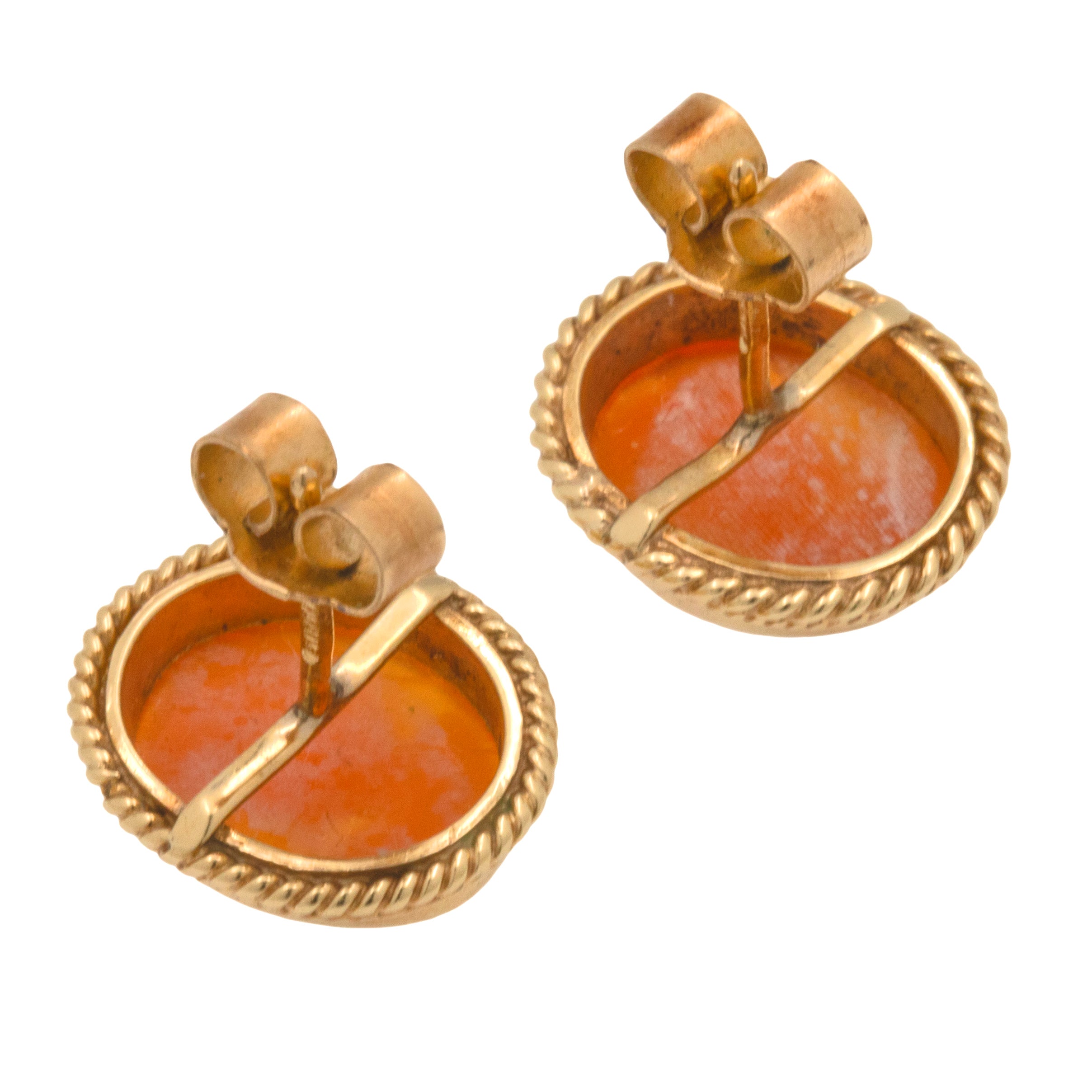 EXCELLENT. These 9ct Gold Cameo stud earrings are in excellent condition! The cameo portraits are crisp and have no damage to note. It is important to be aware that the cameo shell can be quite fragile, but with the right care these earrings will serve you well. This pair slides into your ears a dream and the butterfly backs firmly slip on allowing you to wear them with confidence!