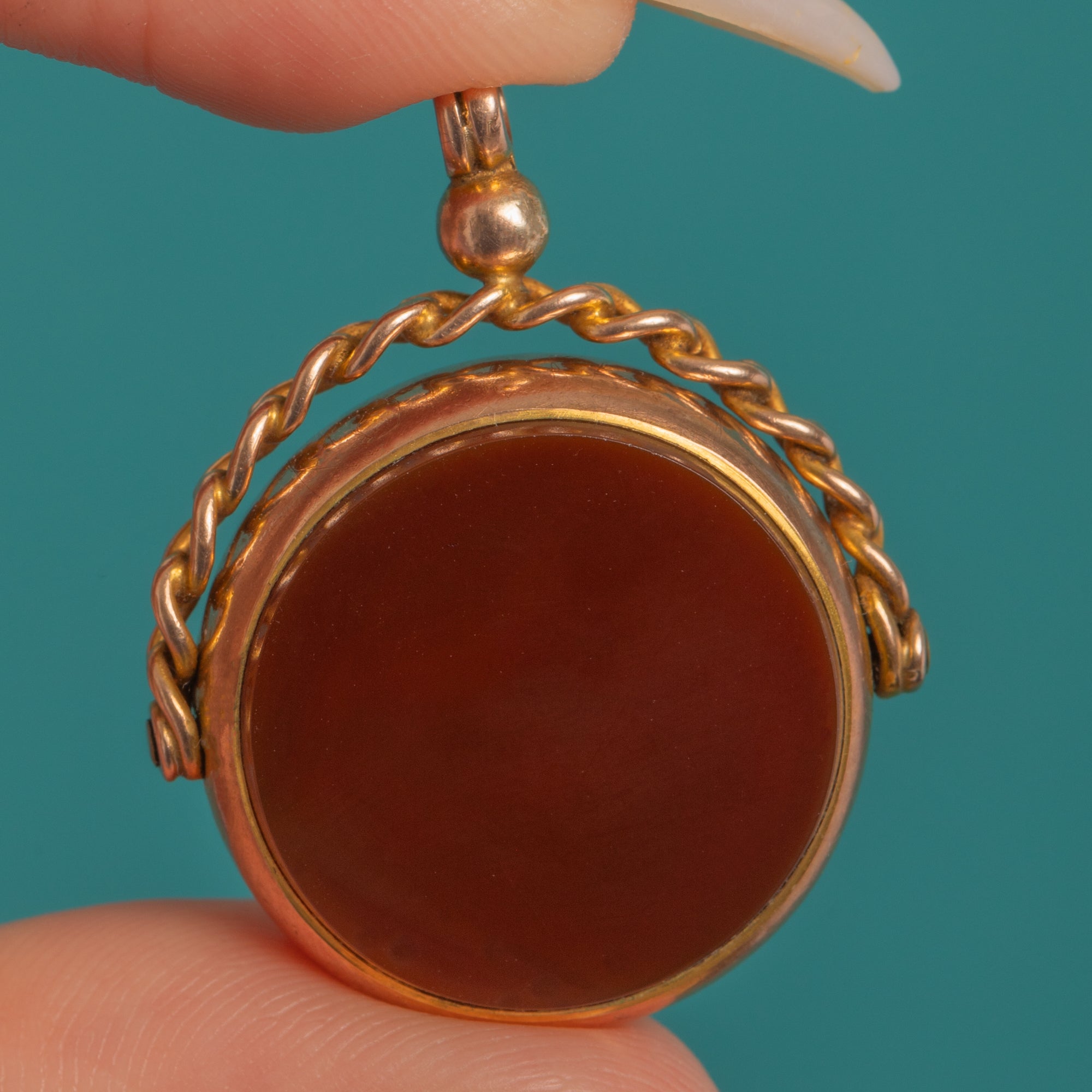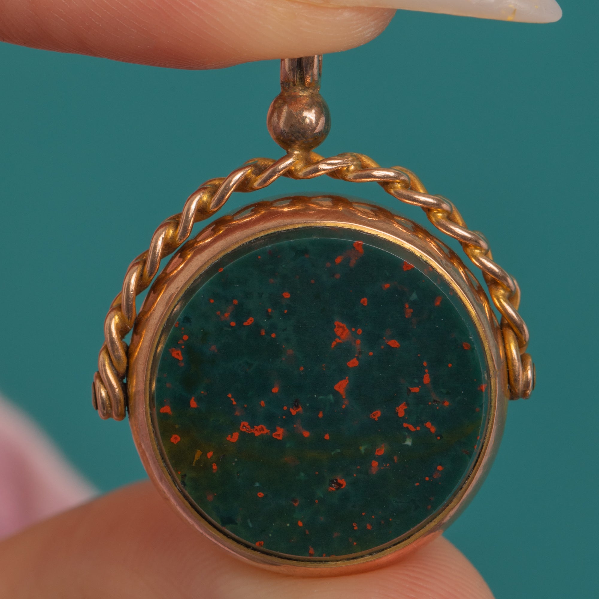 9ct Gold Carnelian Bloodstone Spinner Fob Pendant c.1911