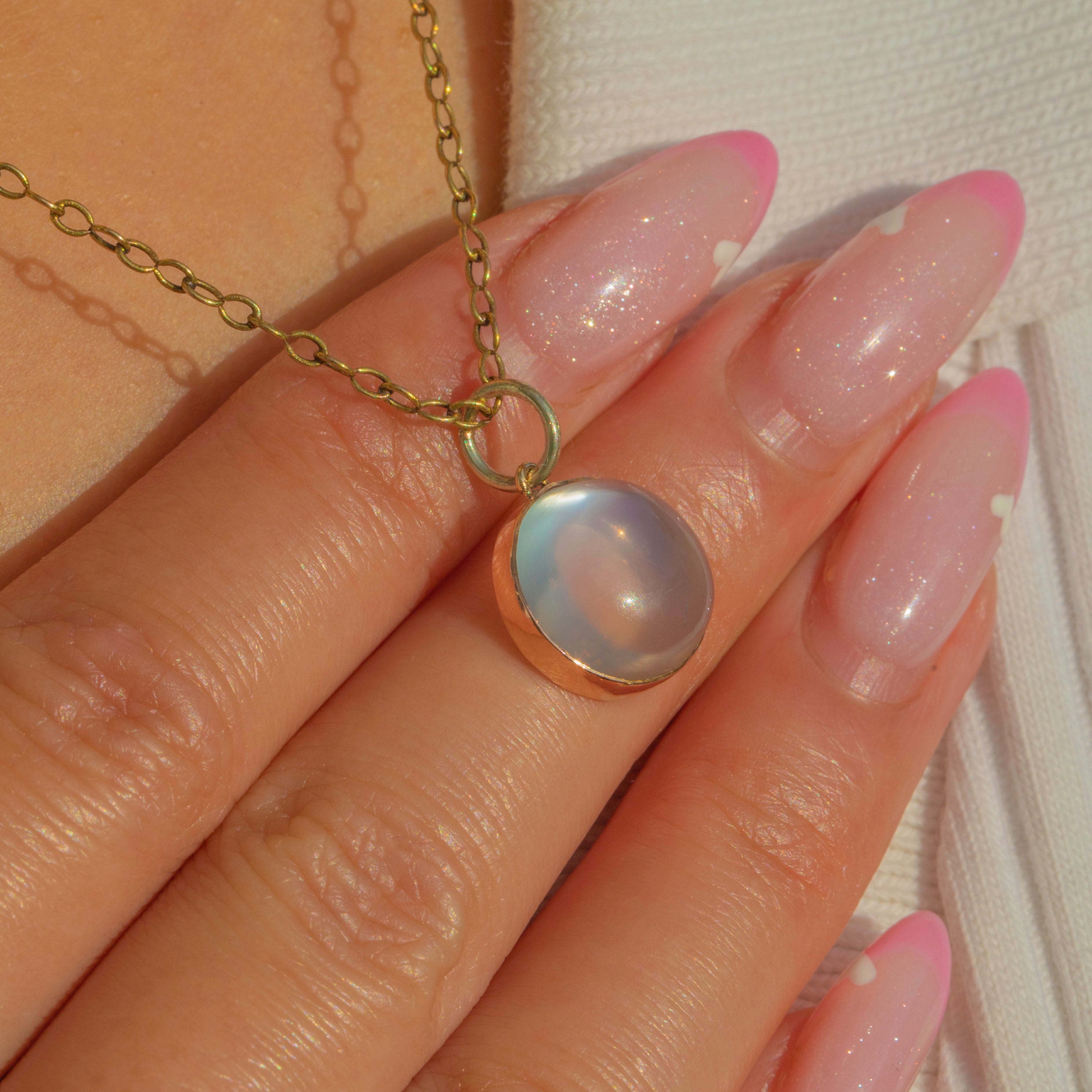 This enchanting Victorian Cat’s Eye Moonstone charm captures the magical play of light so loved in antique jewellery.