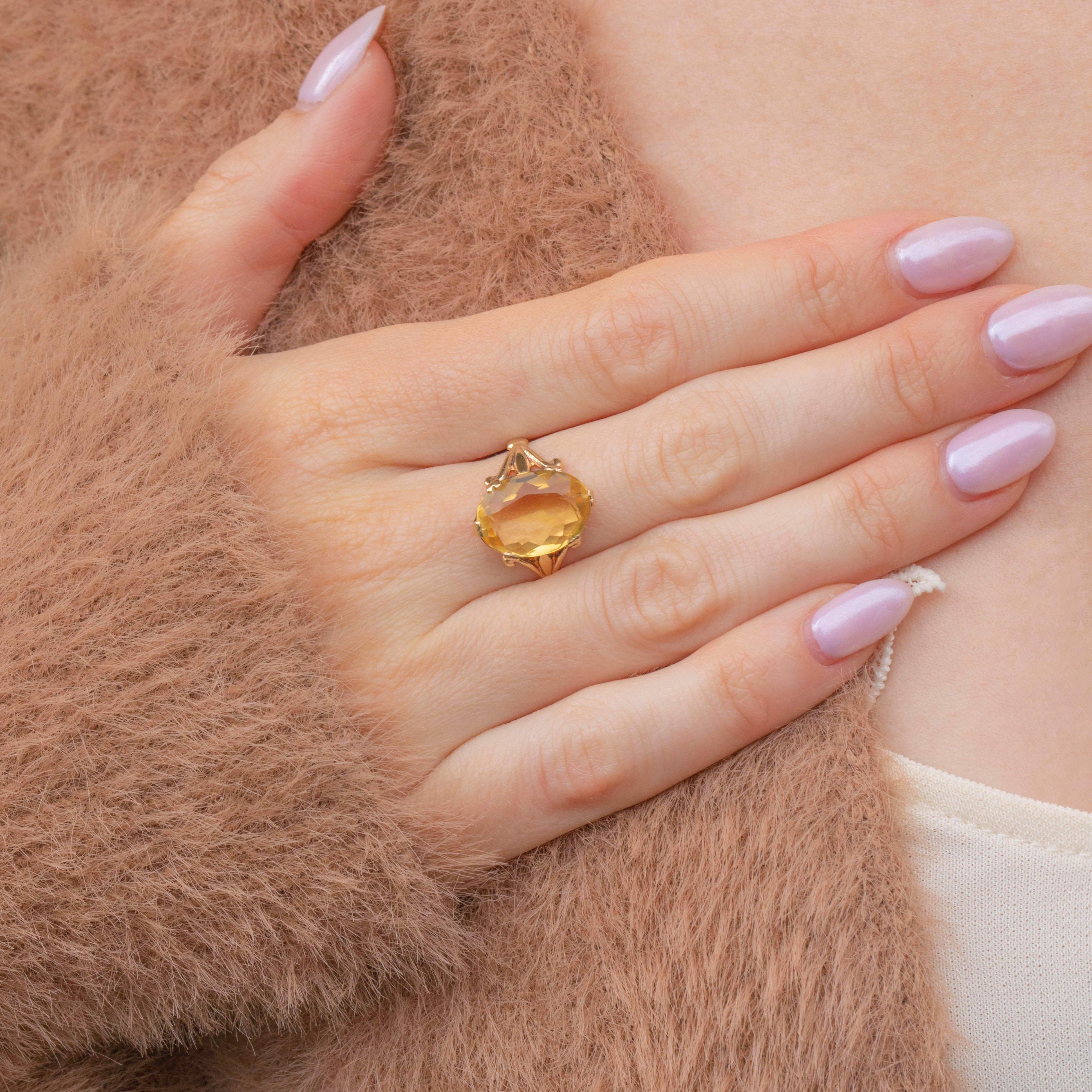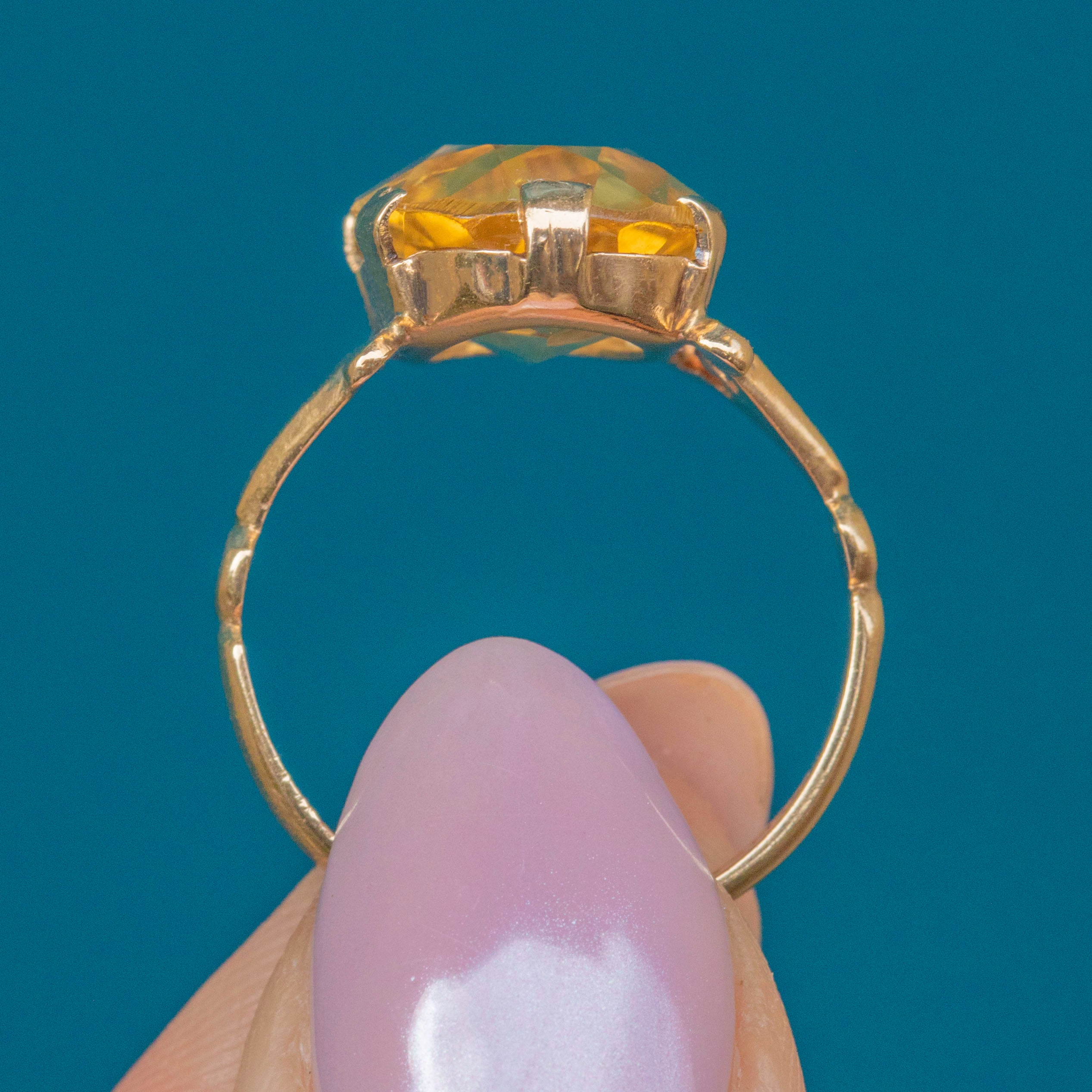 Providing exceptional finger coverage, this vintage Citrine ring will make a statement whenever you wear her. Citrine is a powerful healing stone that will work its magic when worn on your finger!