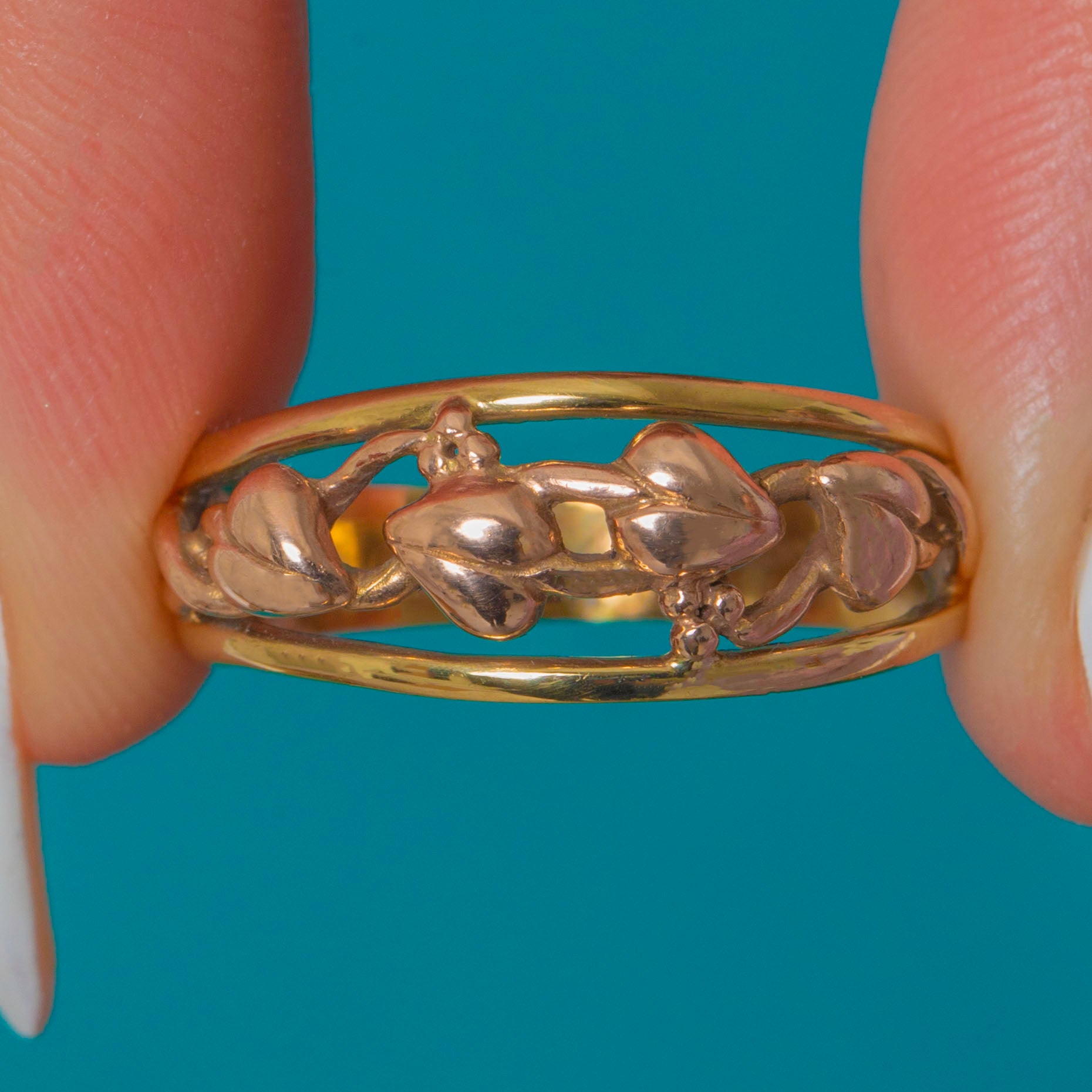 EXCELLENT: The Gold is bright and well preserved with minimal surface wear. The leaf detailing remains crisp and the openwork design shows no distortions. A beautifully cared-for Vintage Clogau ring.